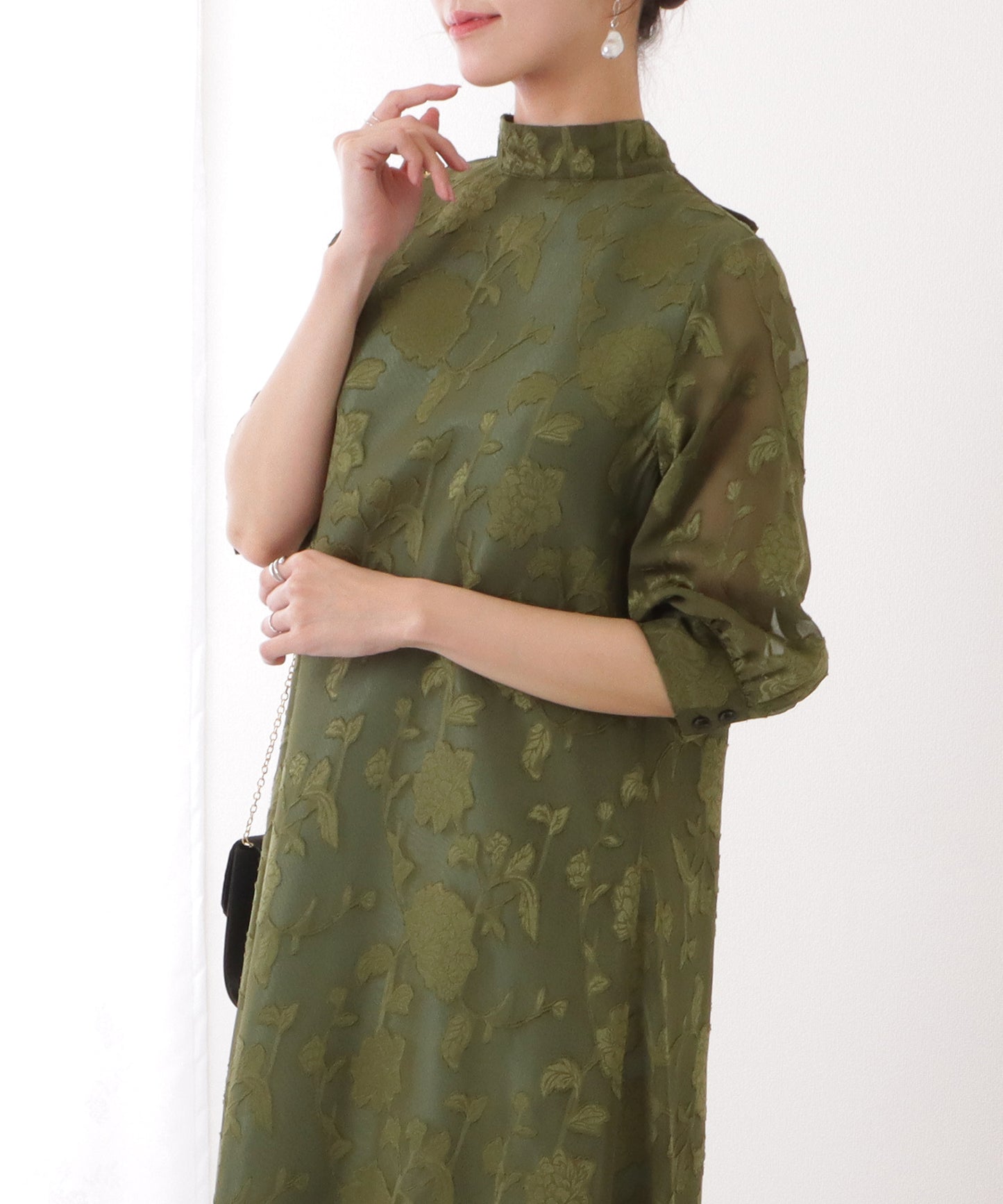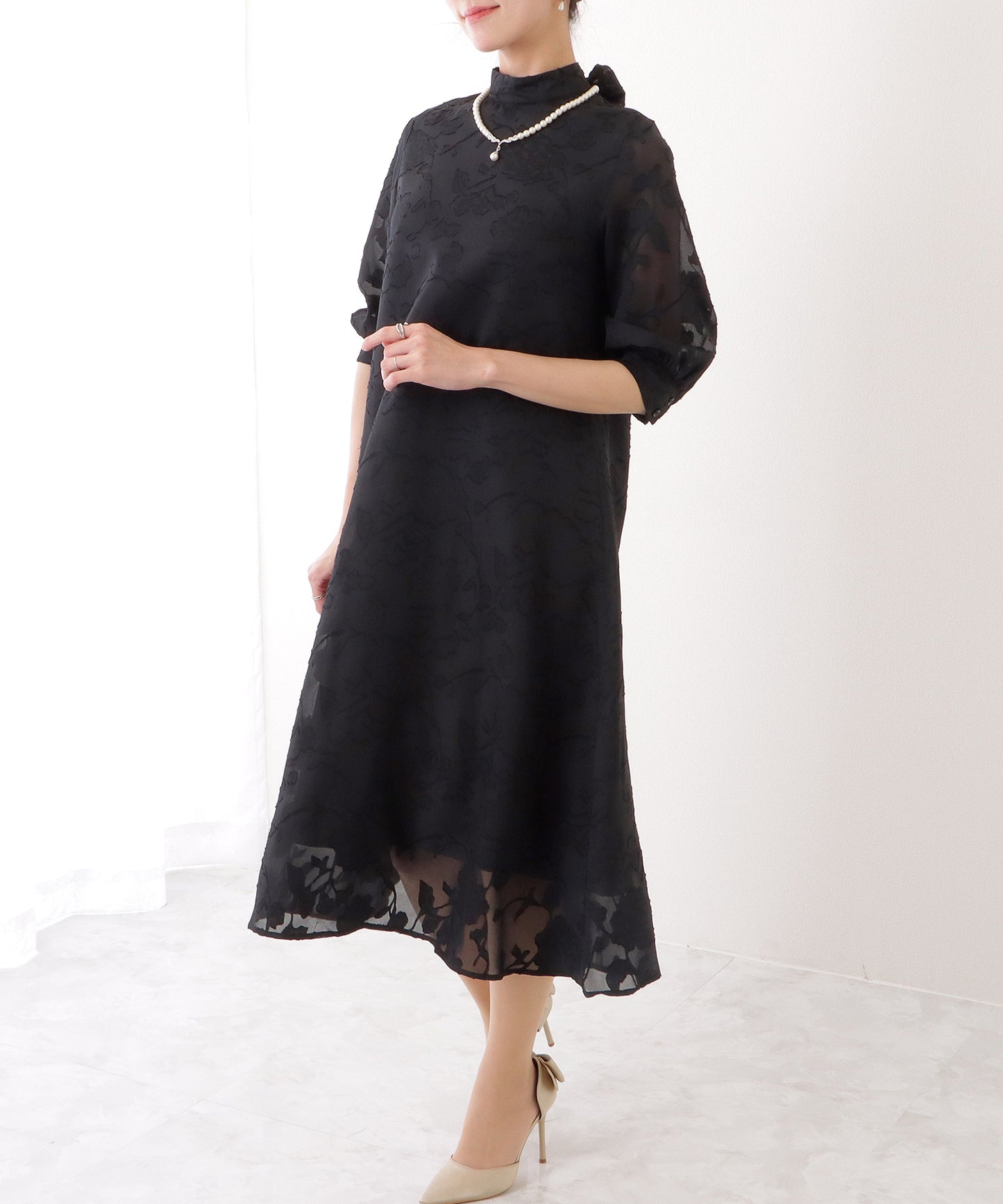 ベロア シアー フリルケープ付き ノースリーブ ドレス 3点セット