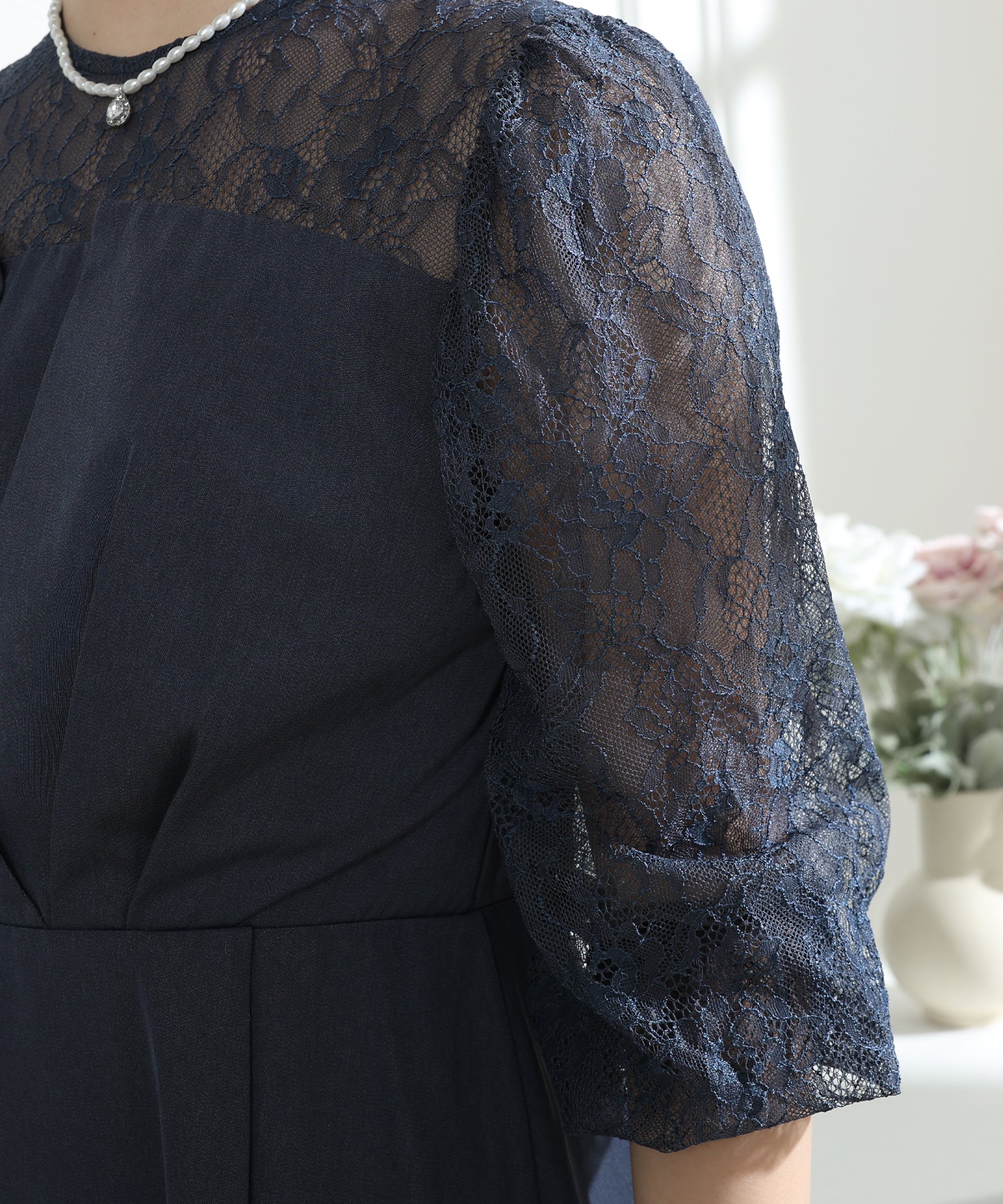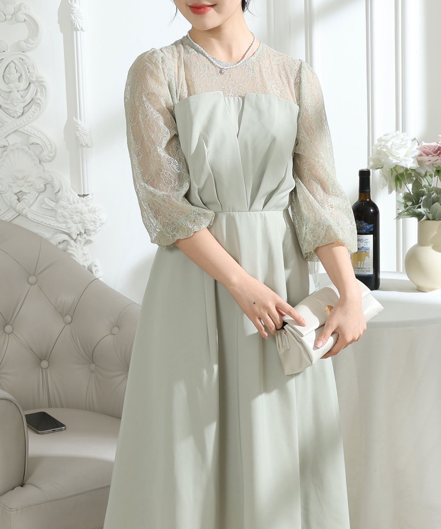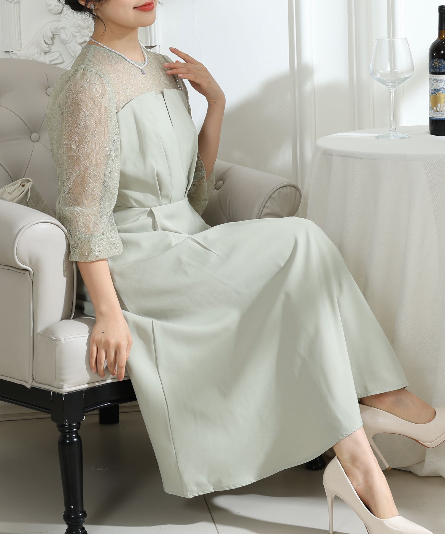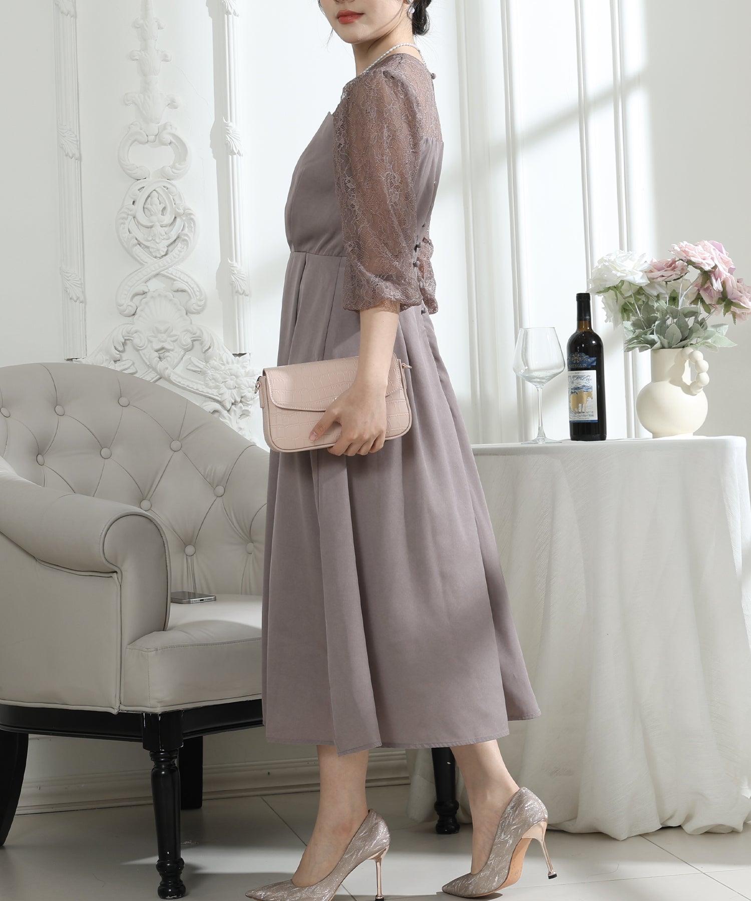 レースと掛け合わせてエレガントに仕上げたミモレ丈のワンピース。