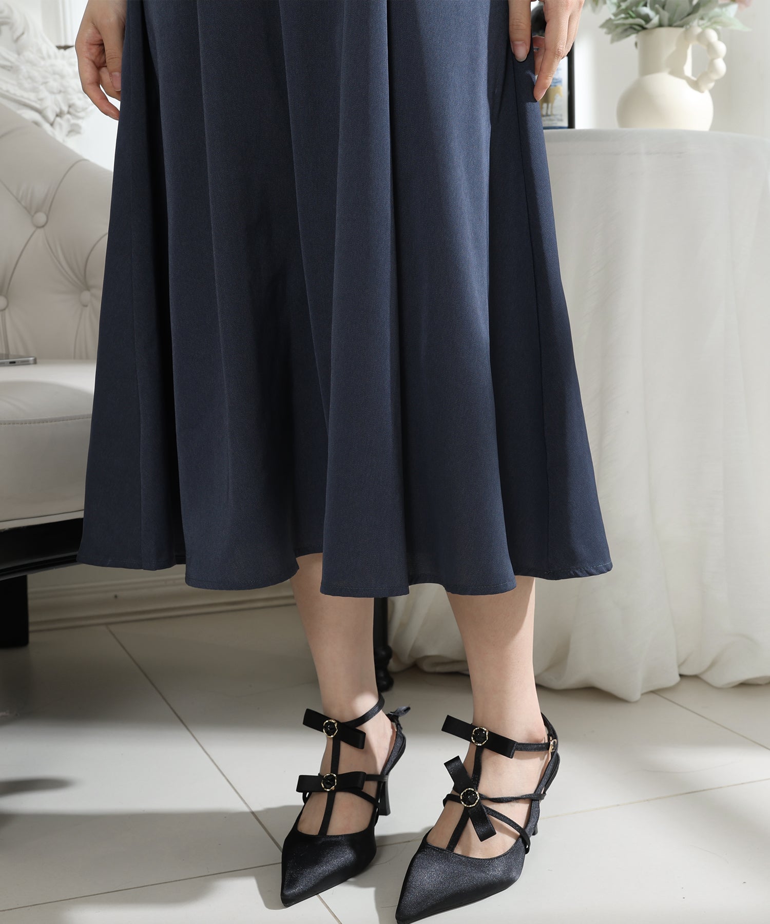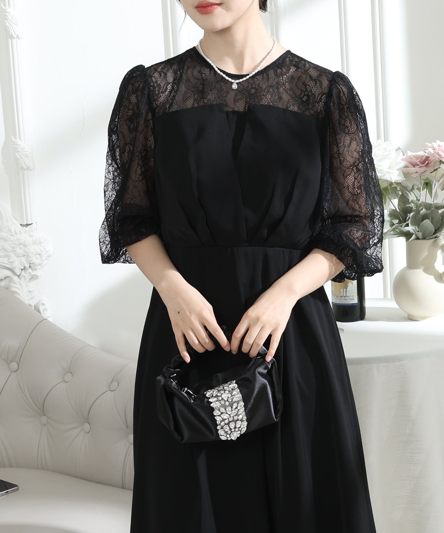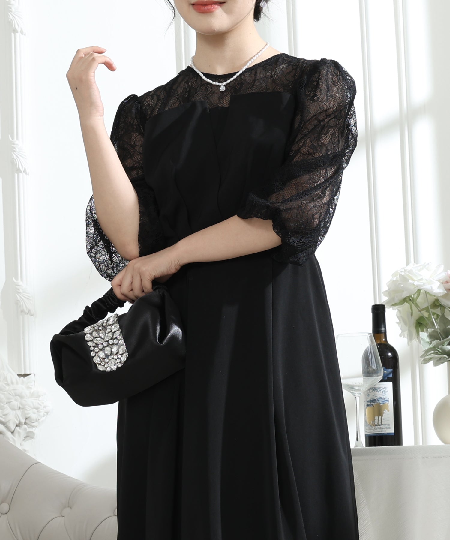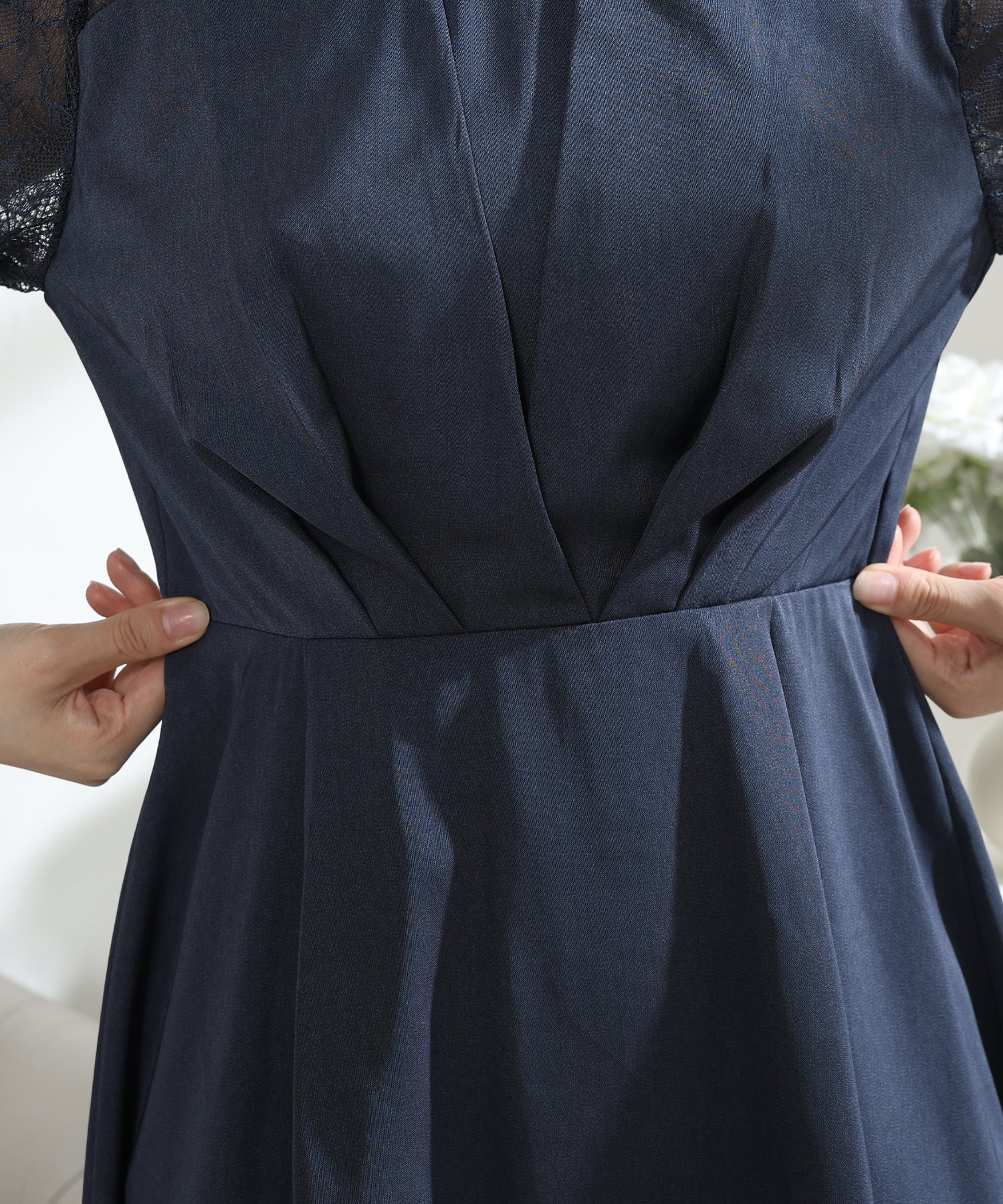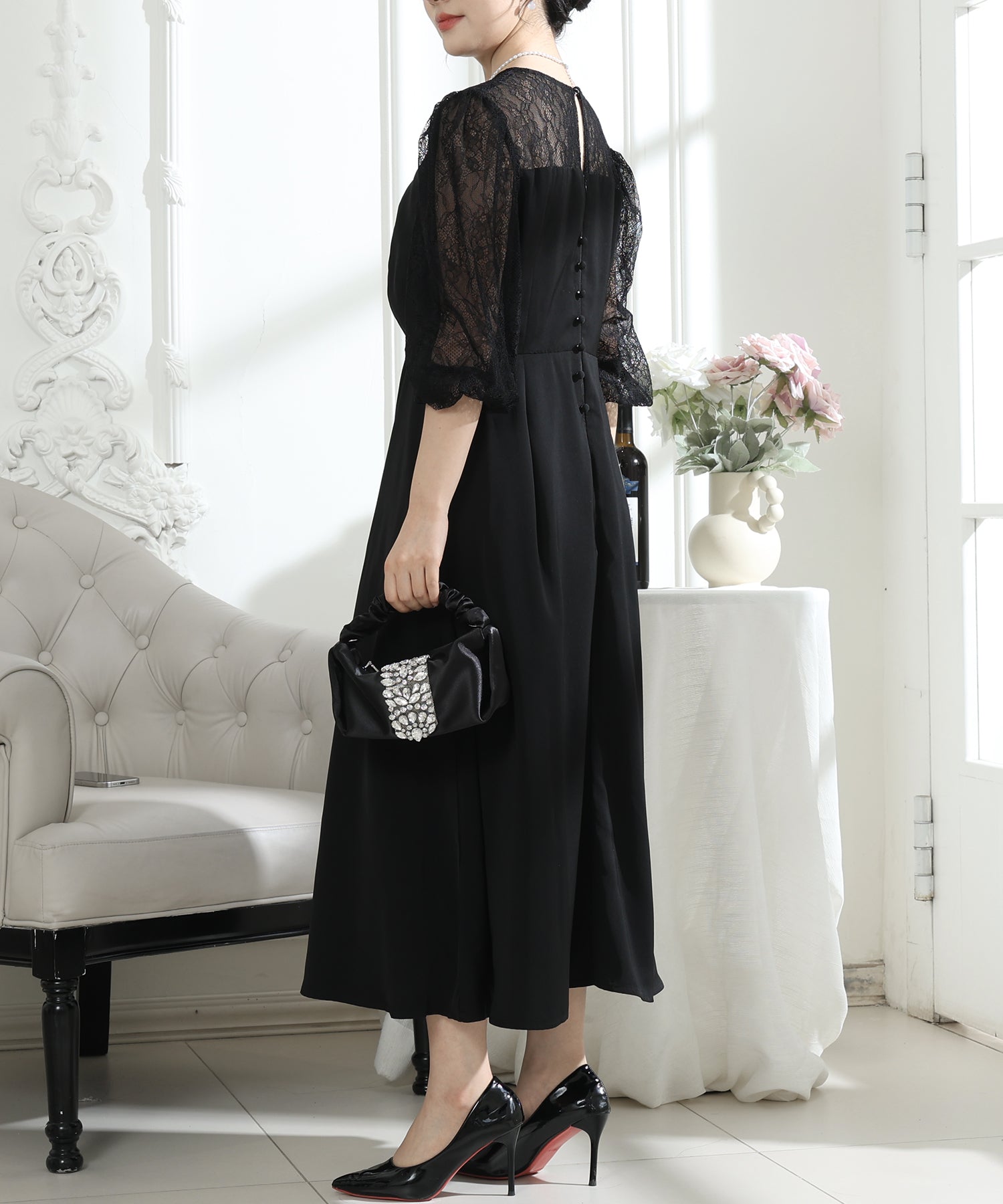 レースと掛け合わせてエレガントに仕上げたミモレ丈のワンピース。