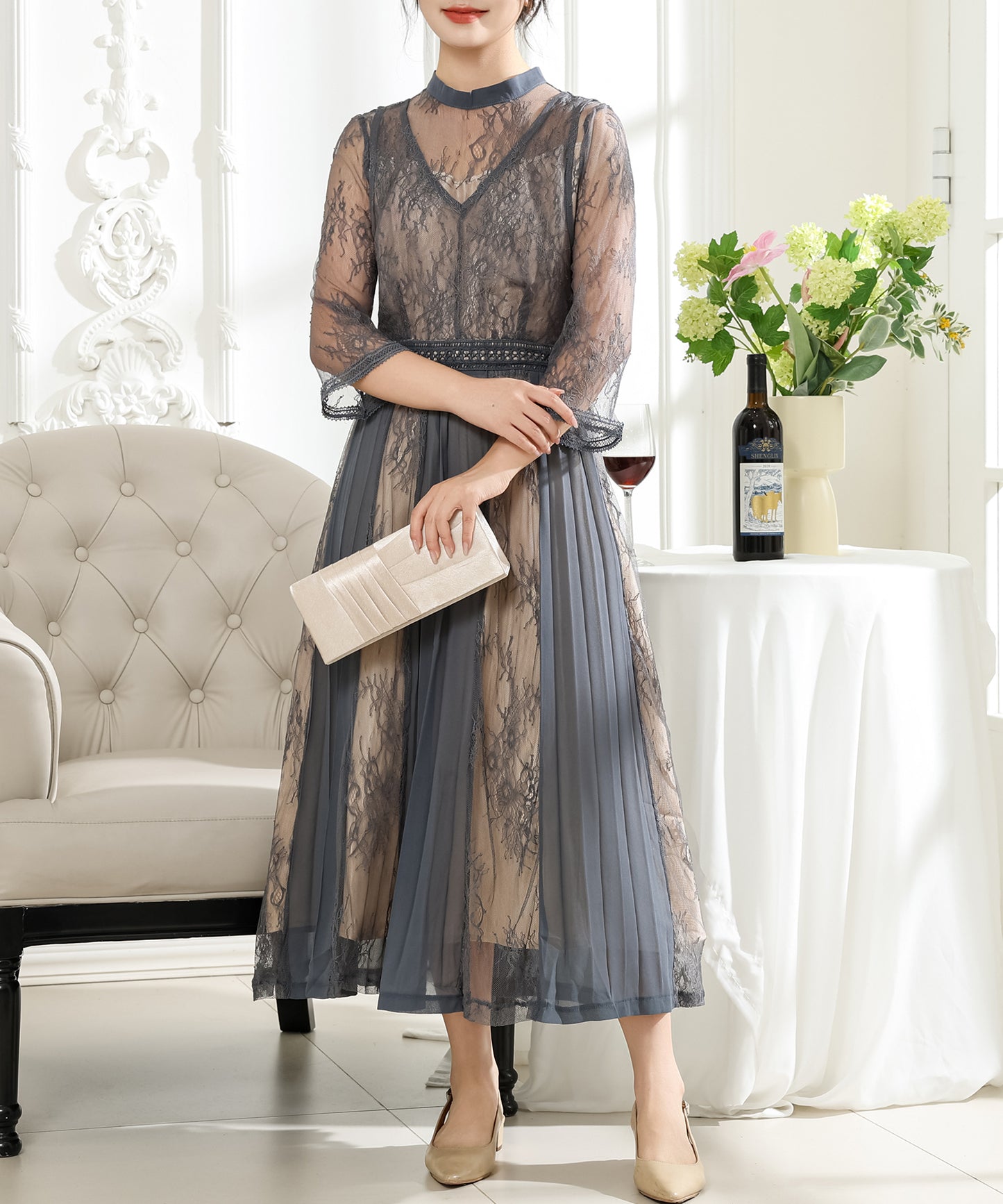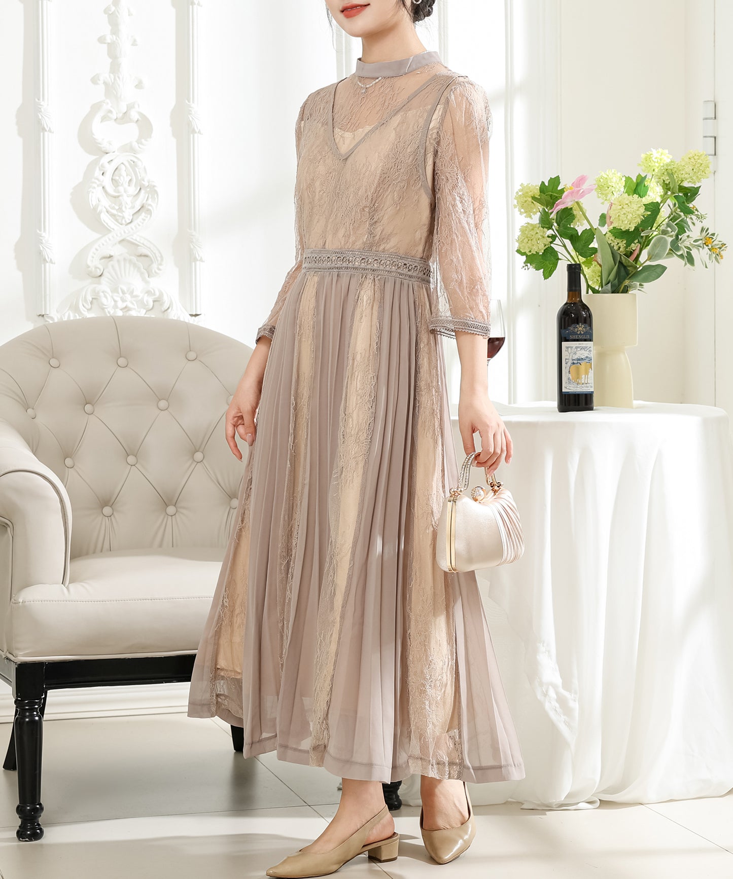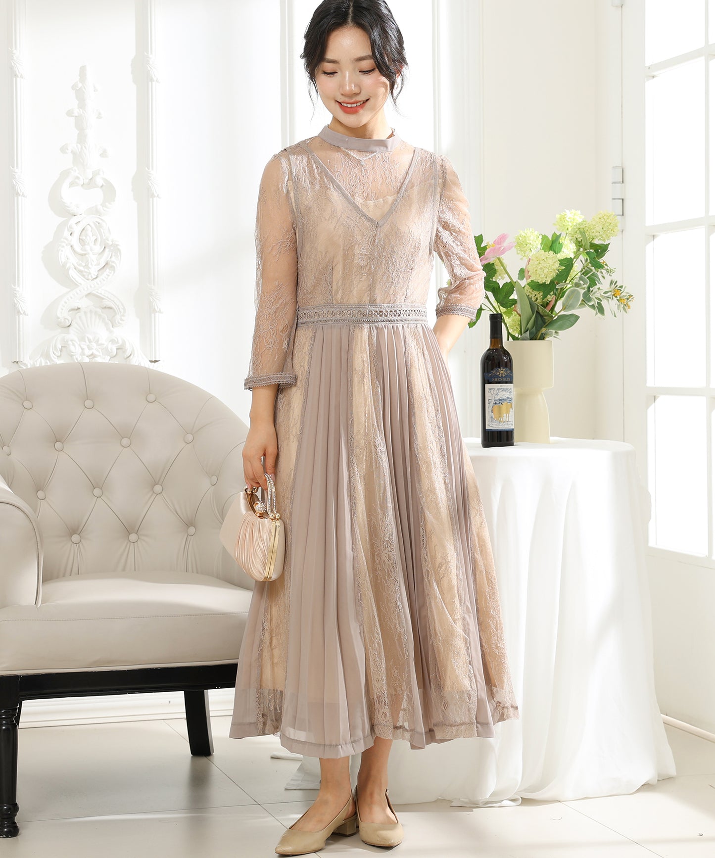 プリーツ ドッキング フェイクレイヤード シアー ワンピース