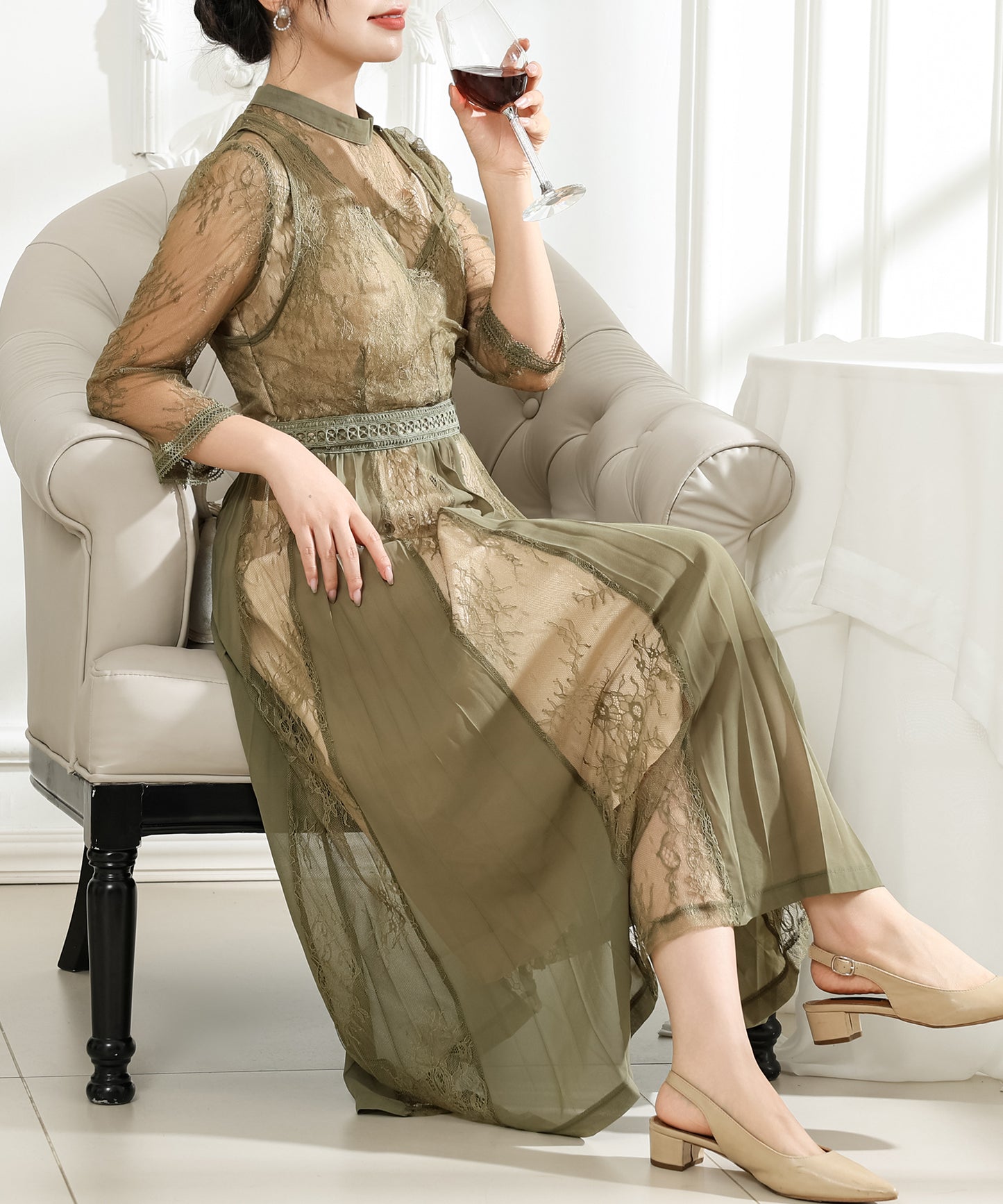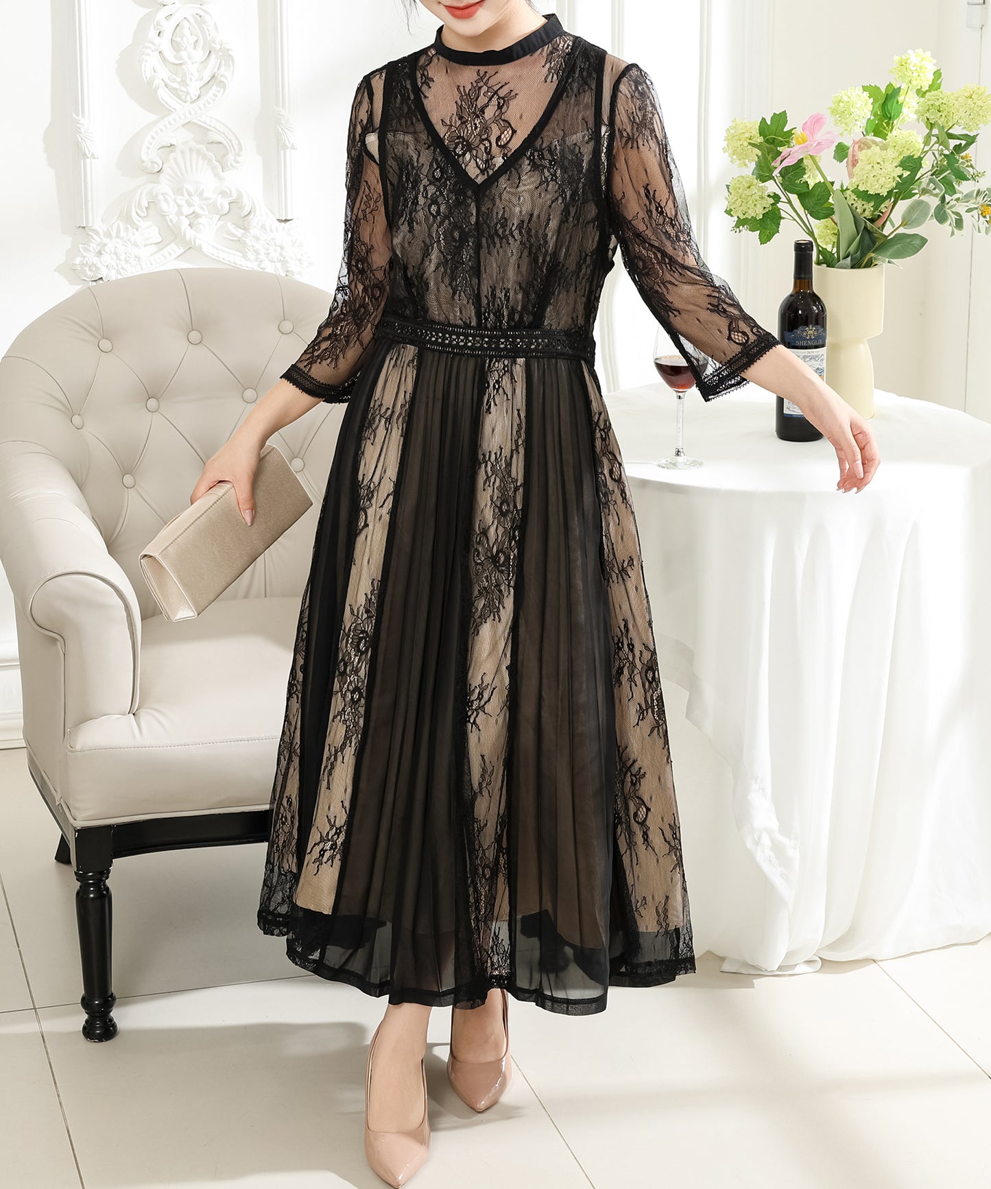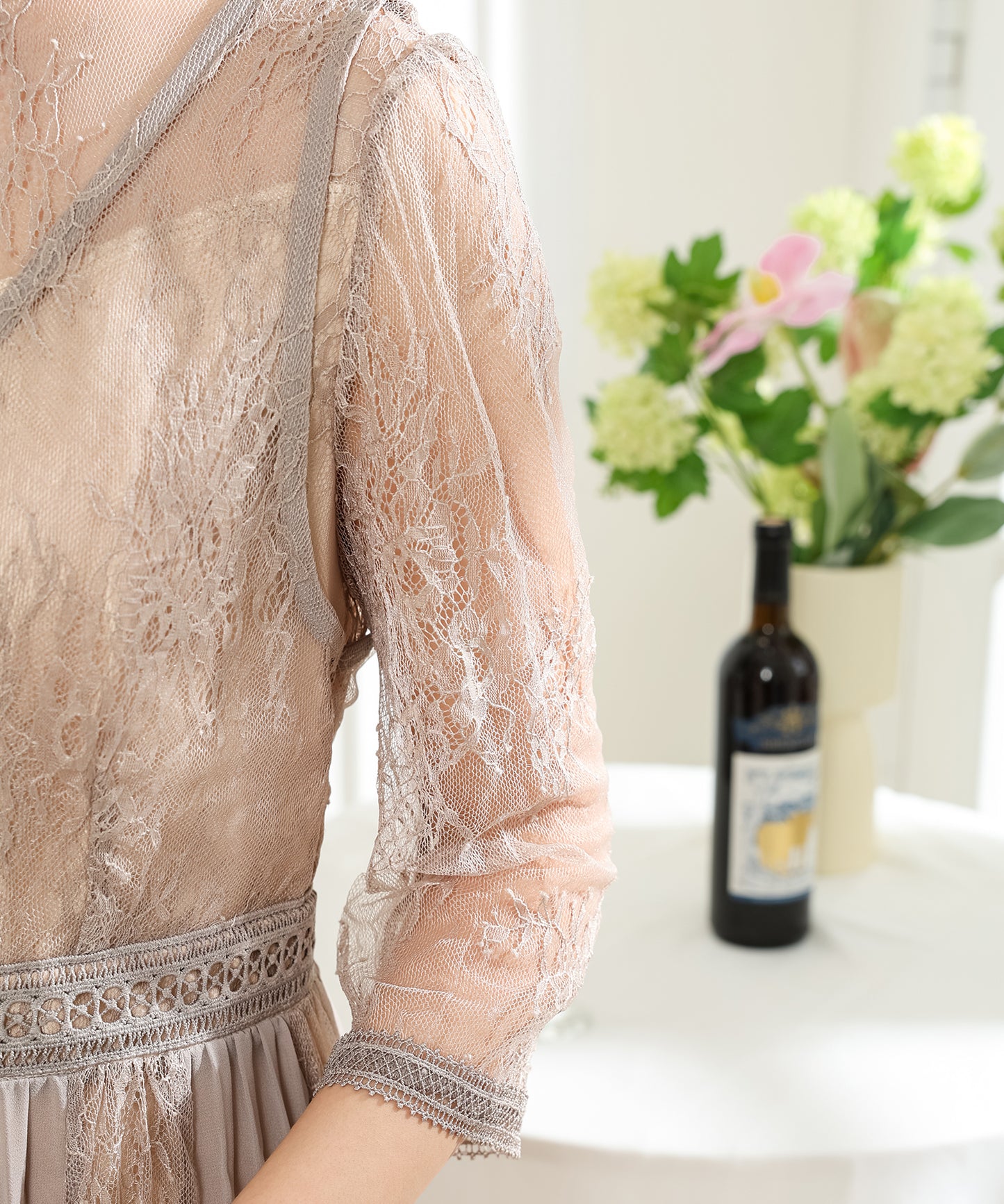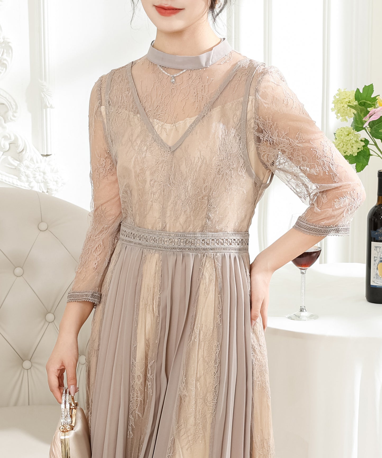 2way バックコンシャス レース 袖リボン レイヤード ドレス