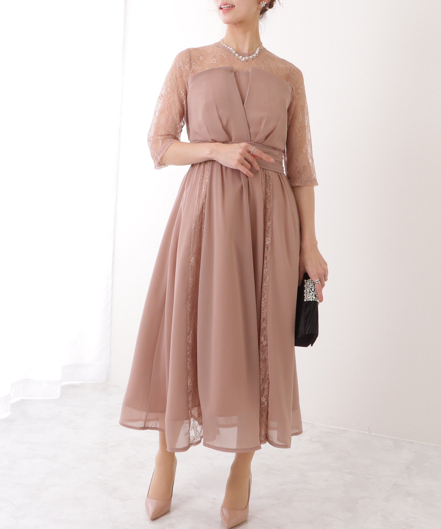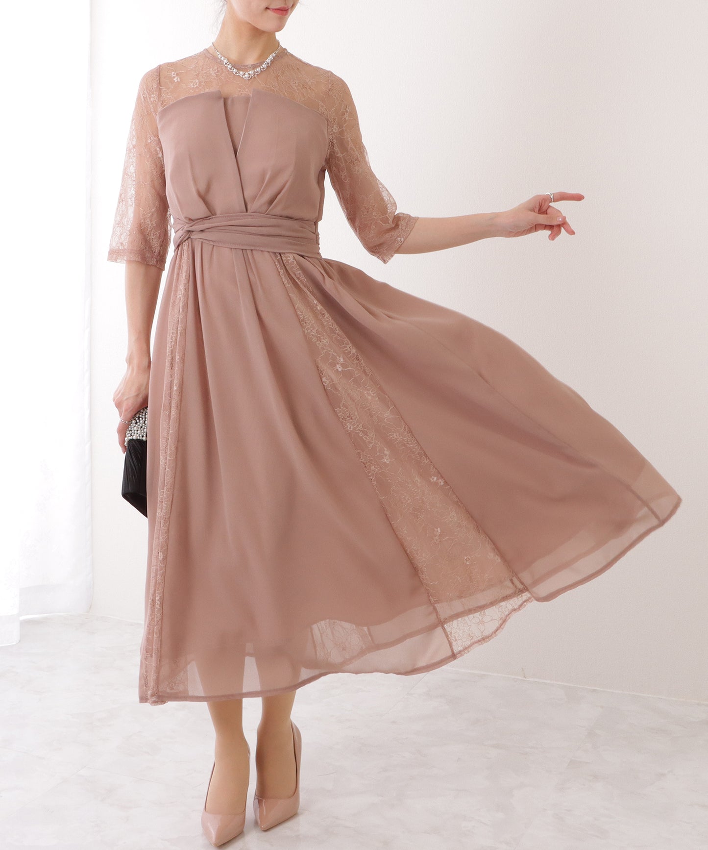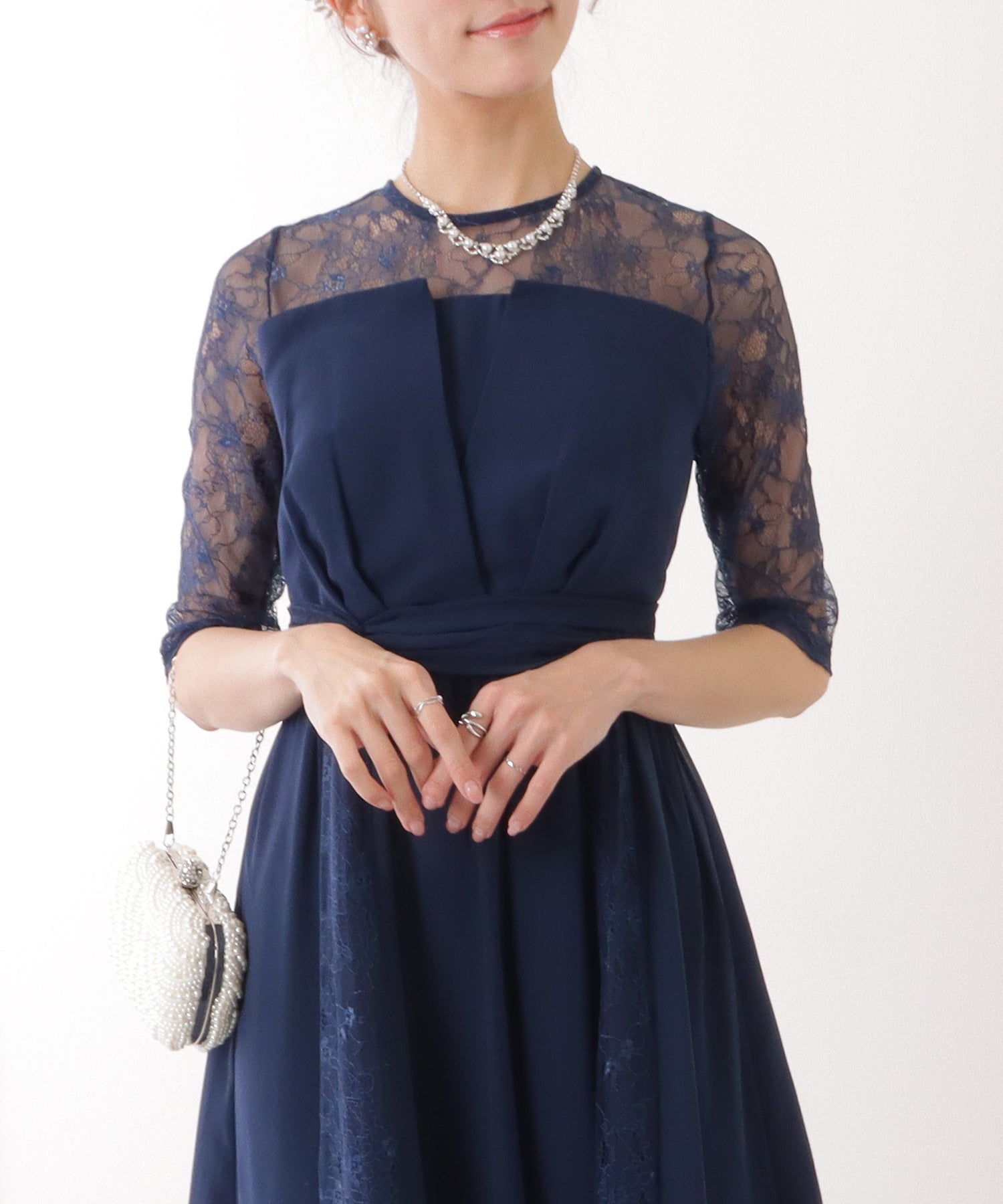 フェミニンなレース生地とのドッキングデザインで、華やかな表情に仕上げたドレスワンピース。