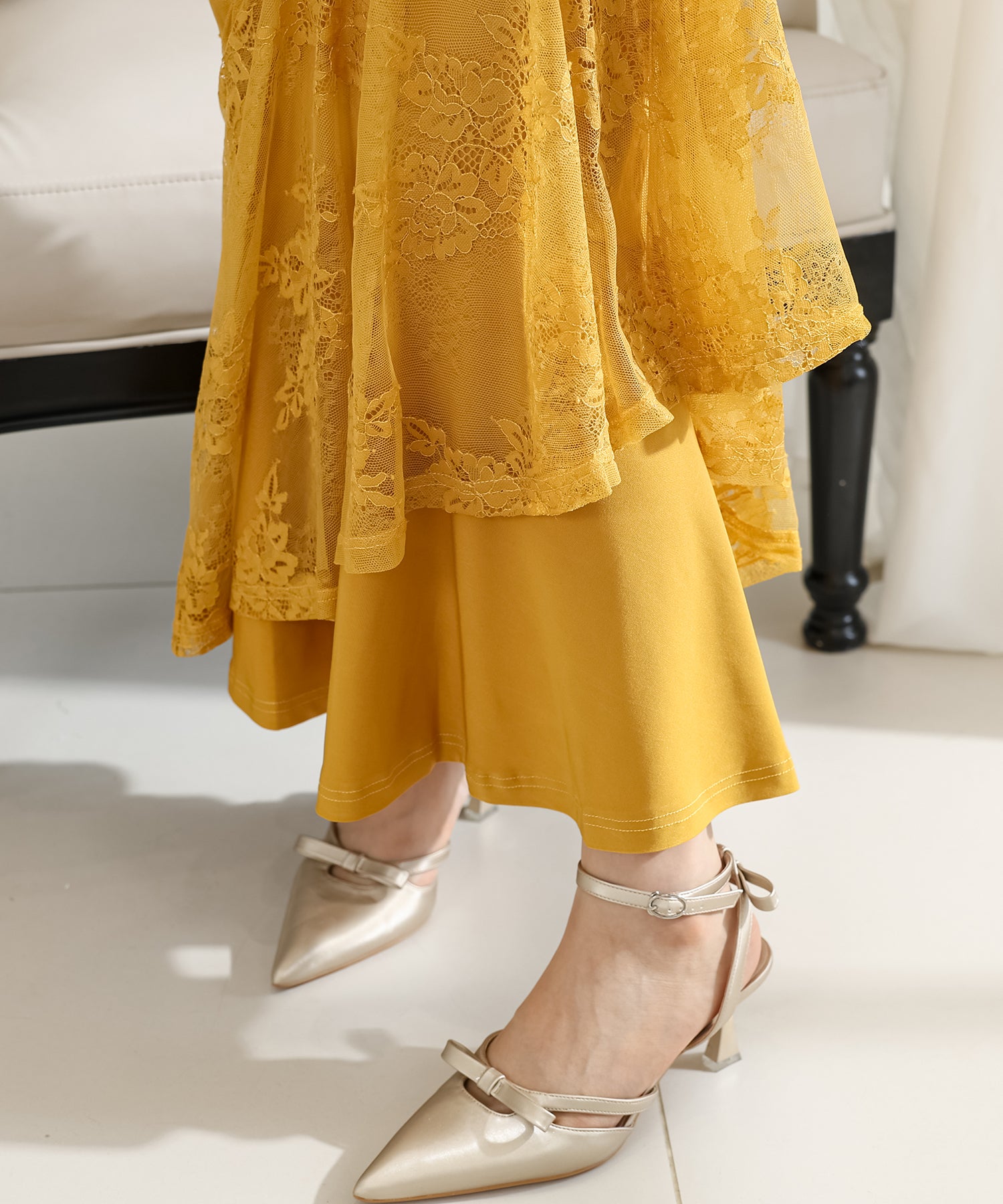 2way バックコンシャス レース 袖リボン レイヤード ドレス