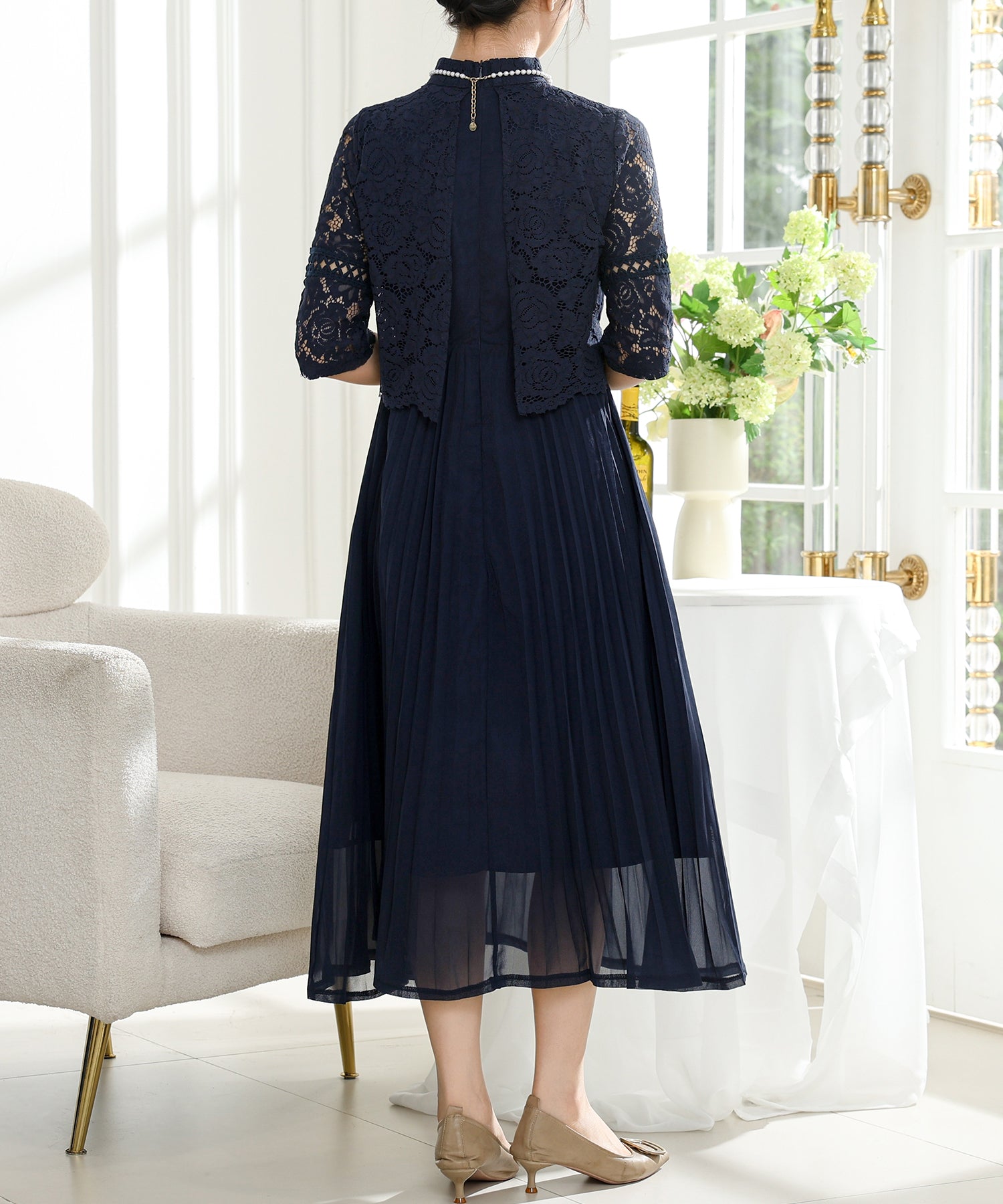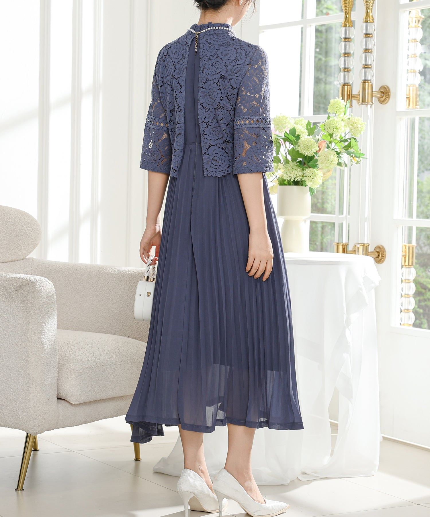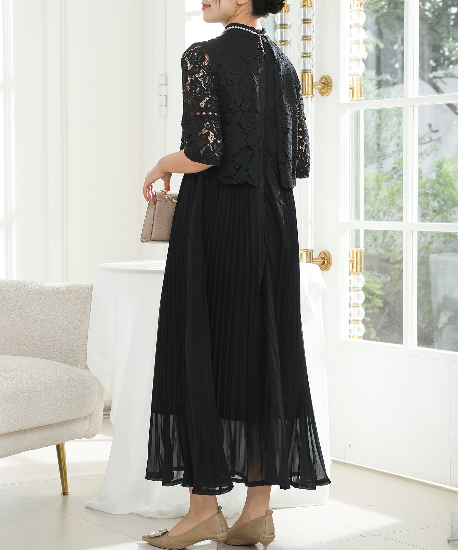 ベロア シアー フリルケープ付き ノースリーブ ドレス 3点セット