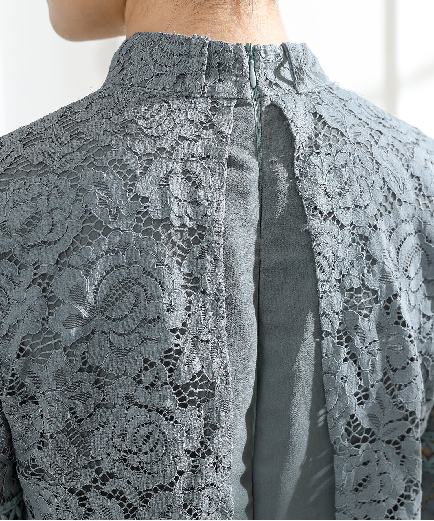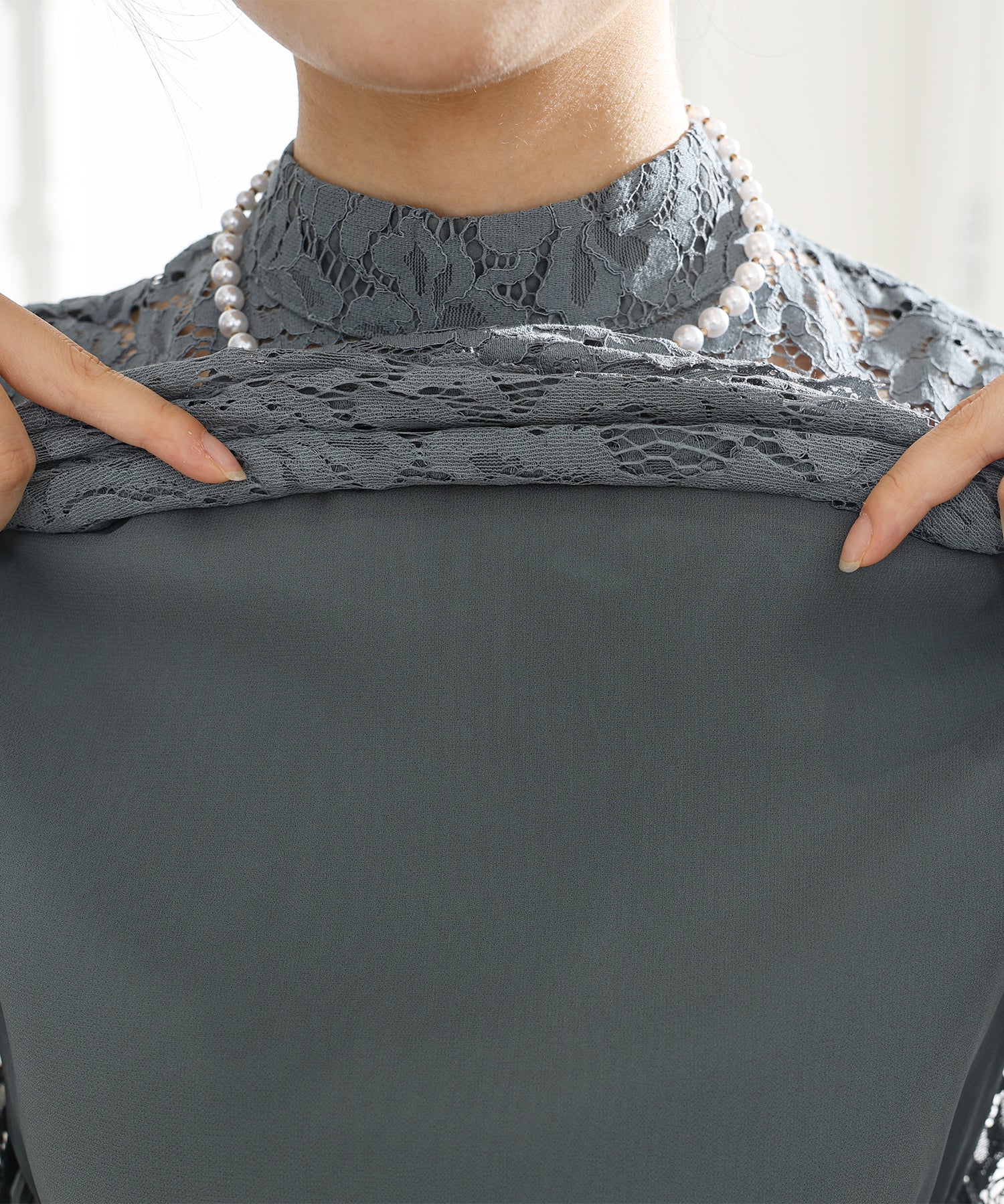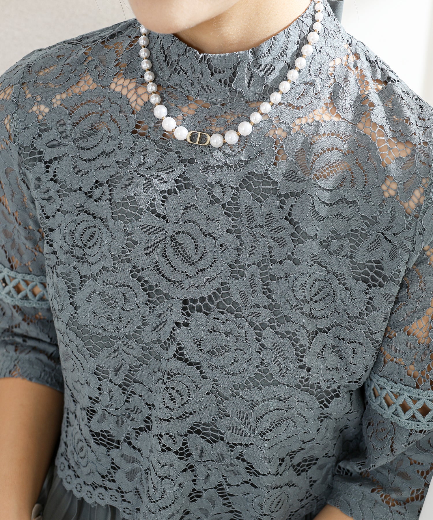 大胆な花柄レースで素材感を出すことで、顔まわりをグッと華やかに仕上げました。