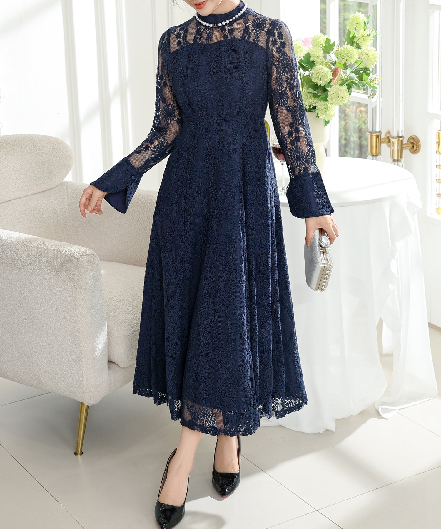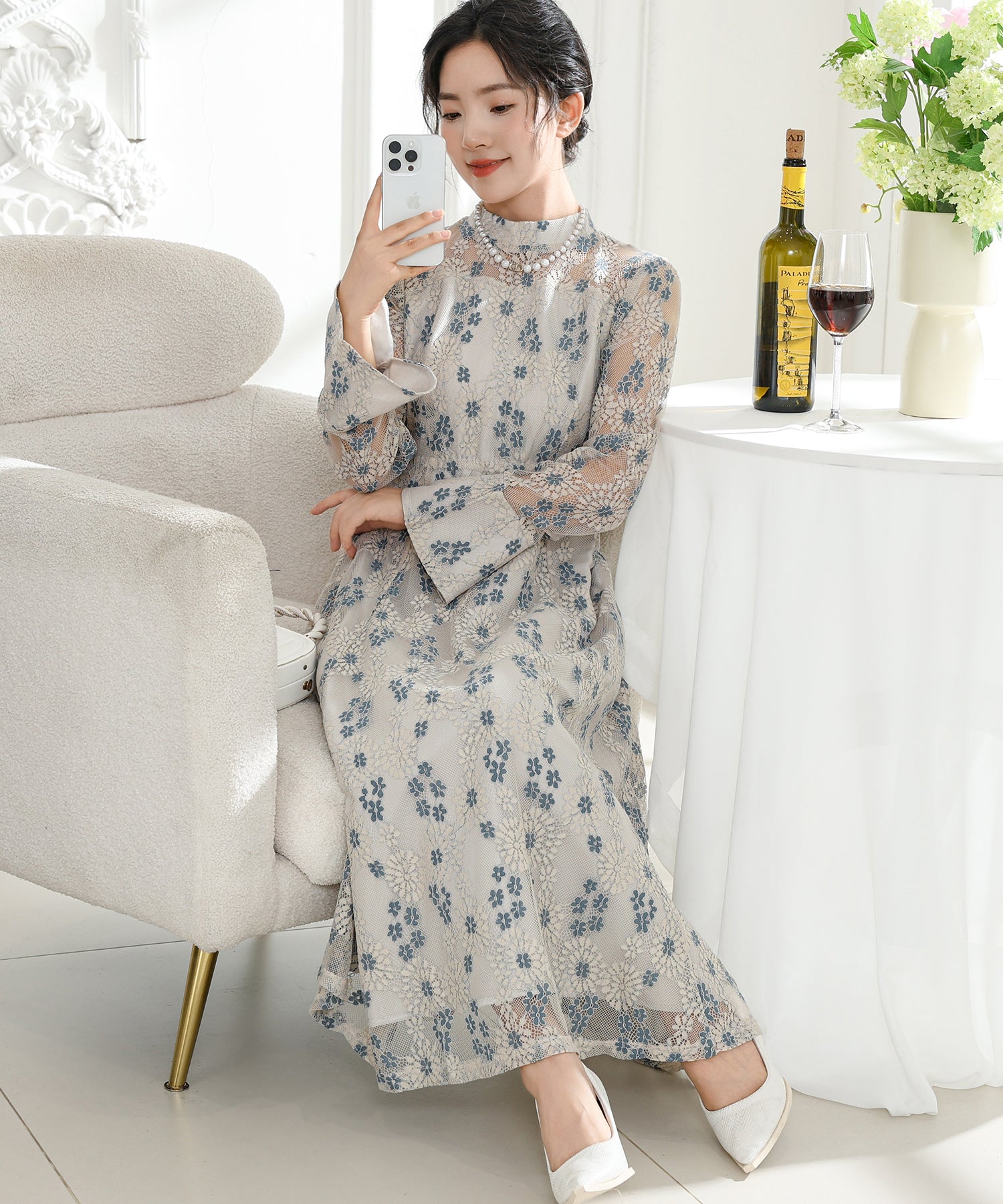 ドレス感たっぷりのロング丈でありながら、軽さのある素材感で野暮ったさは感じません。