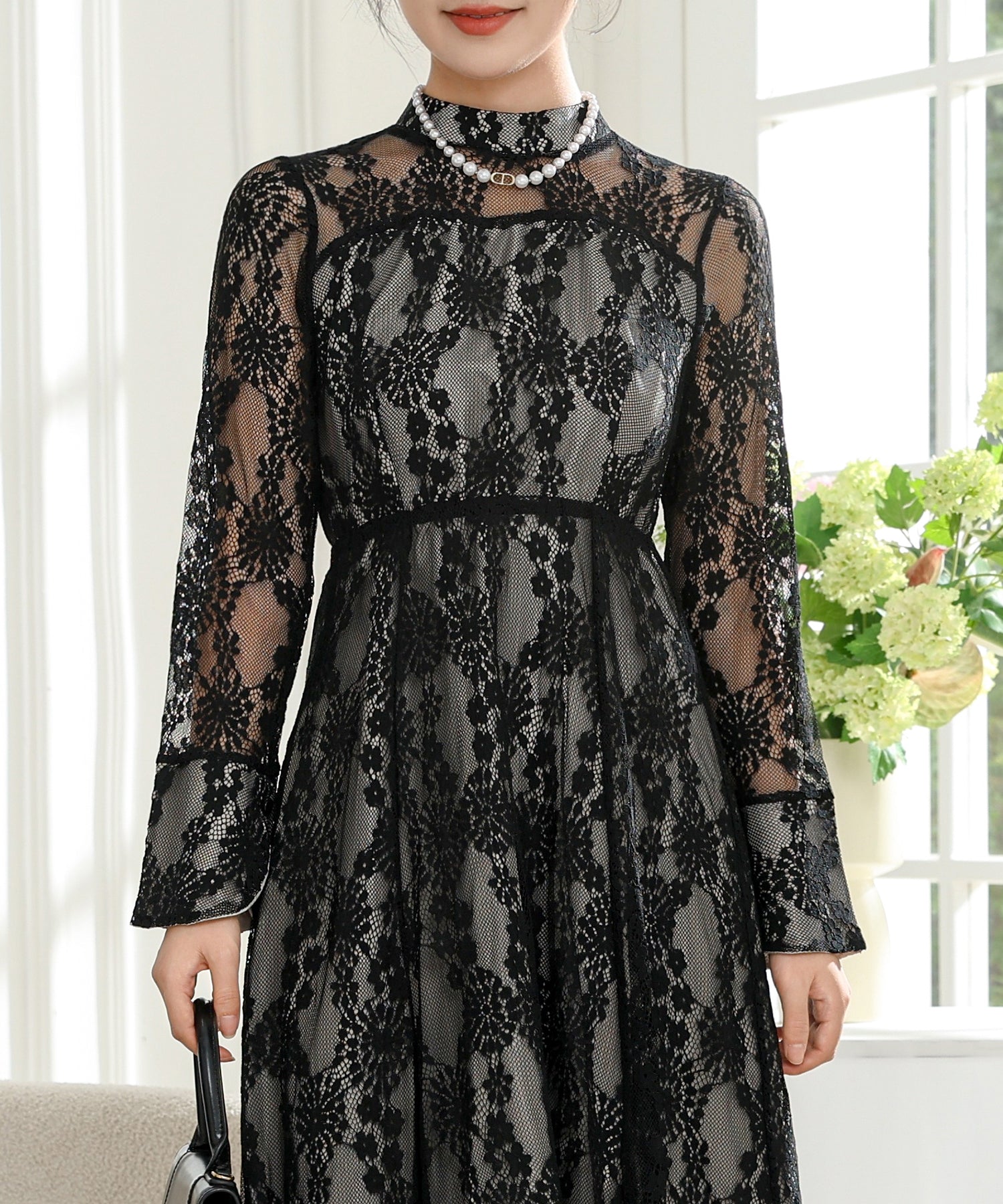 2way バックコンシャス レース 袖リボン レイヤード ドレス