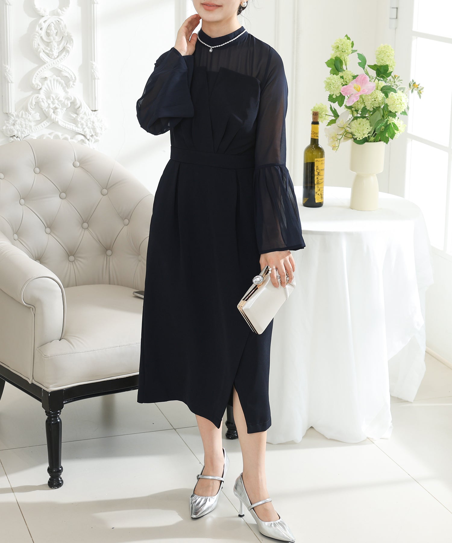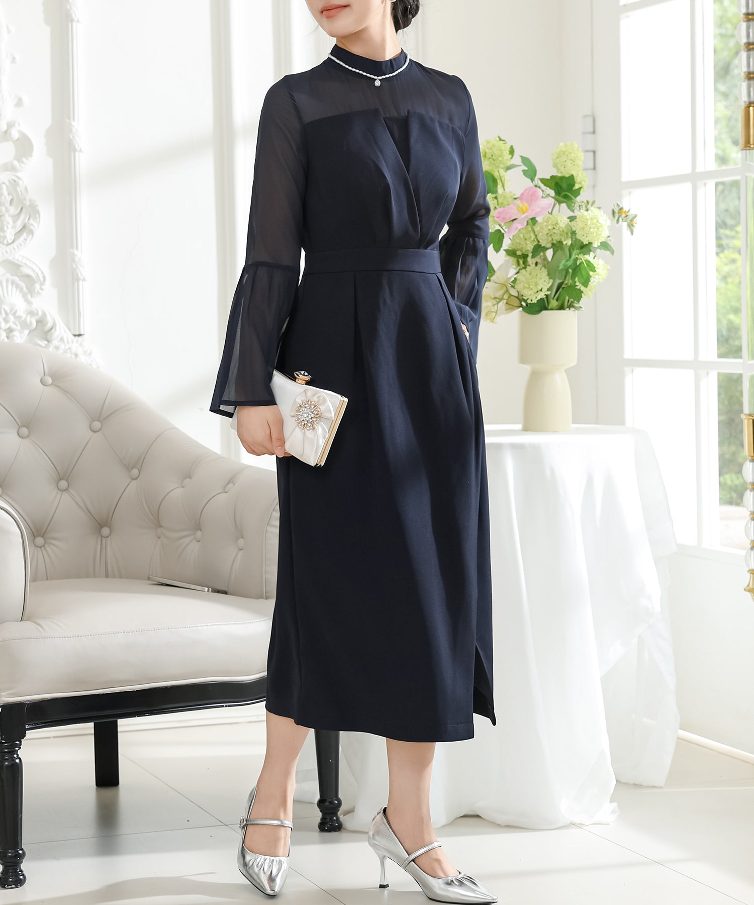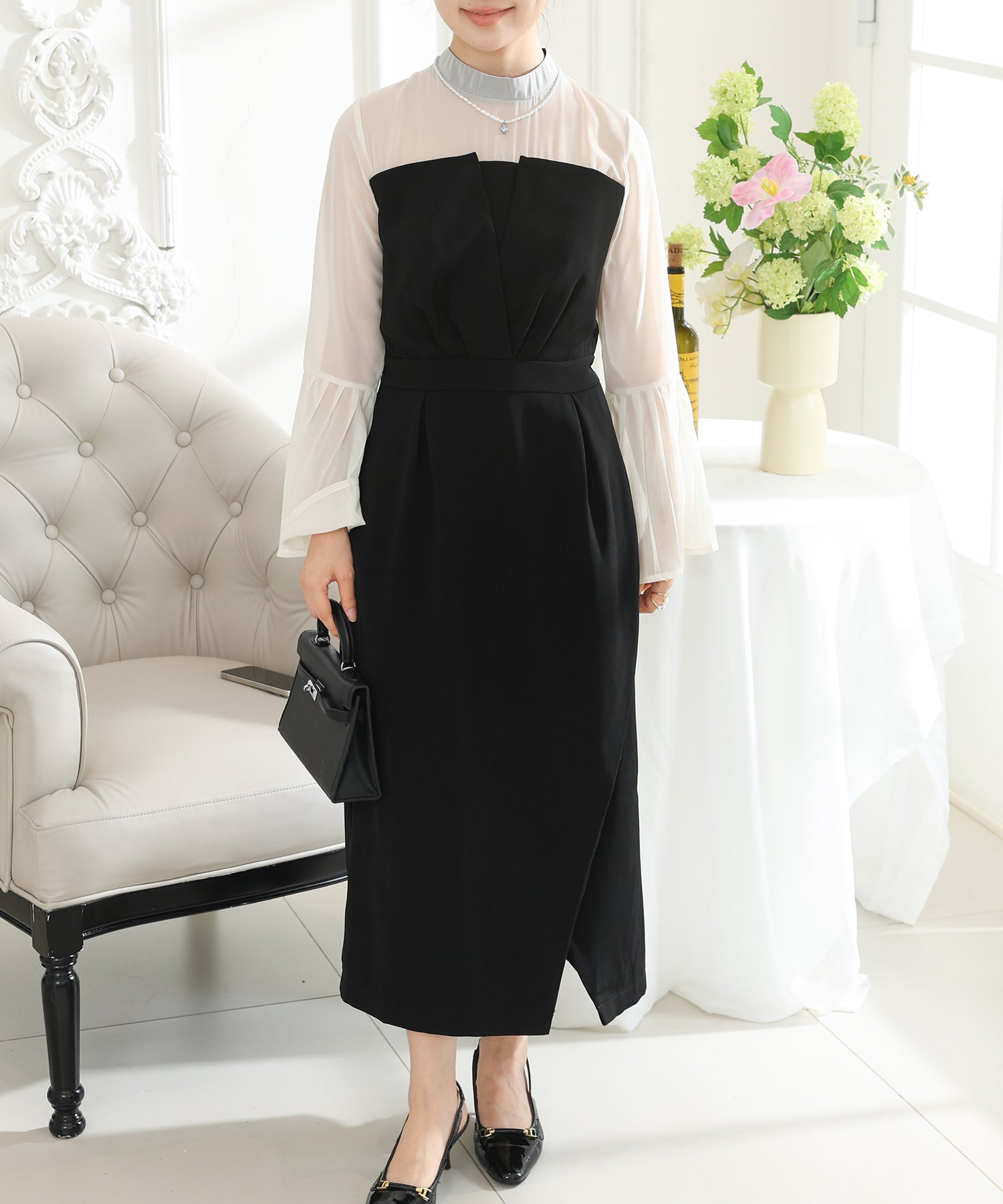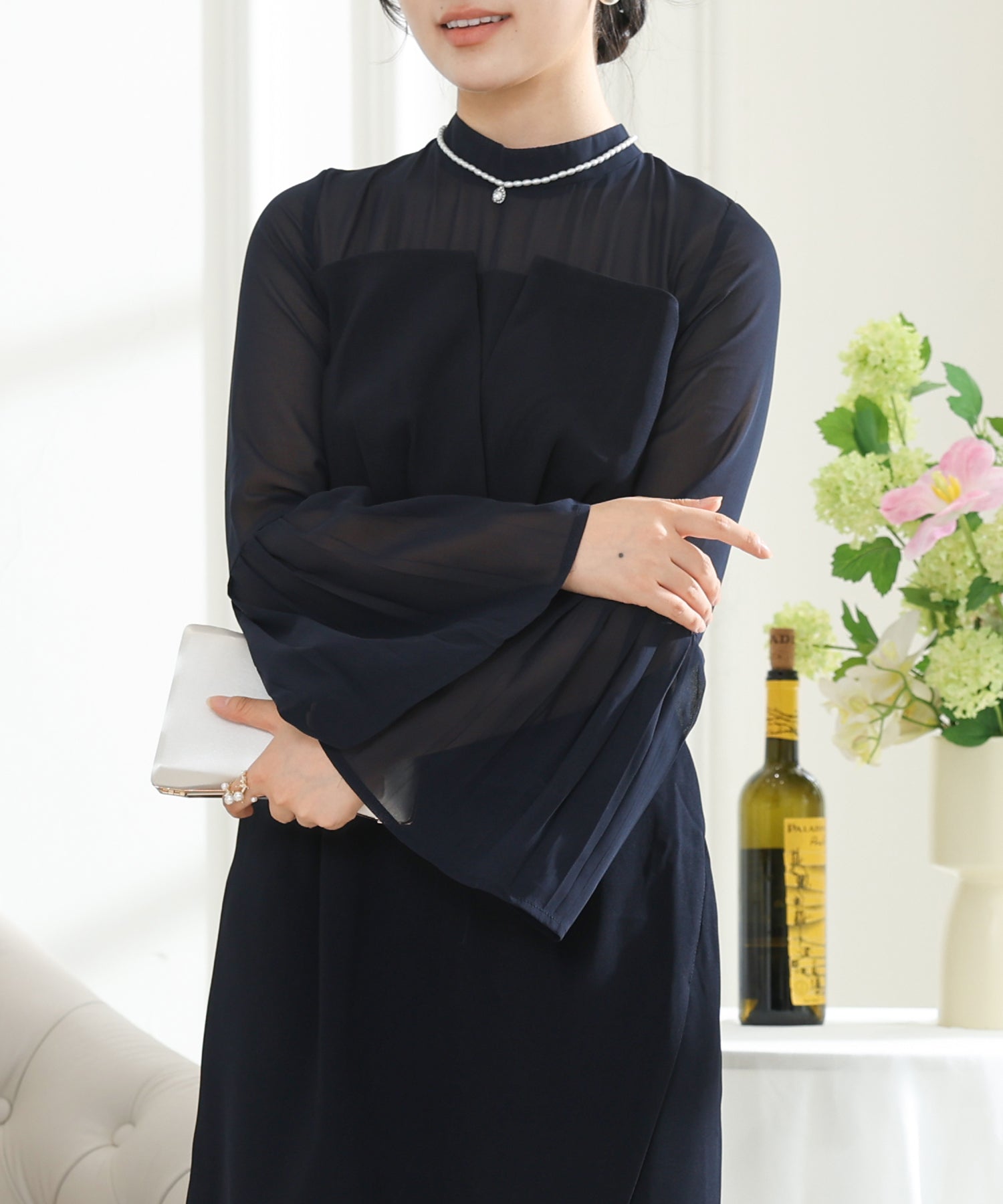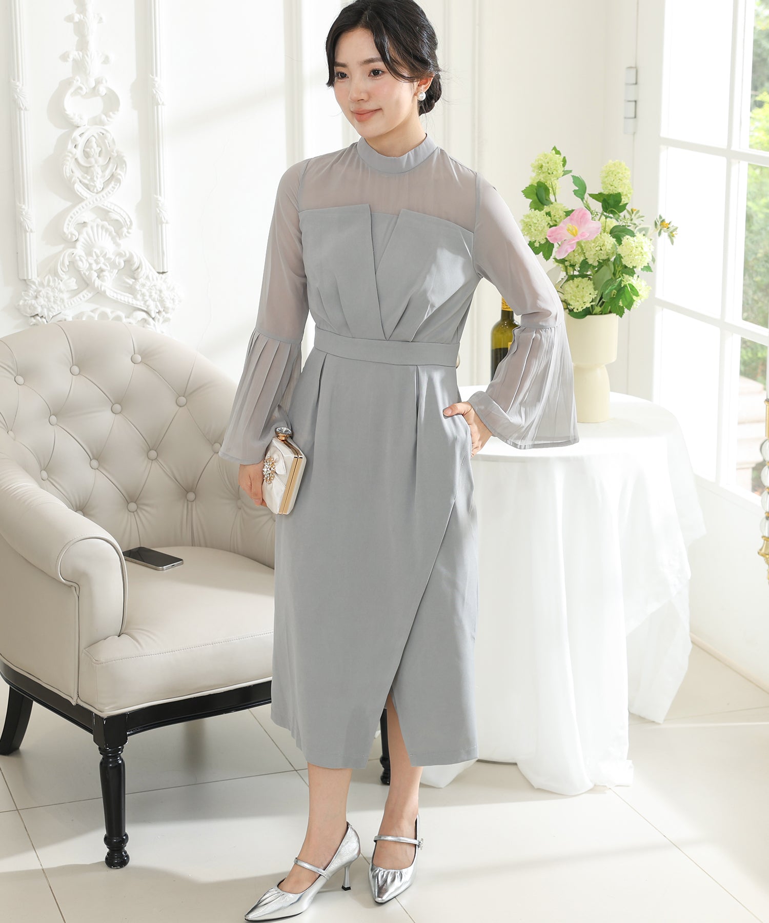 トレンドのシアー生地を採用した、フェイクレイヤードデザインで、華やかな1枚に仕立てました。