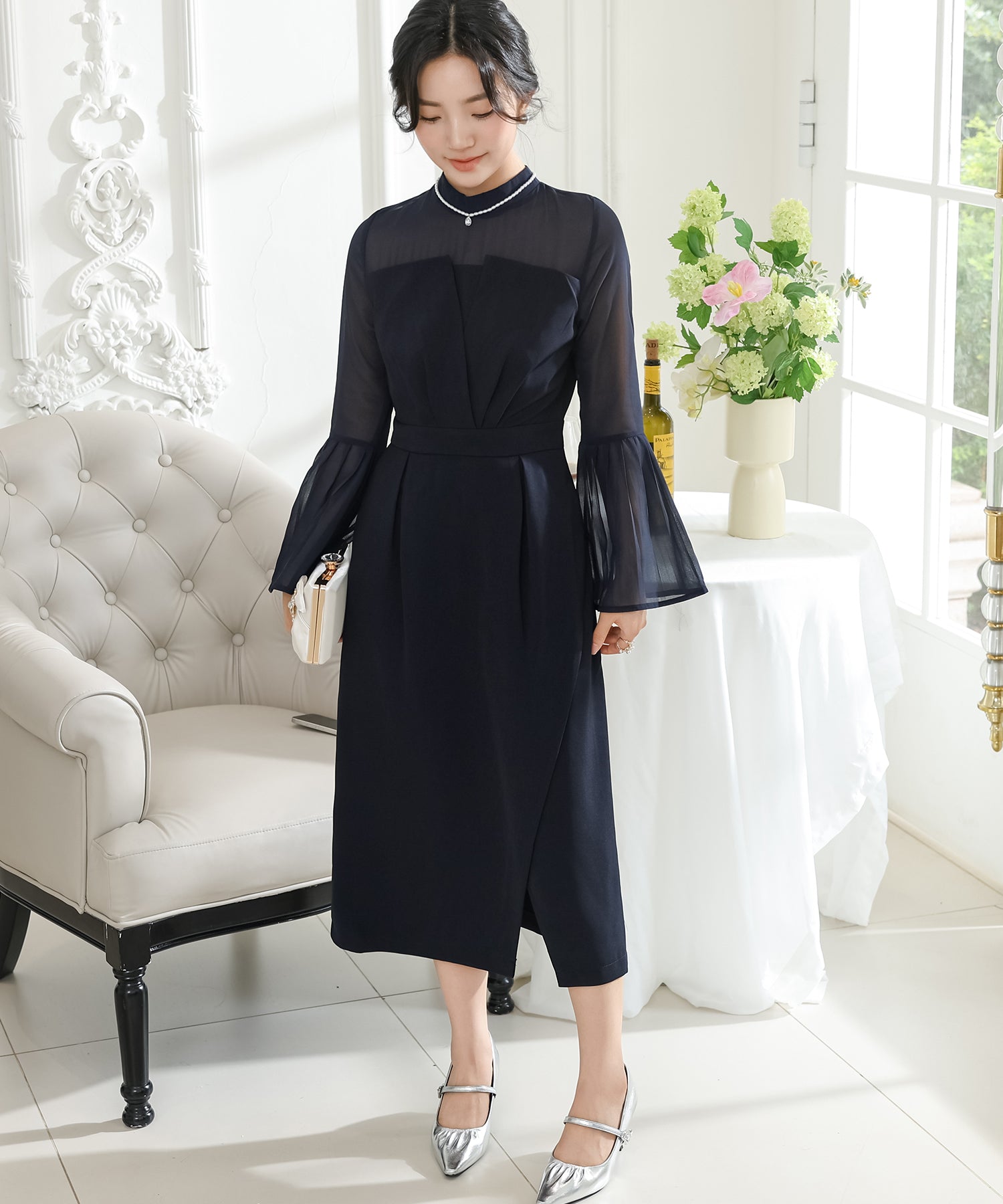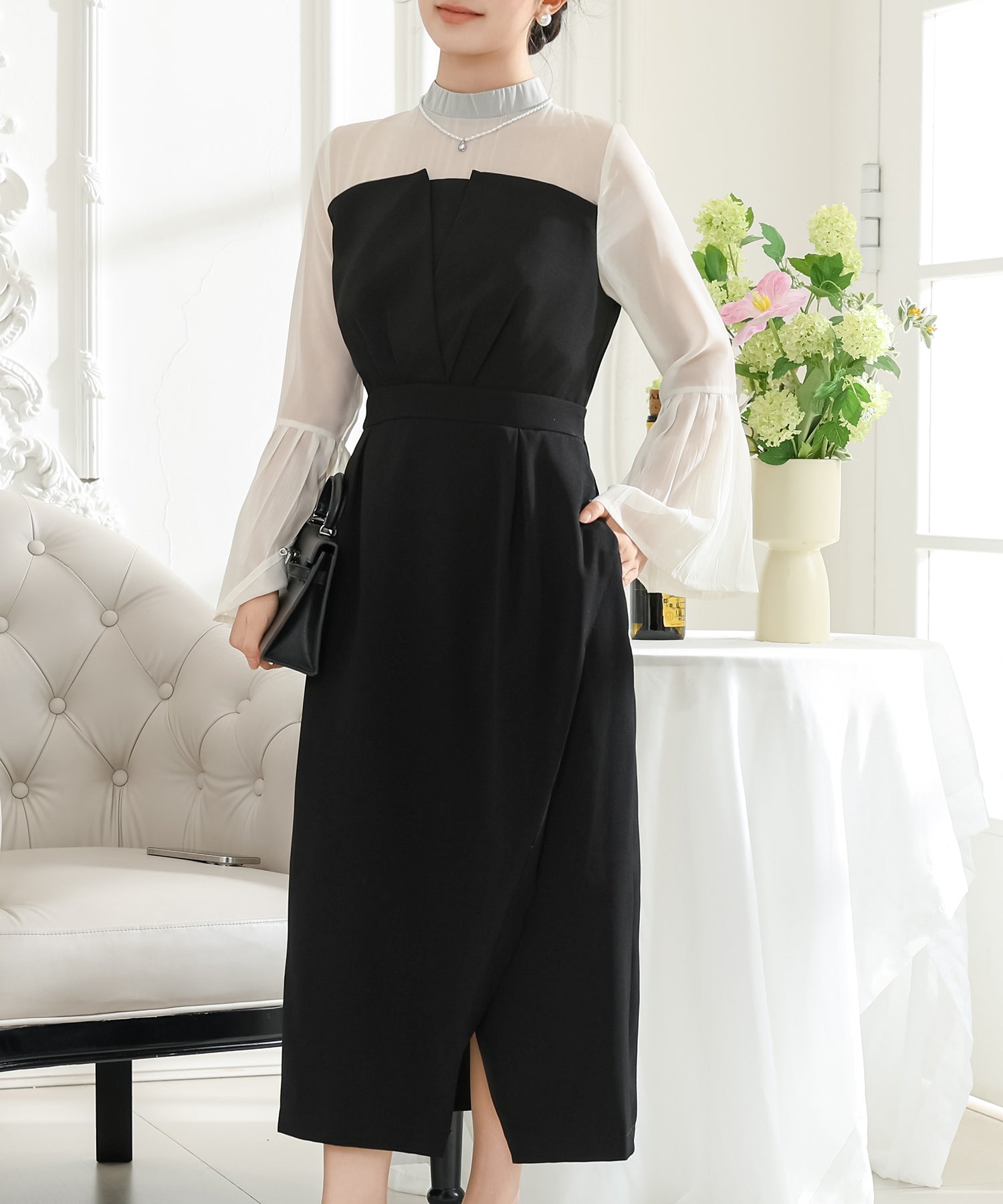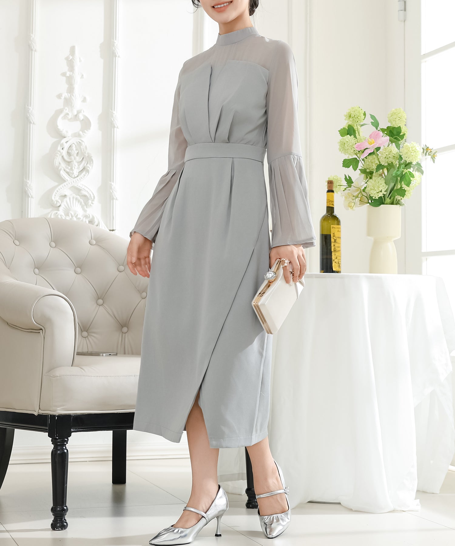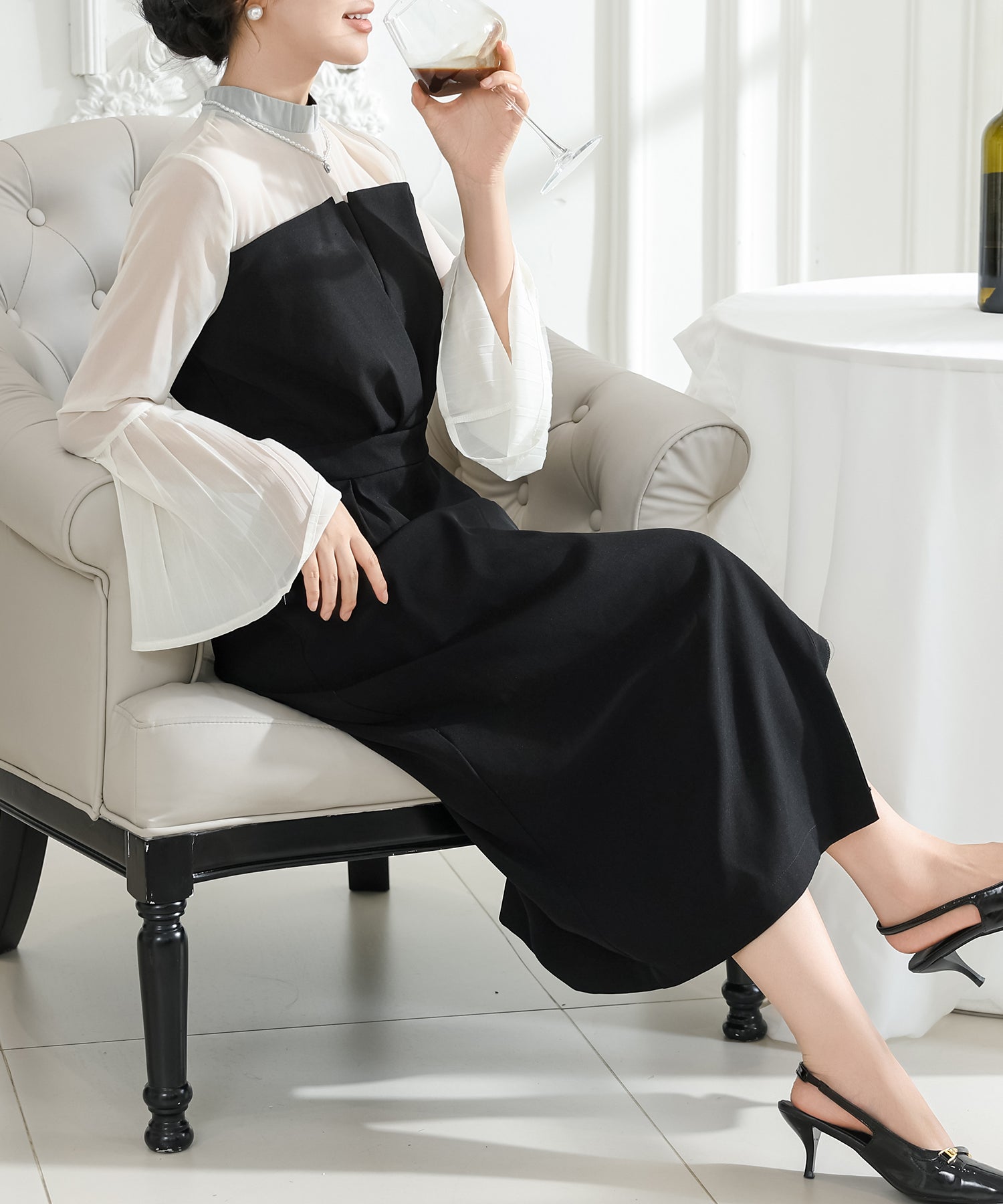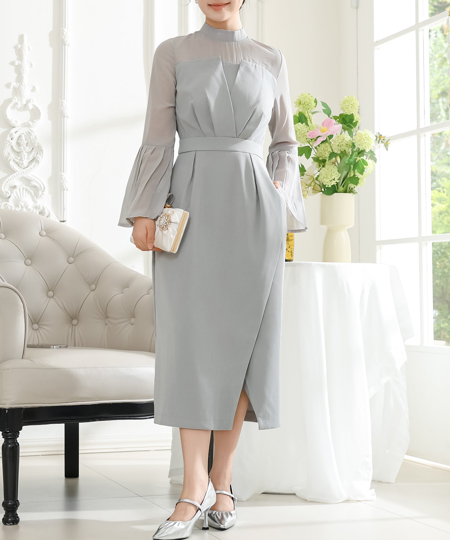 トレンドのシアー生地を採用した、フェイクレイヤードデザインで、華やかな1枚に仕立てました。