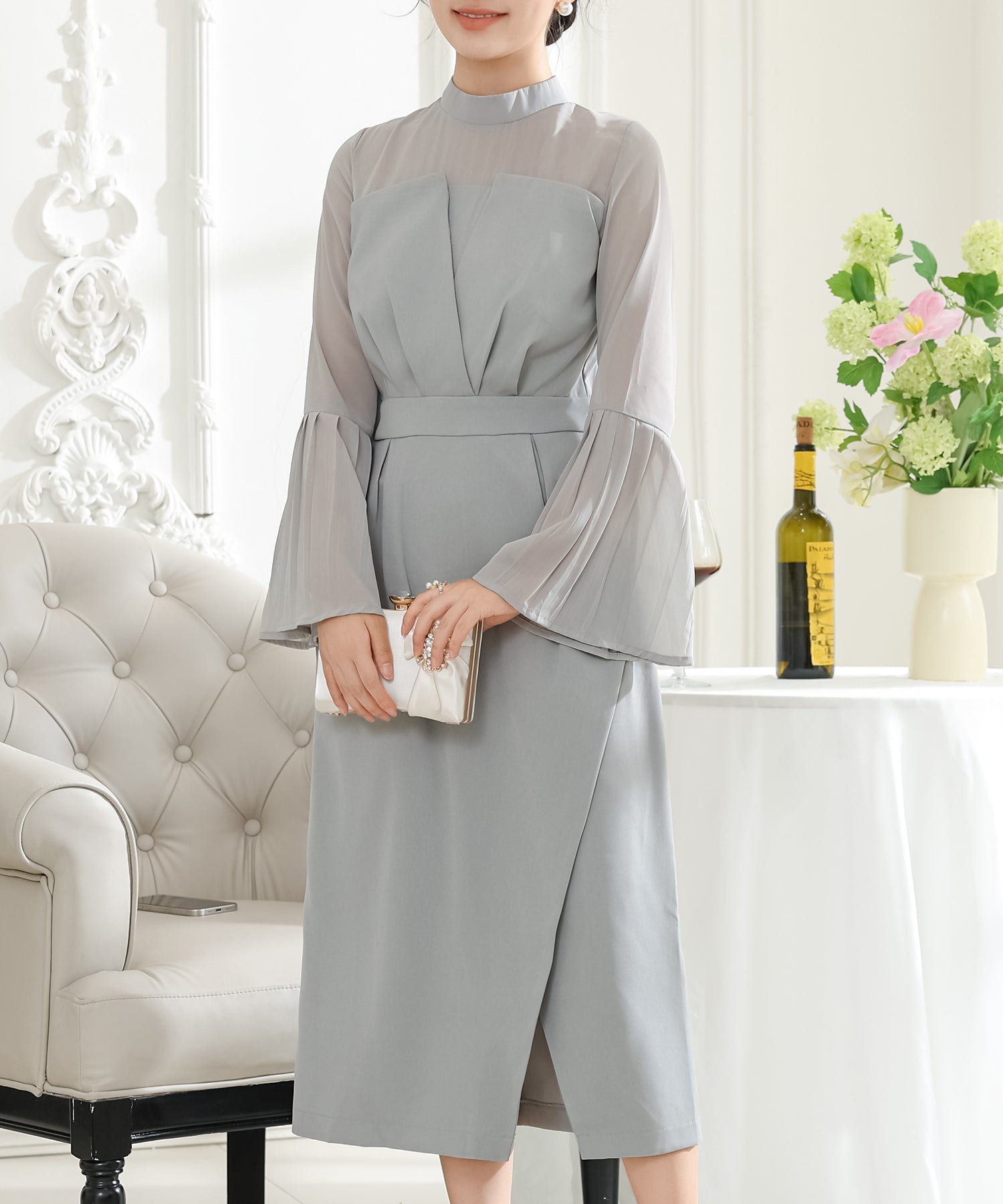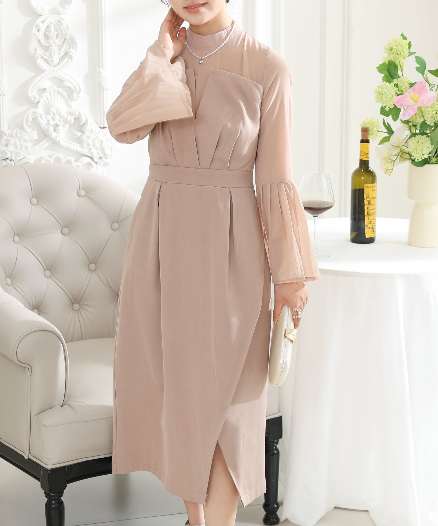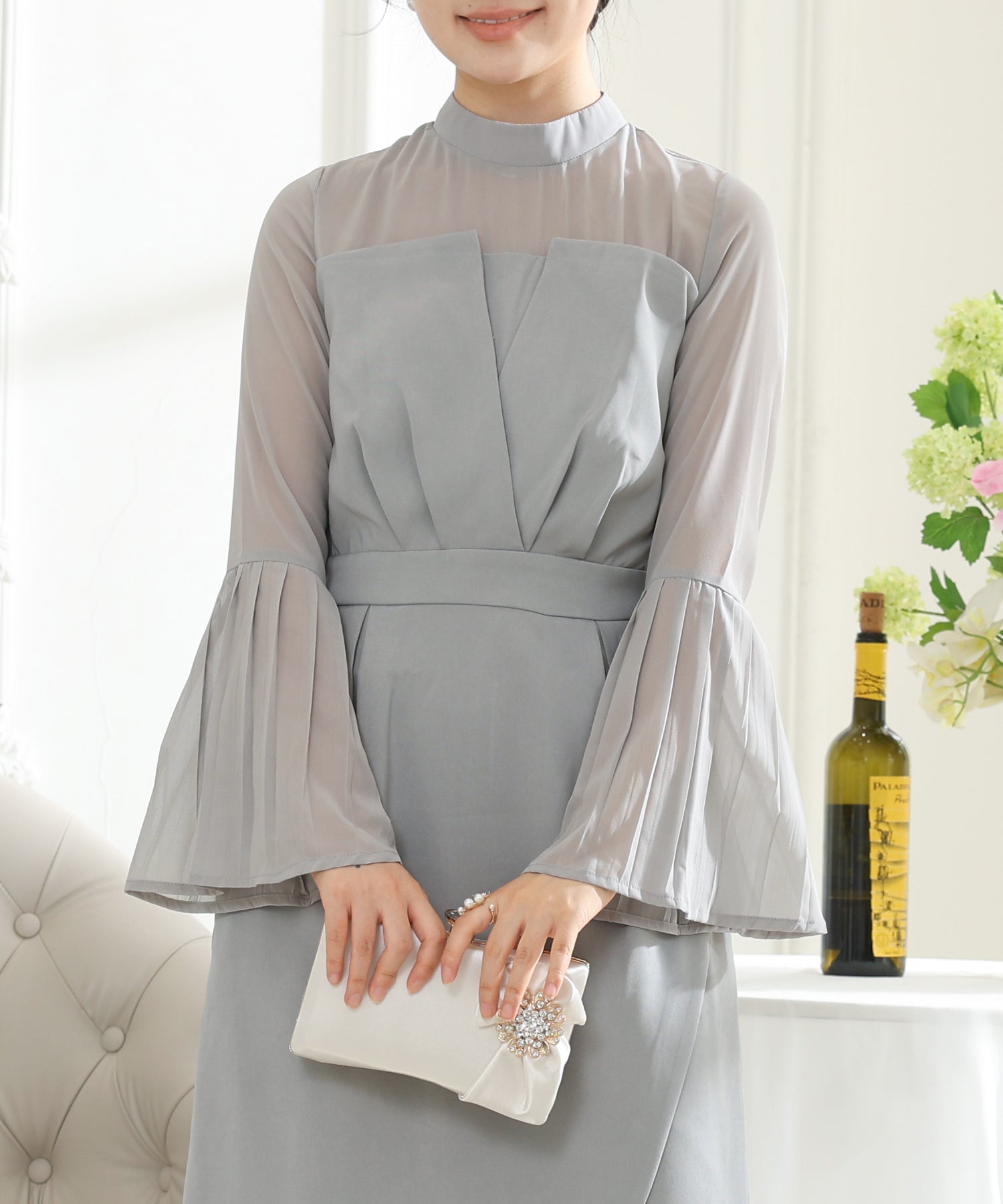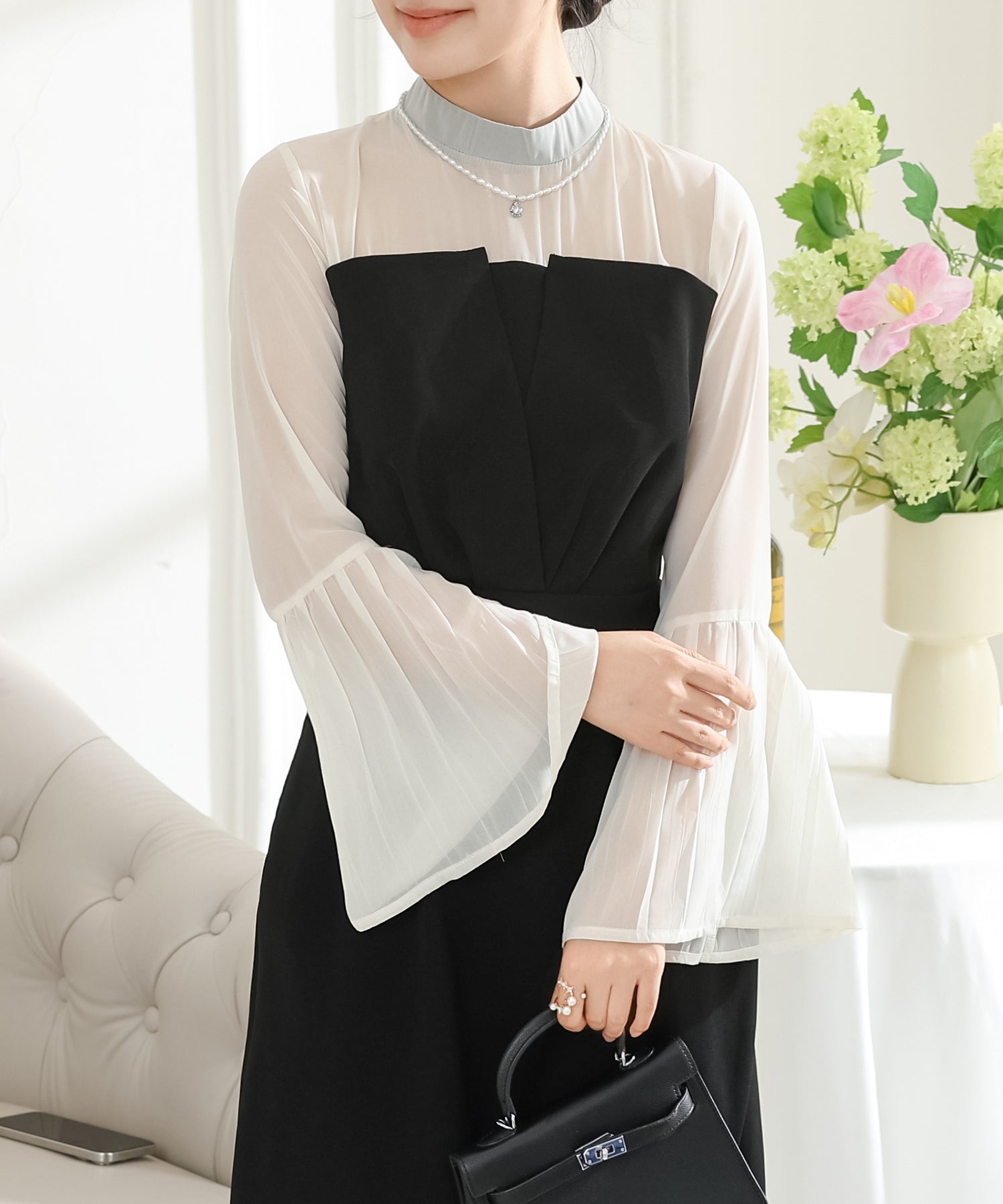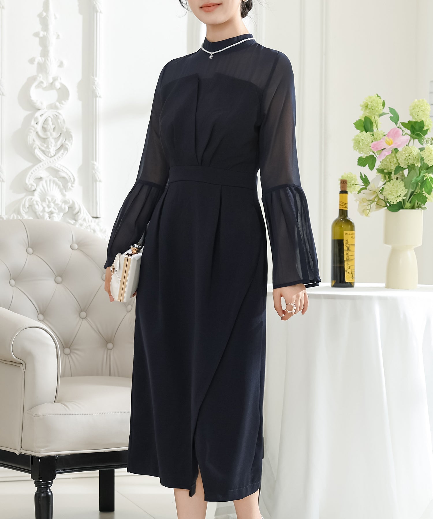 トレンドのシアー生地を採用した、フェイクレイヤードデザインで、華やかな1枚に仕立てました。