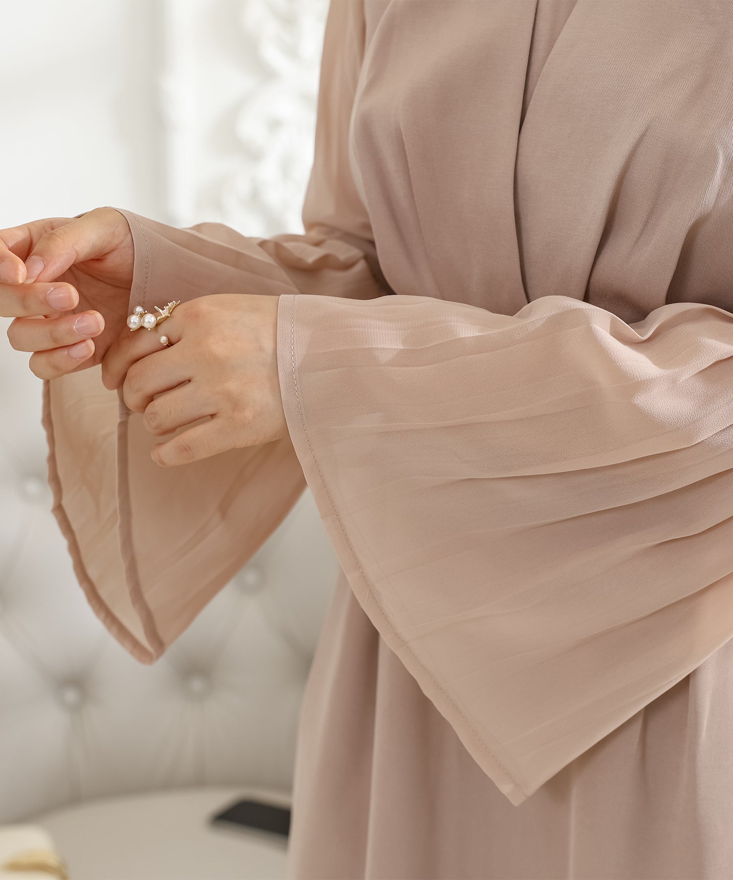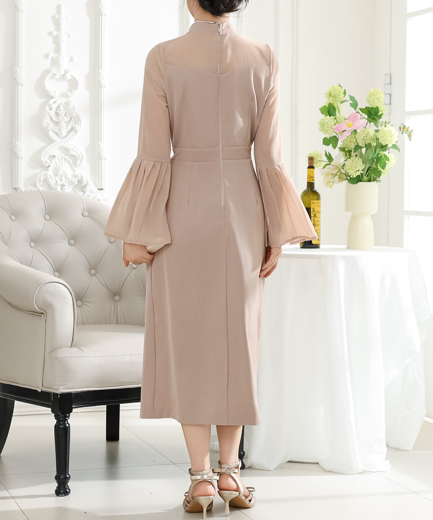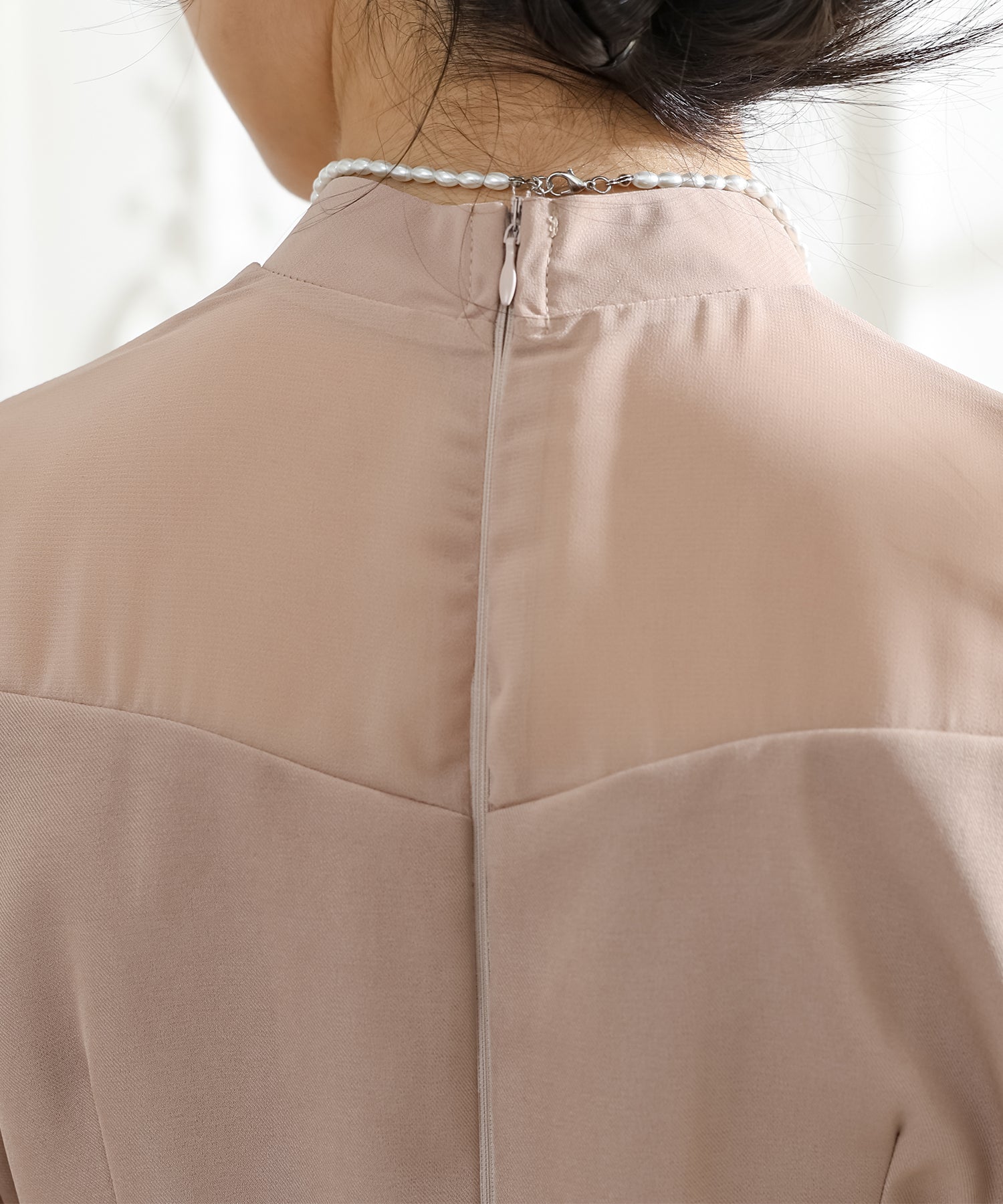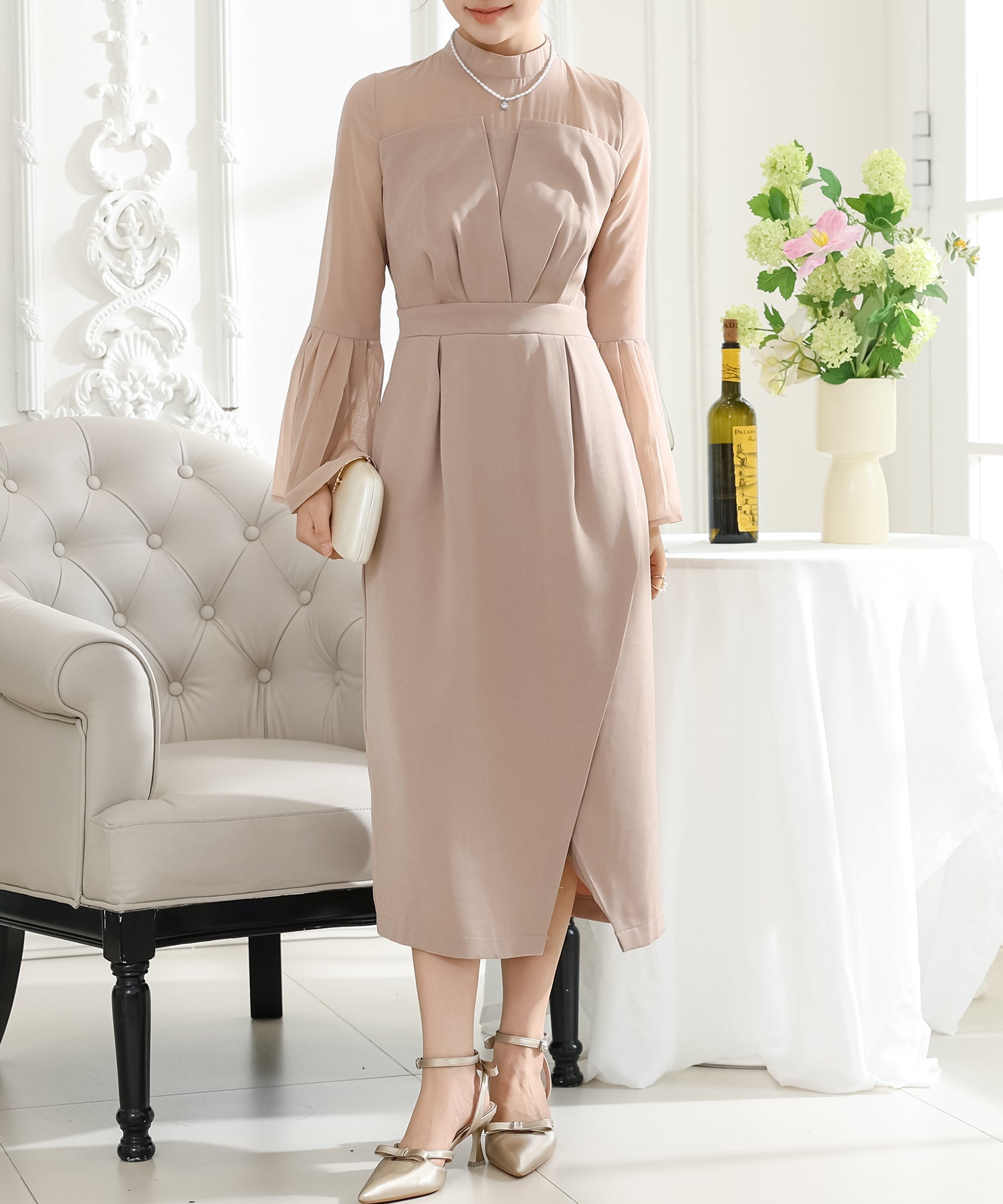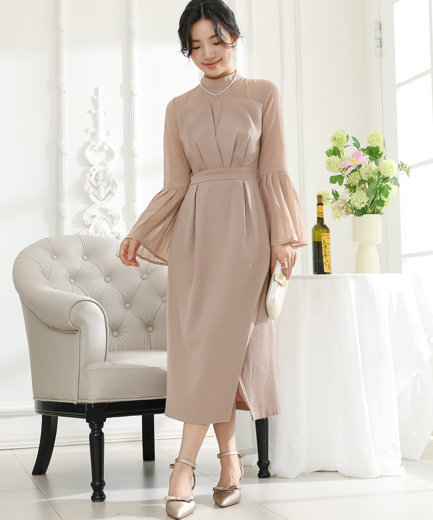 トレンドのシアー生地を採用した、フェイクレイヤードデザインで、華やかな1枚に仕立てました。