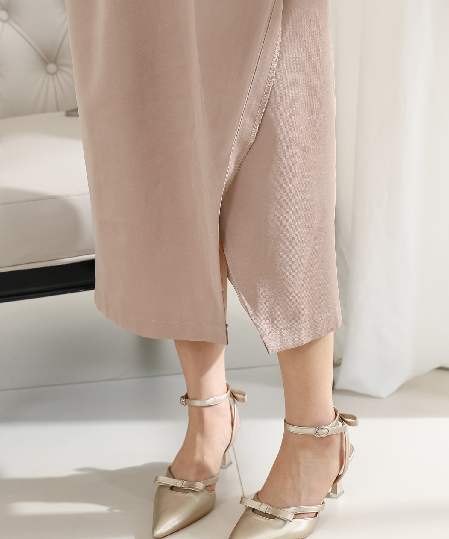 タックやスリットなど、女性らしいディテールにこだわった、エレガントなデザインもポイントです。