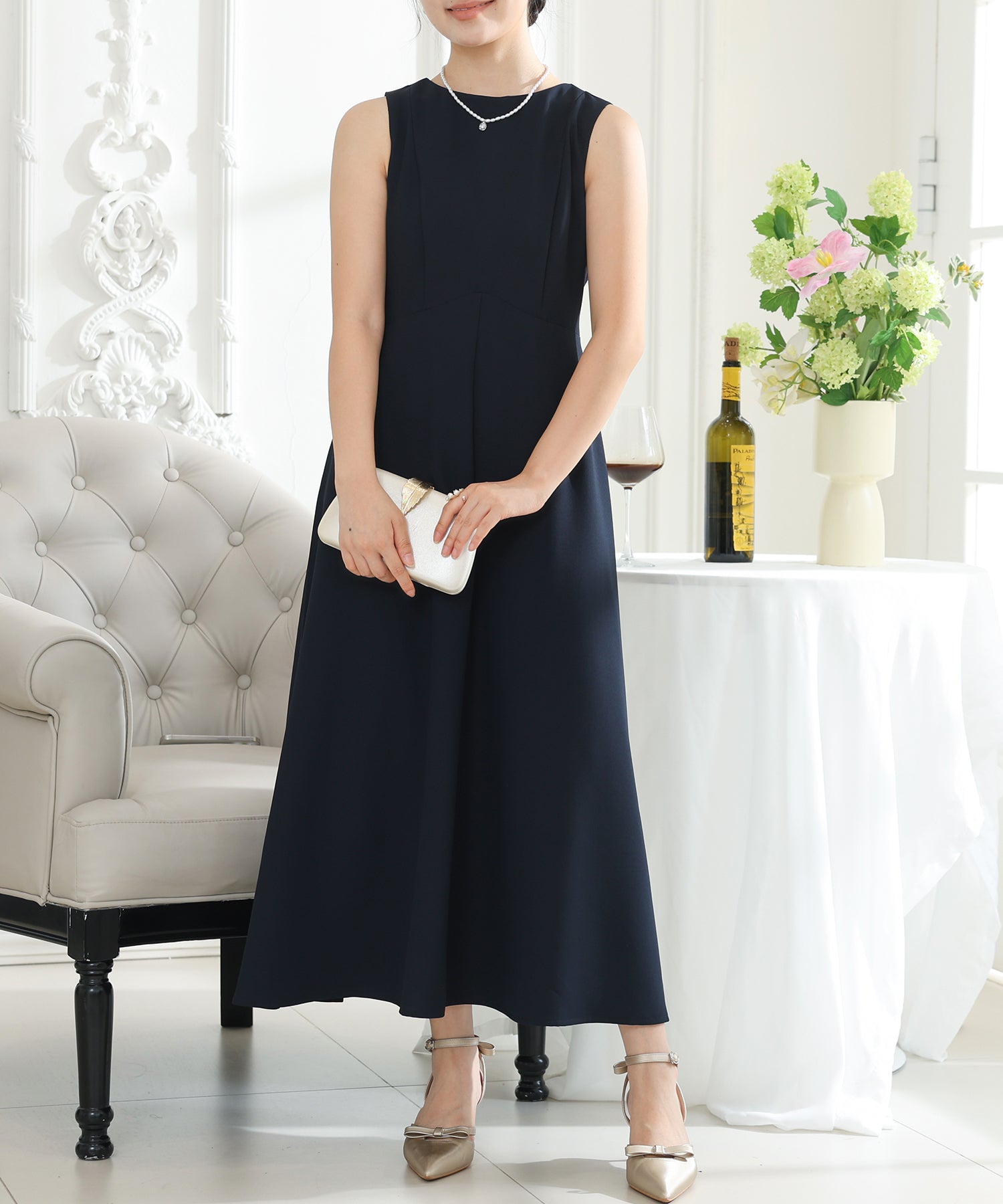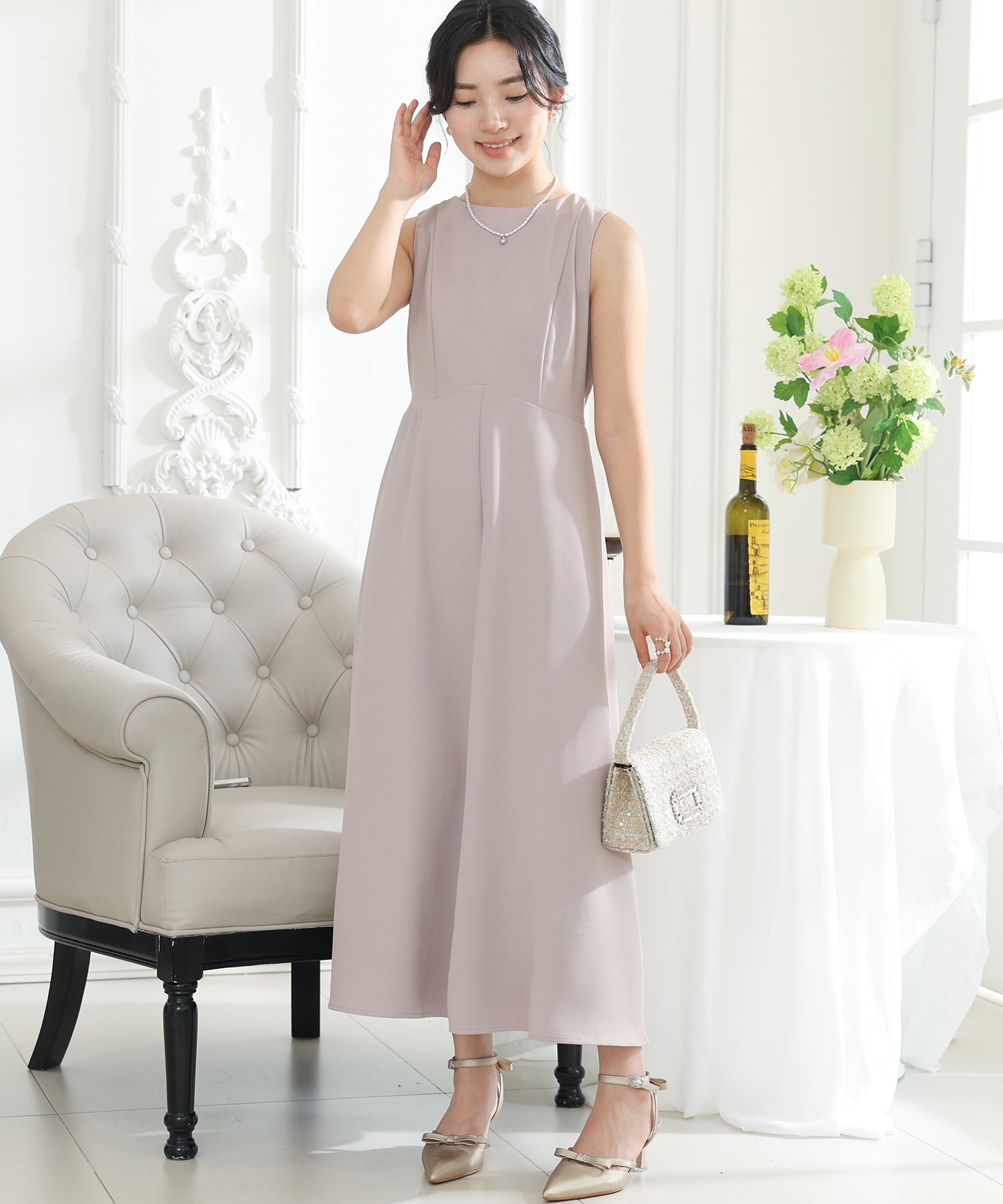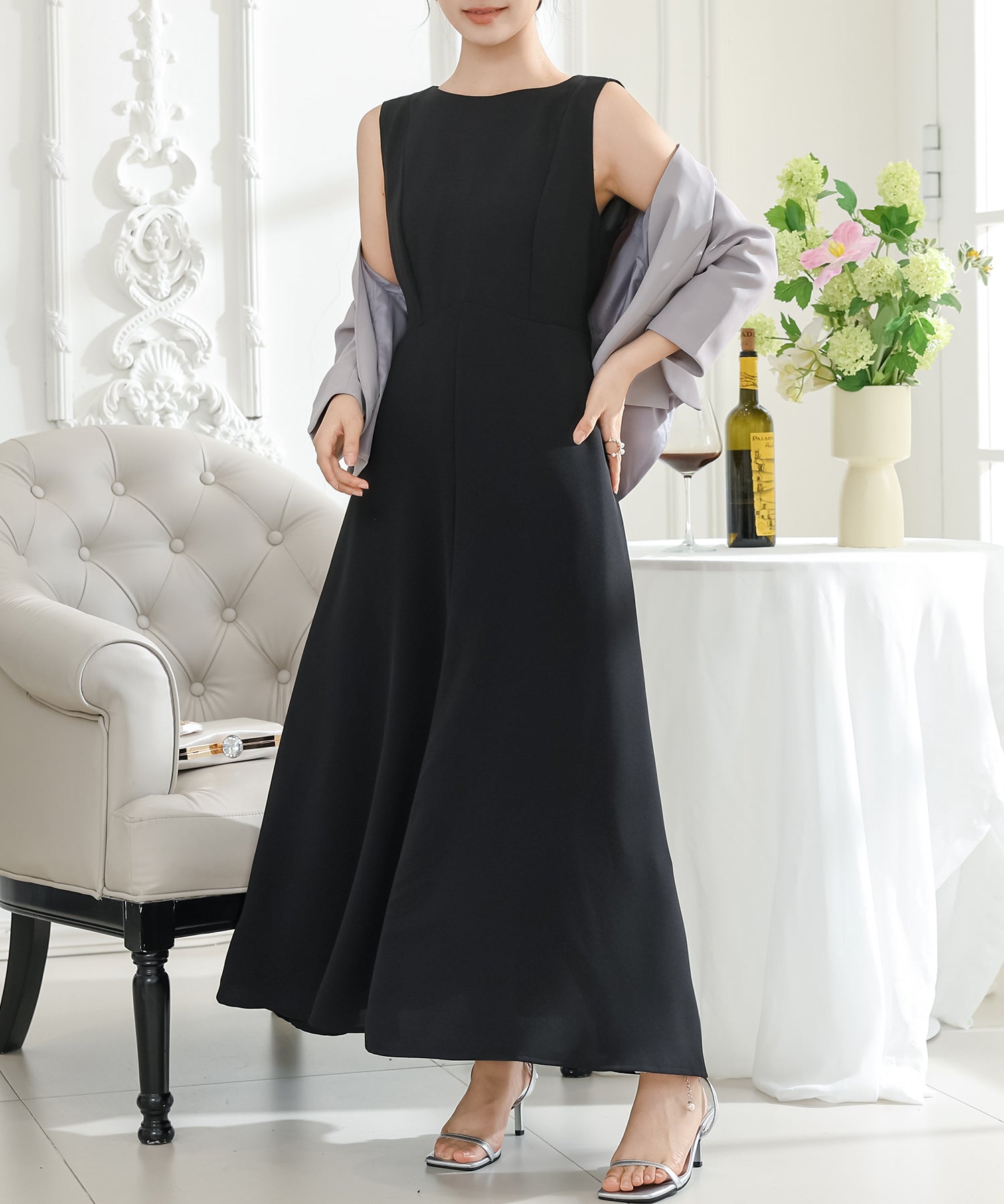 【2点セット】 ノーカラー ジャケット付き Aライン ノースリーブ ワンピース