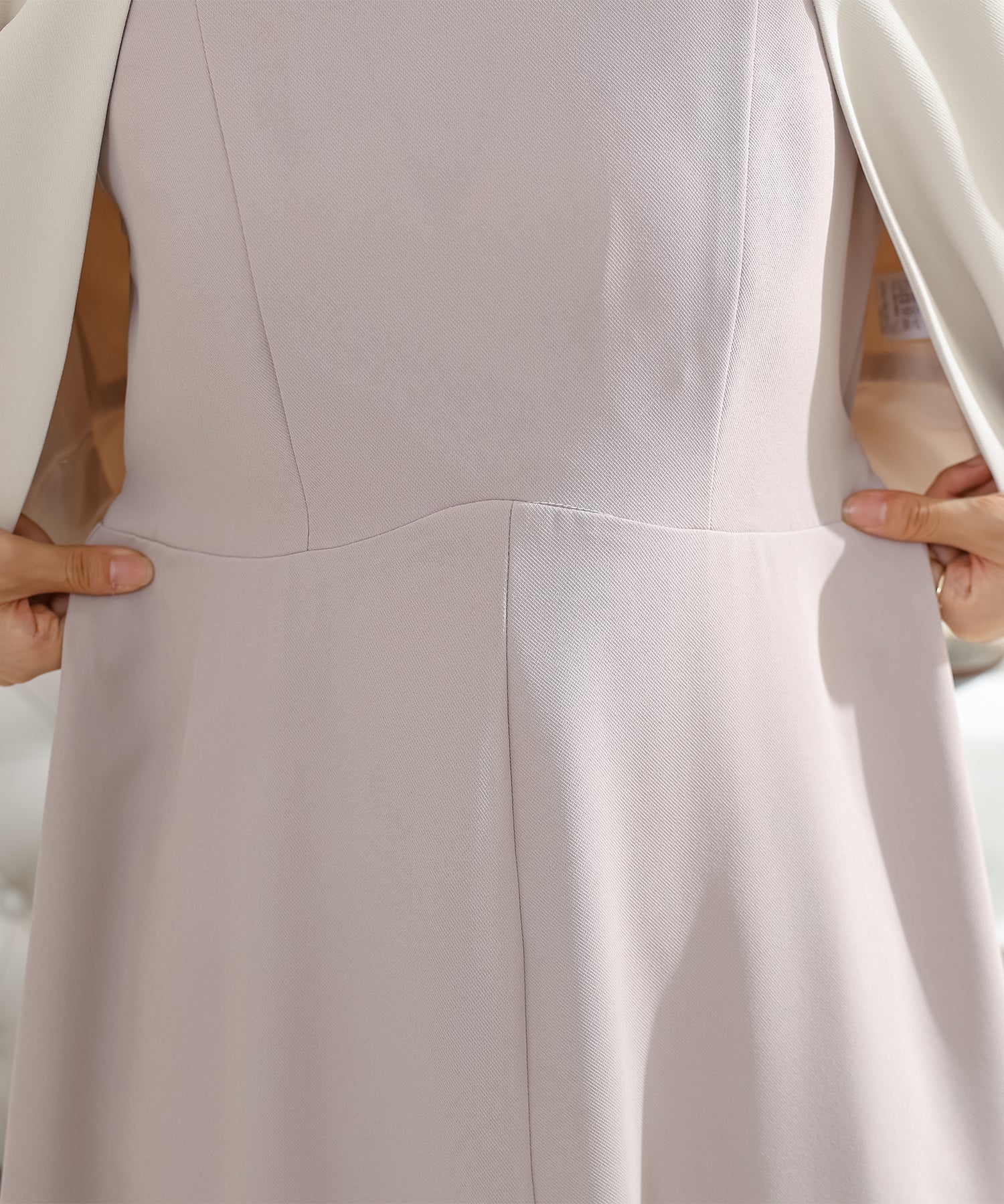 ベロア シアー フリルケープ付き ノースリーブ ドレス 3点セット
