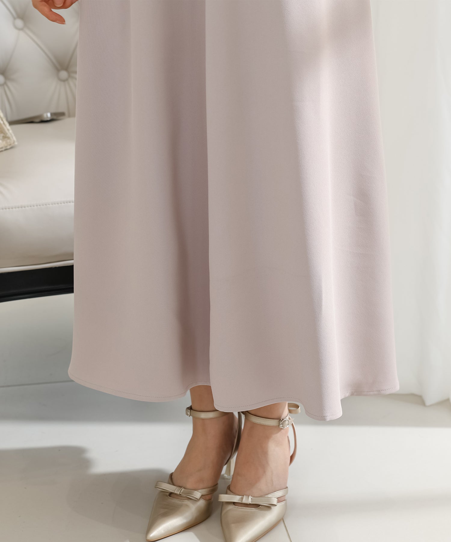 丸みのある裾デザインとフリル調のバックスタイルで、女性らしい佇まいに仕上げました。