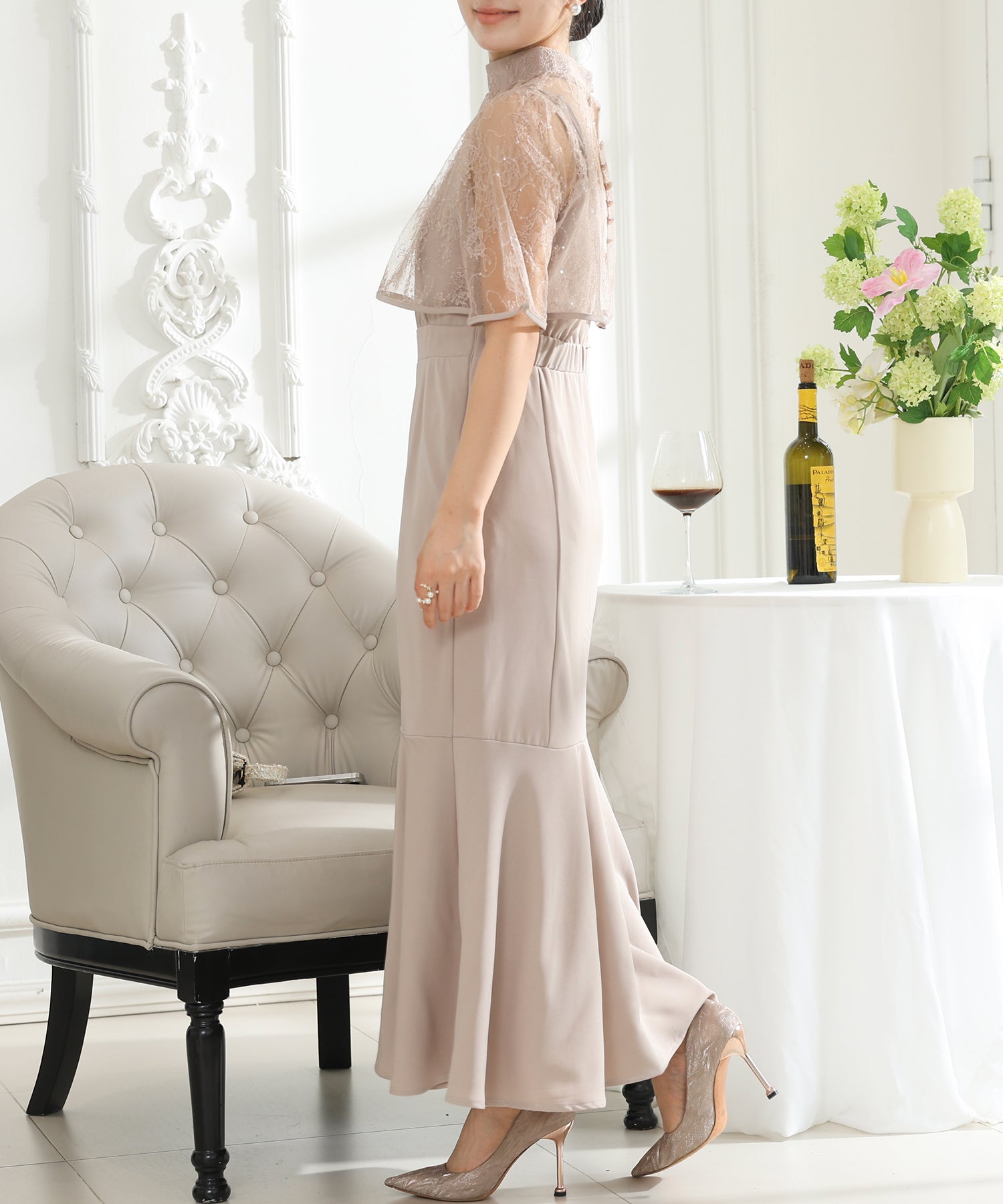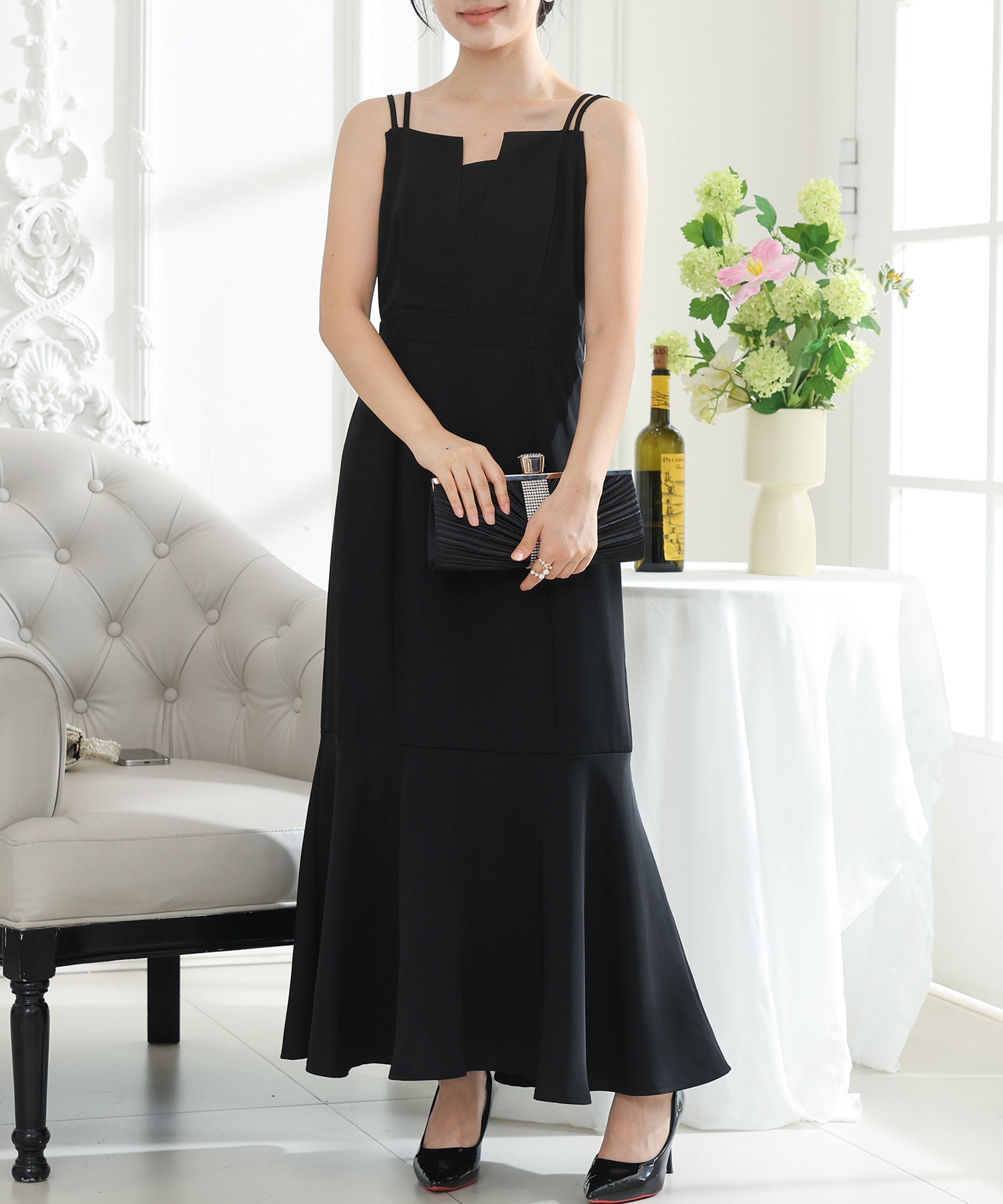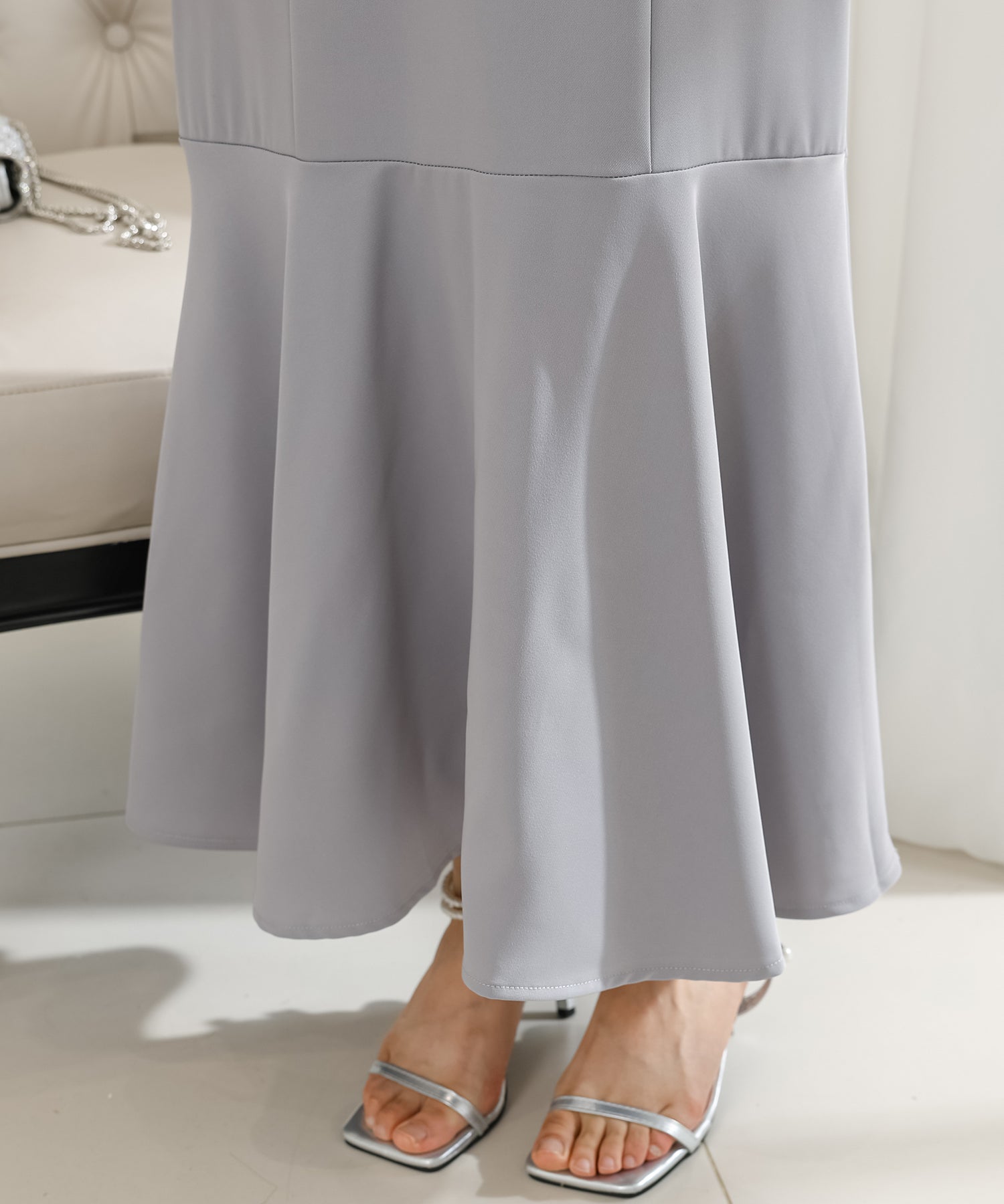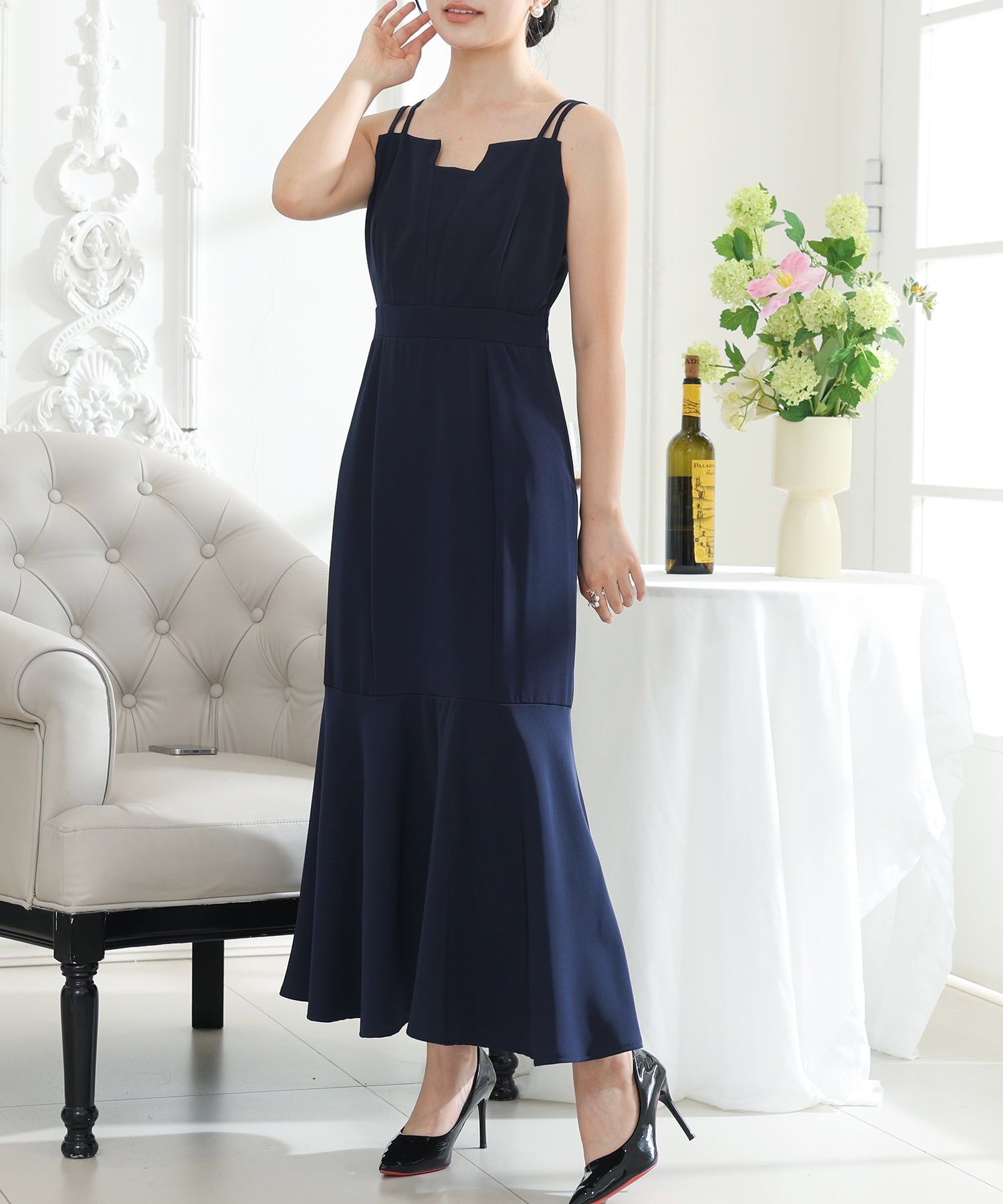 歩くたびにエレガントに揺れる、マーメイドスカートが印象的なワンピース。