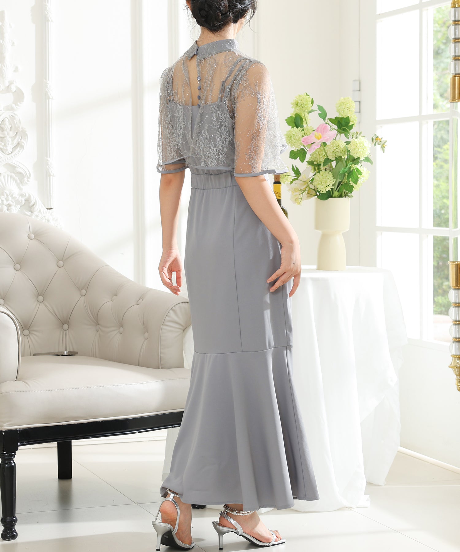 【2点セット】 レース ボレロ付き Vスリット キャミソール マーメイド ワンピース