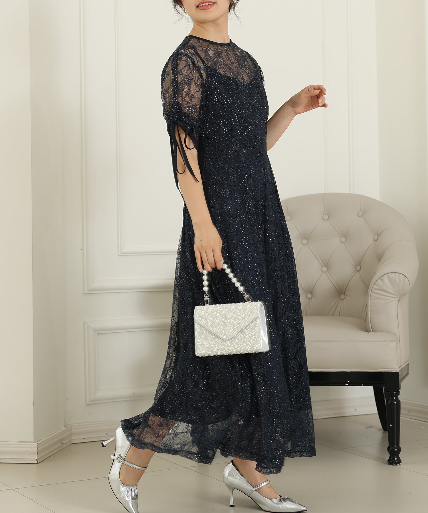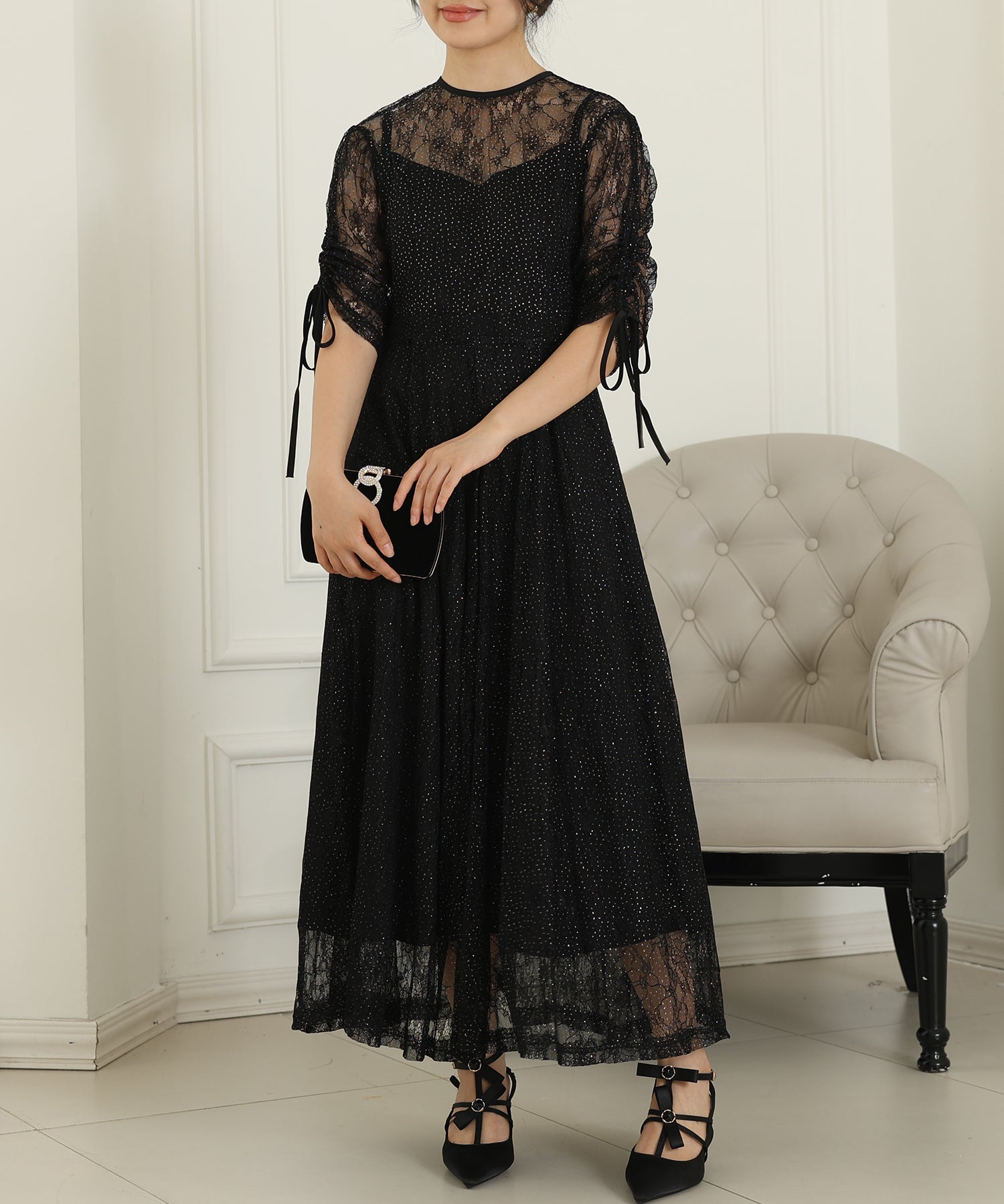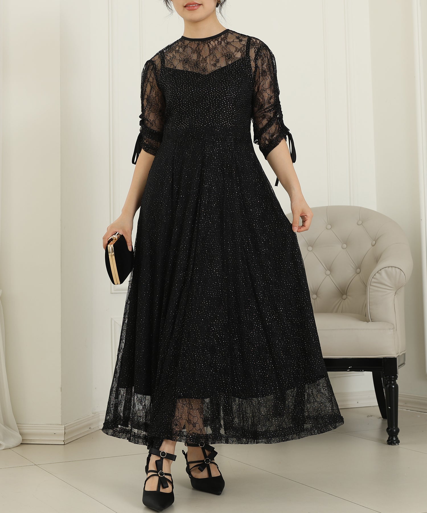 レース スパンコール ドッキング キャンディスリーブ ドレス