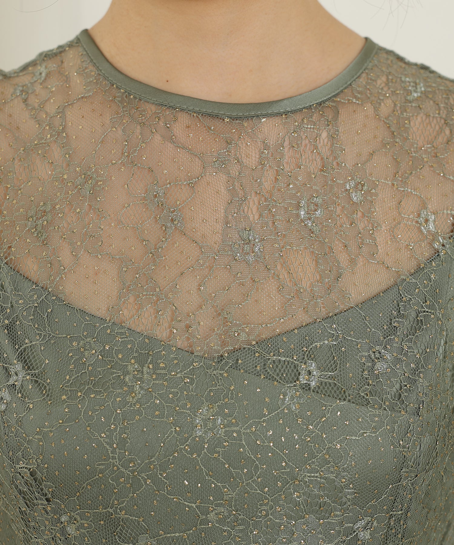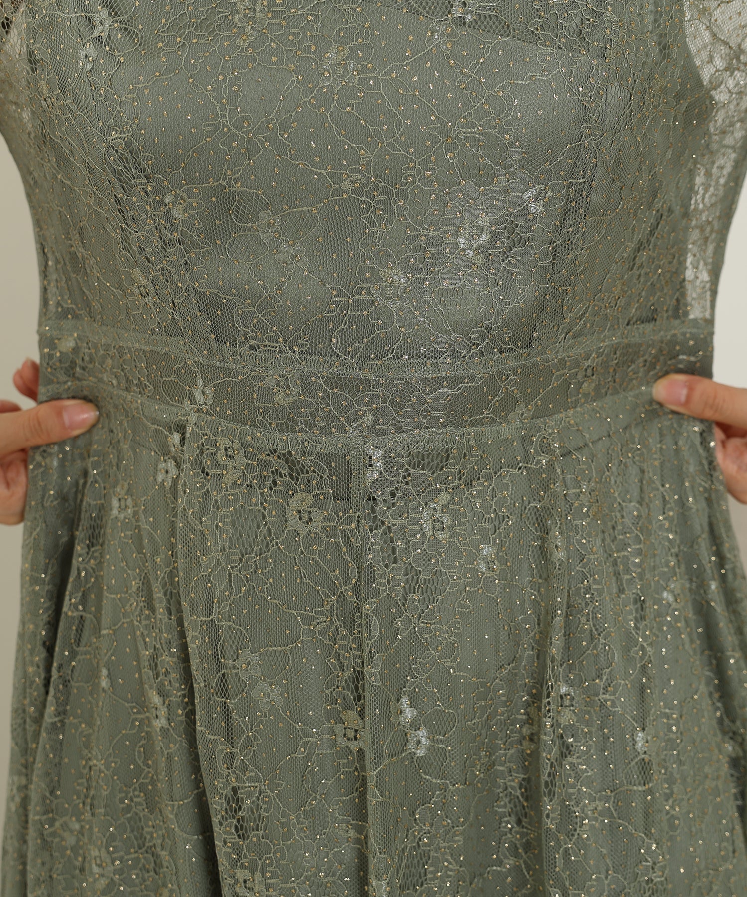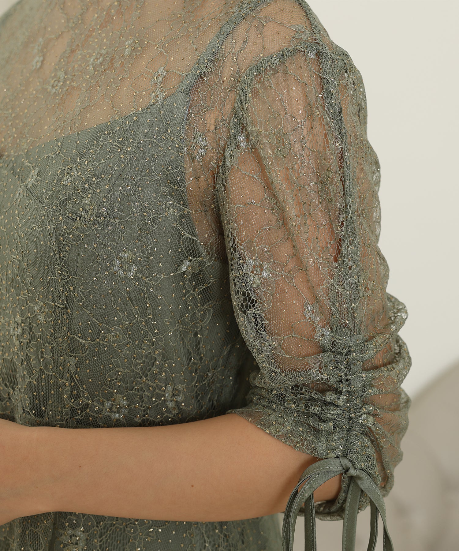 レース スパンコール ドッキング キャンディスリーブ ドレス