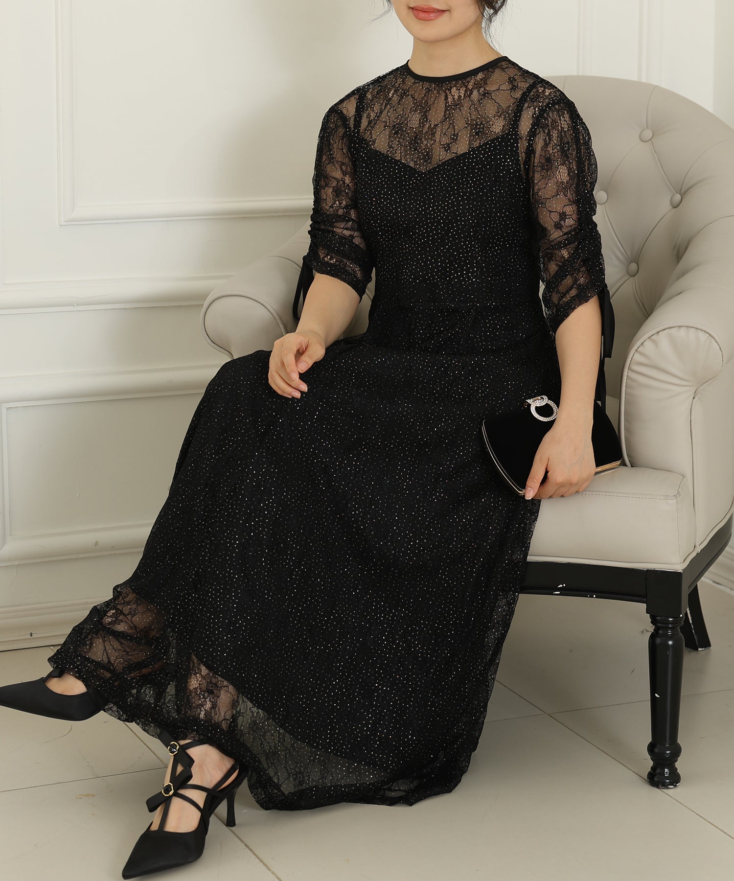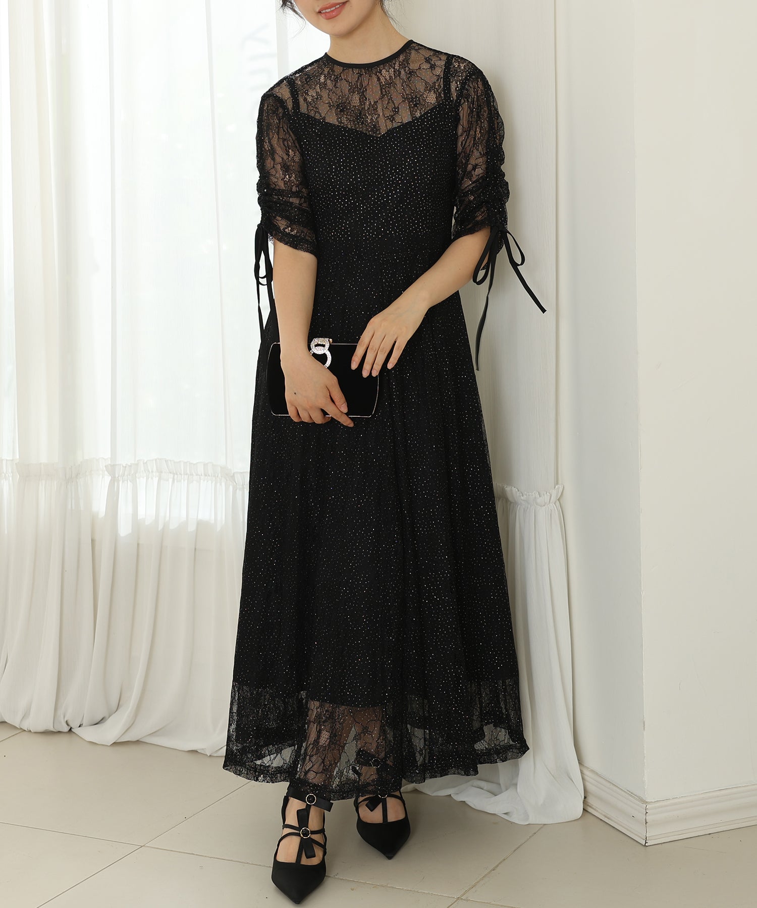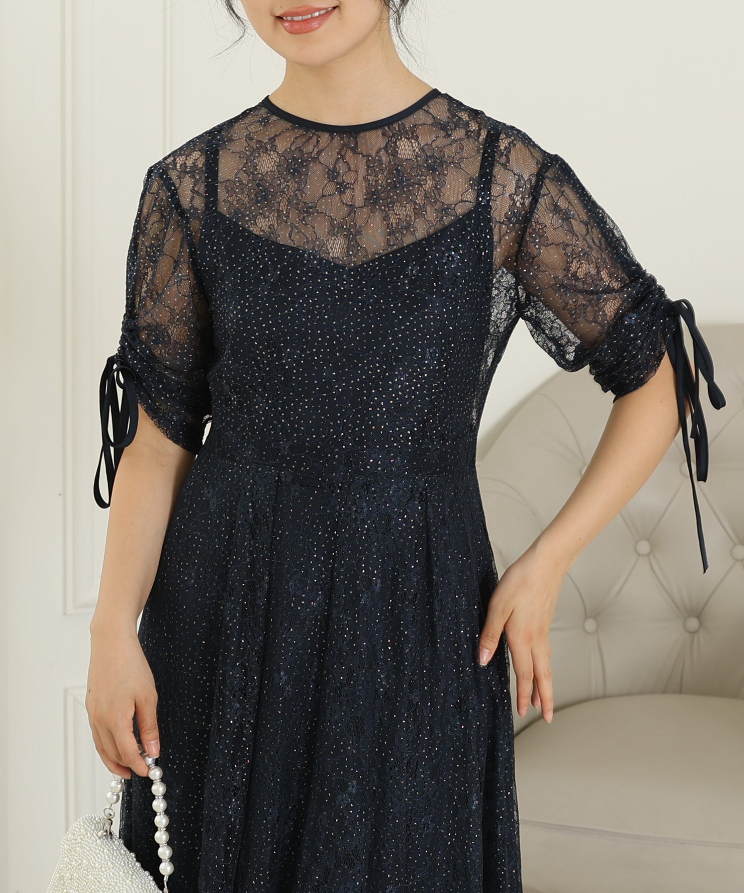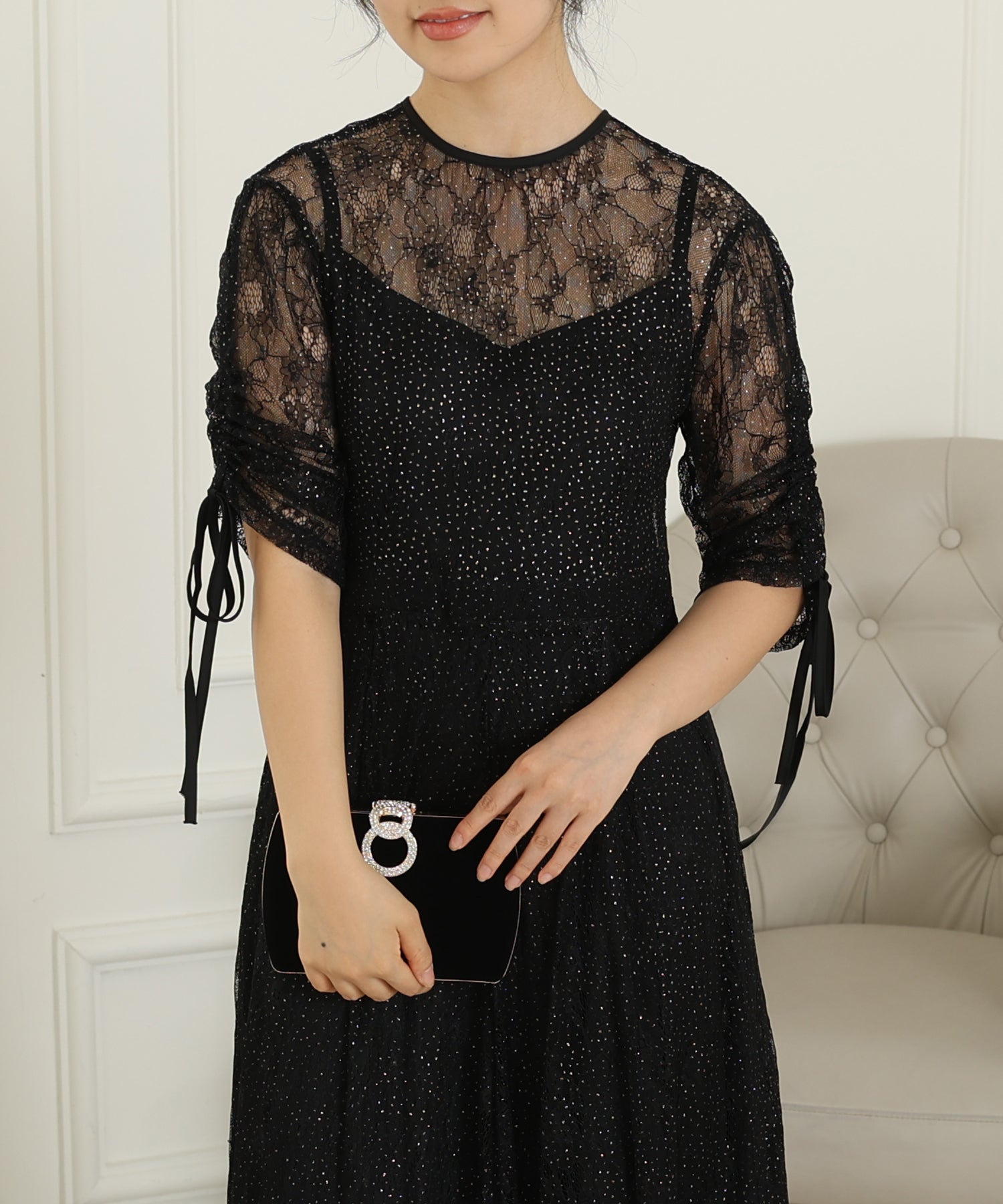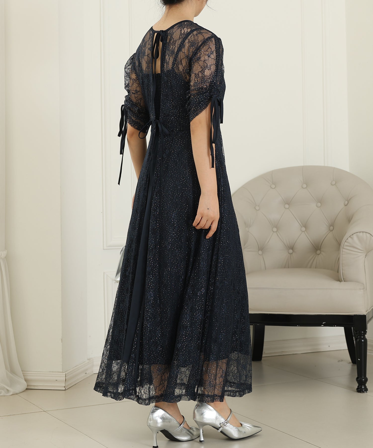 2way バックコンシャス レース 袖リボン レイヤード ドレス