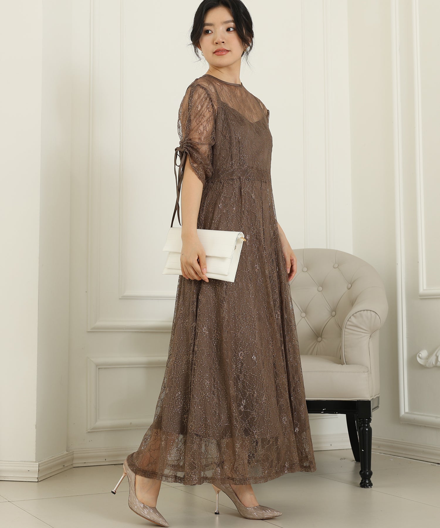 レイヤードデザインで着映える、美しいシルエットが自慢のロングドレス。