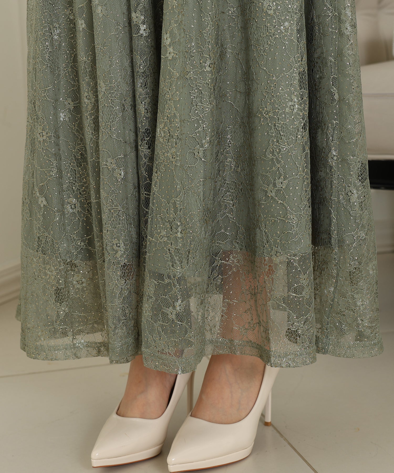 チュールフリル シアー 切り替え フレア ロング ドレス