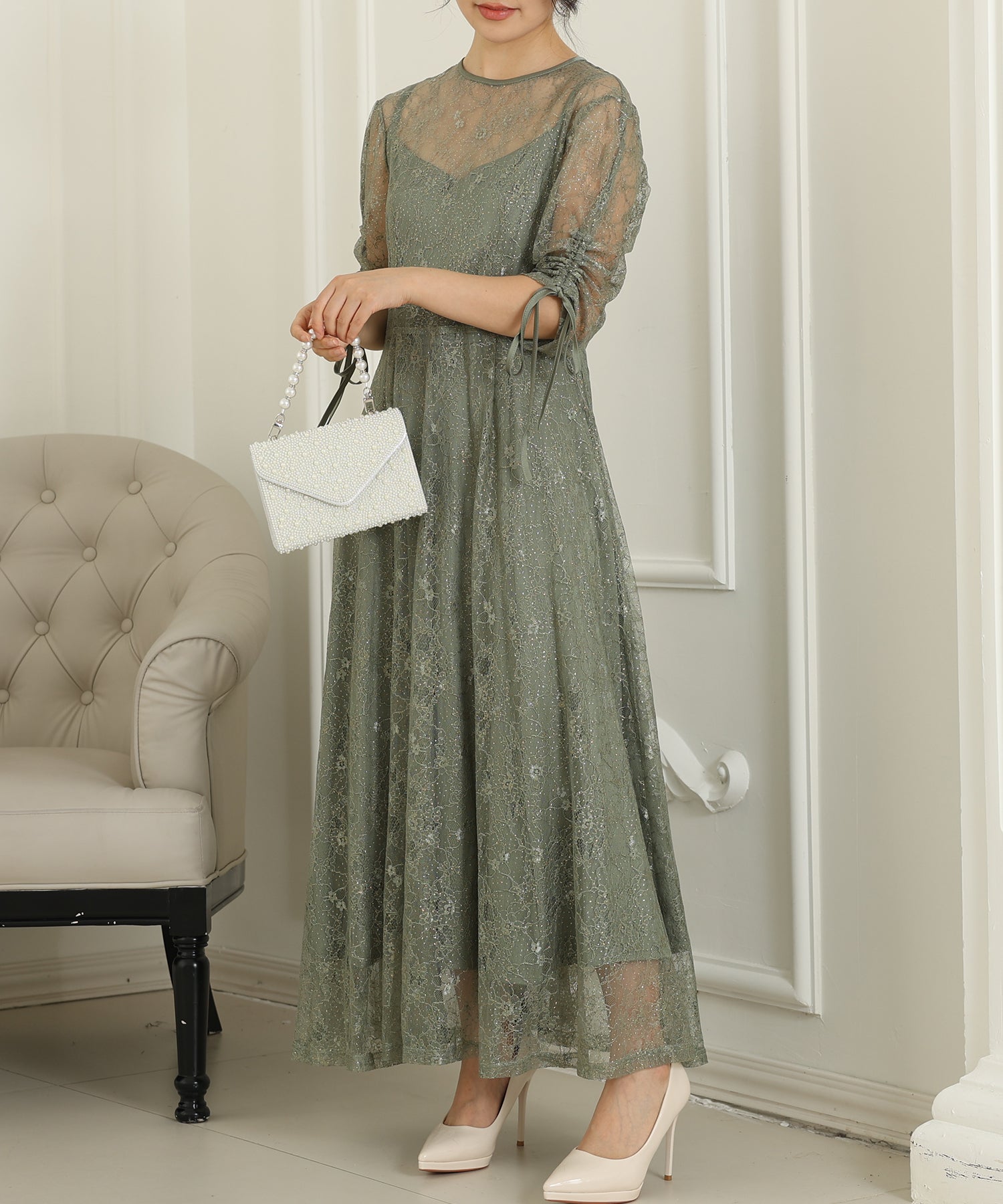 ボタニカル柄 ジャガード シアー レイヤード ロング ドレス