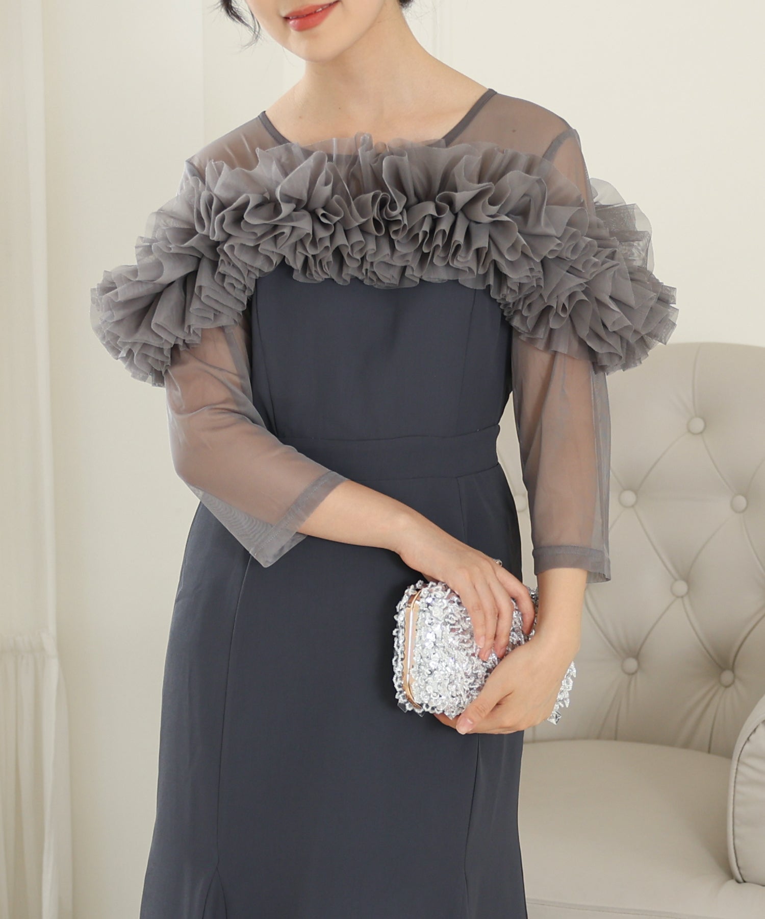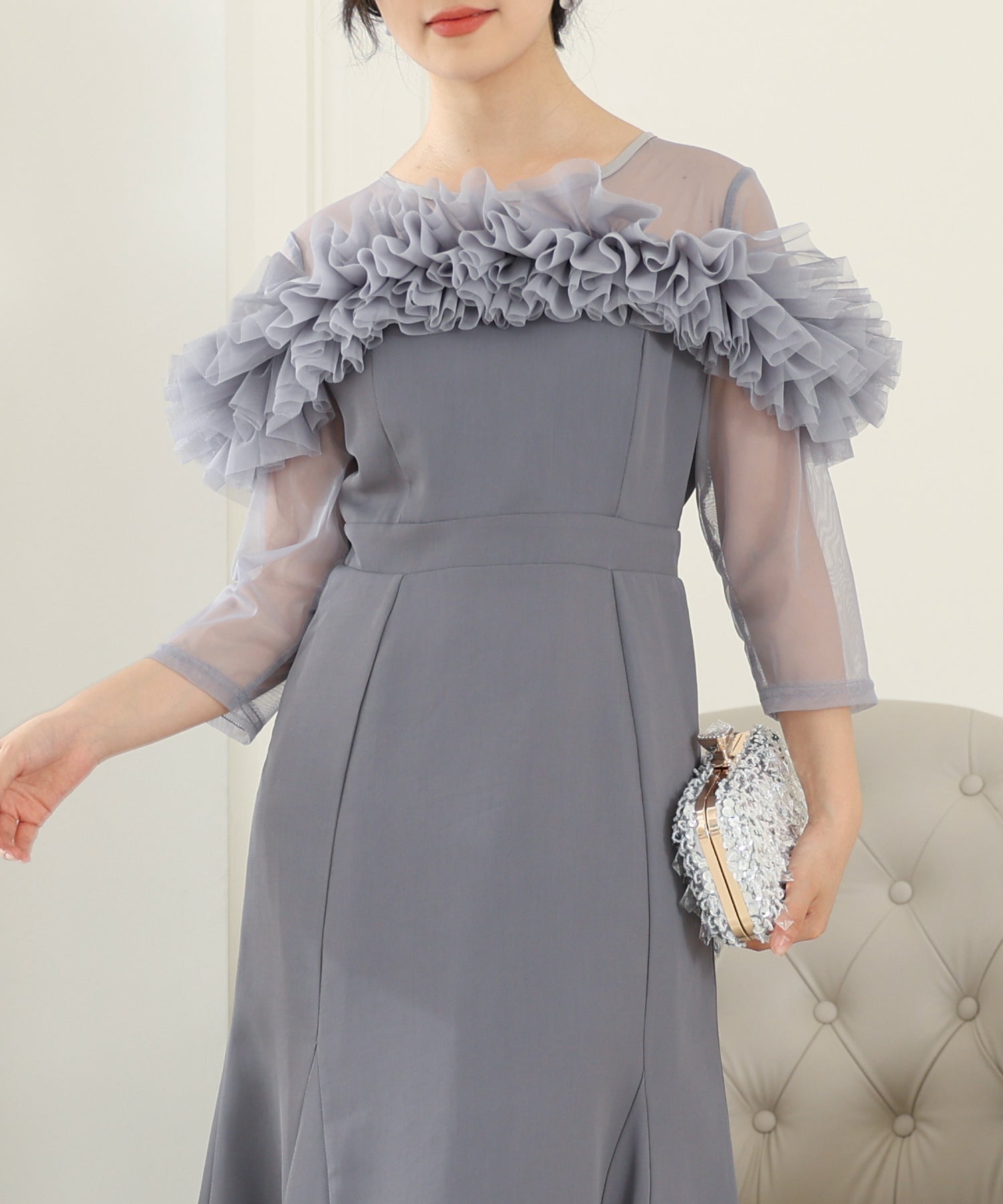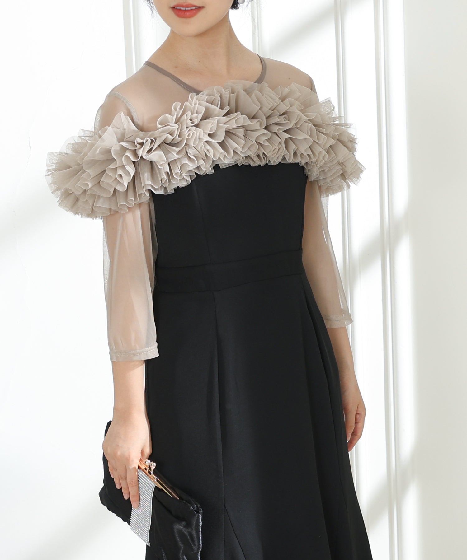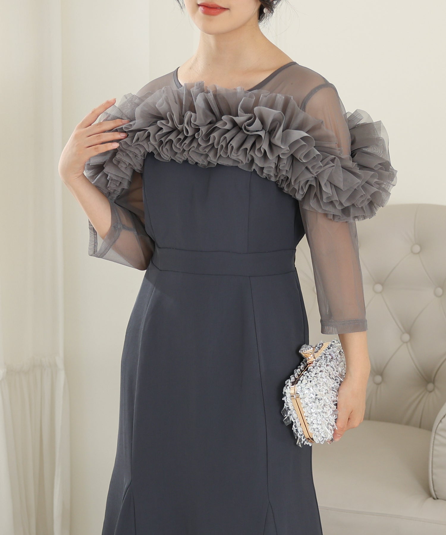 チュールフリルが華やぐパーティーシーンにピッタリのドレス。