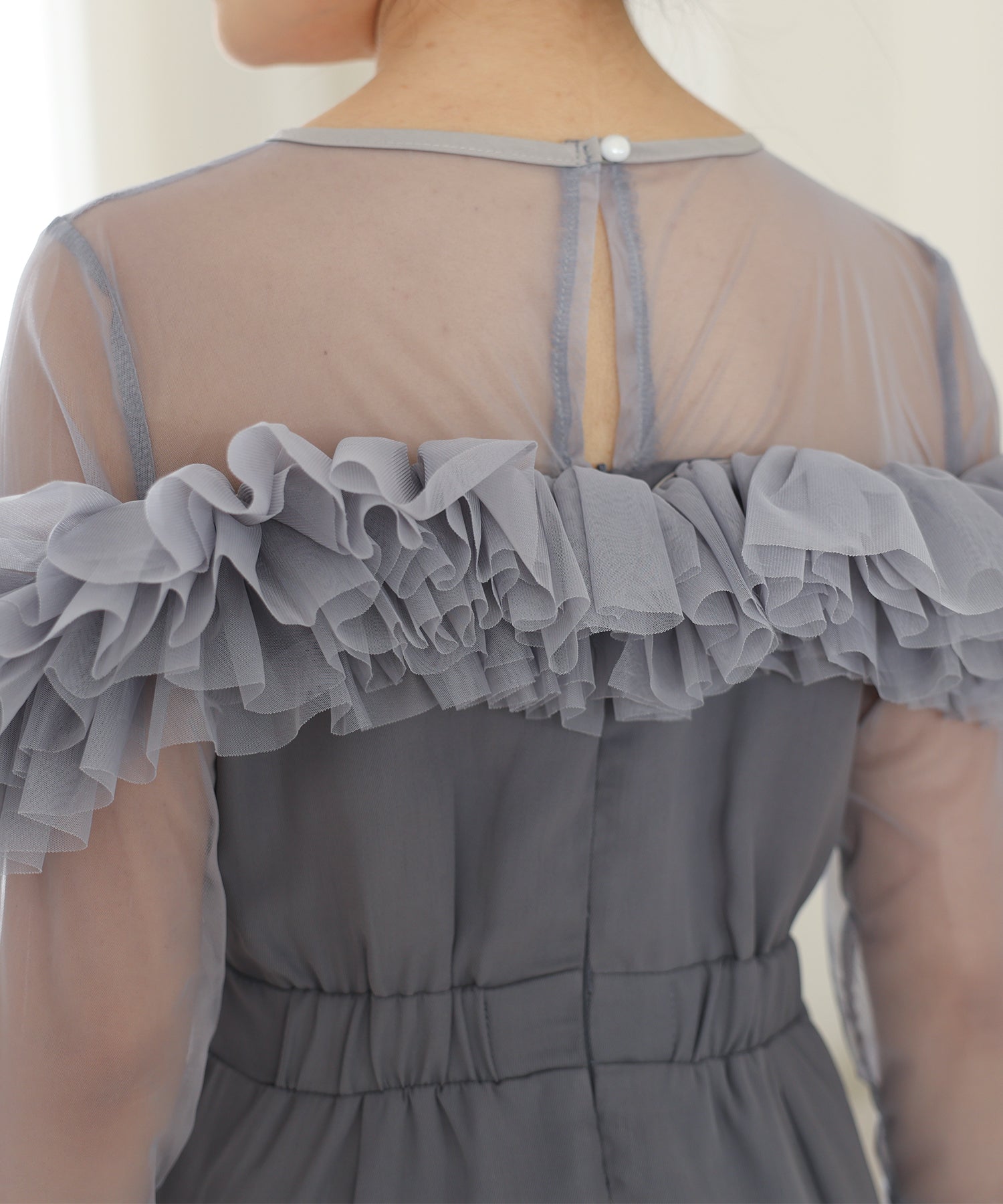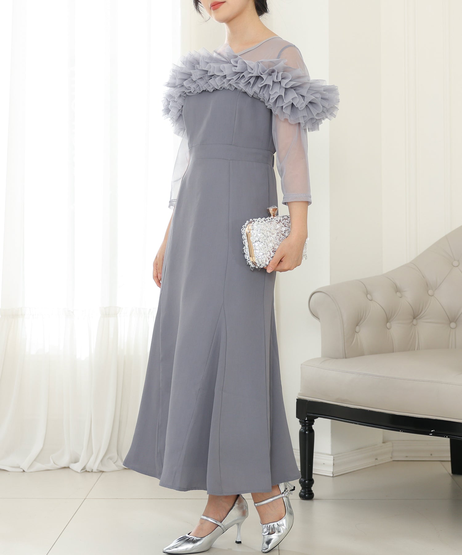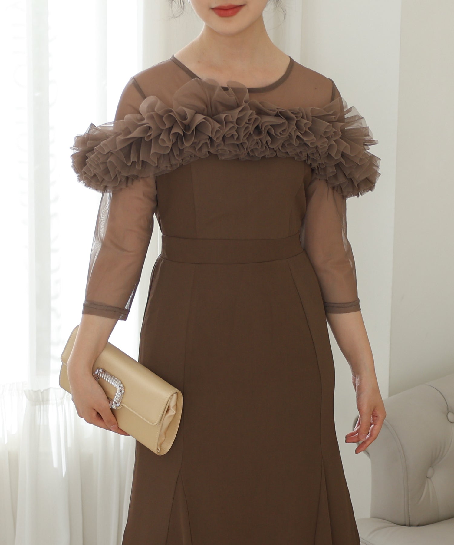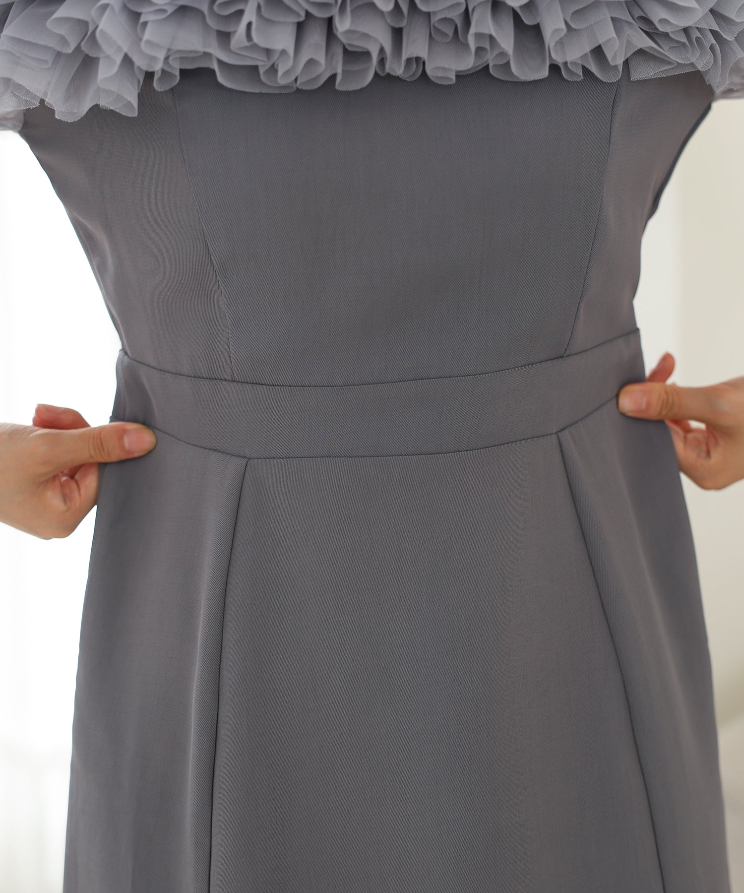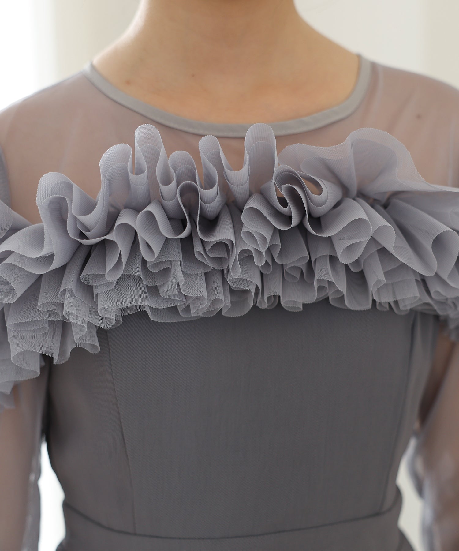 チュールフリルが華やぐパーティーシーンにピッタリのドレス。