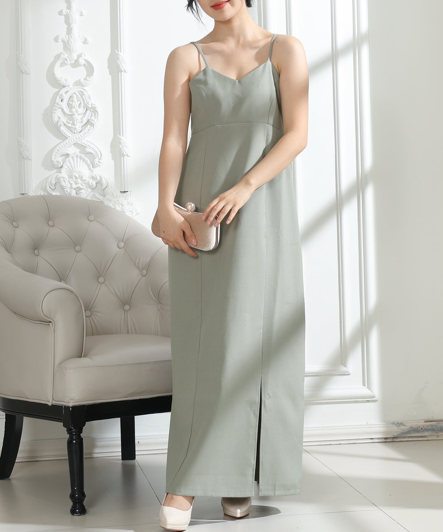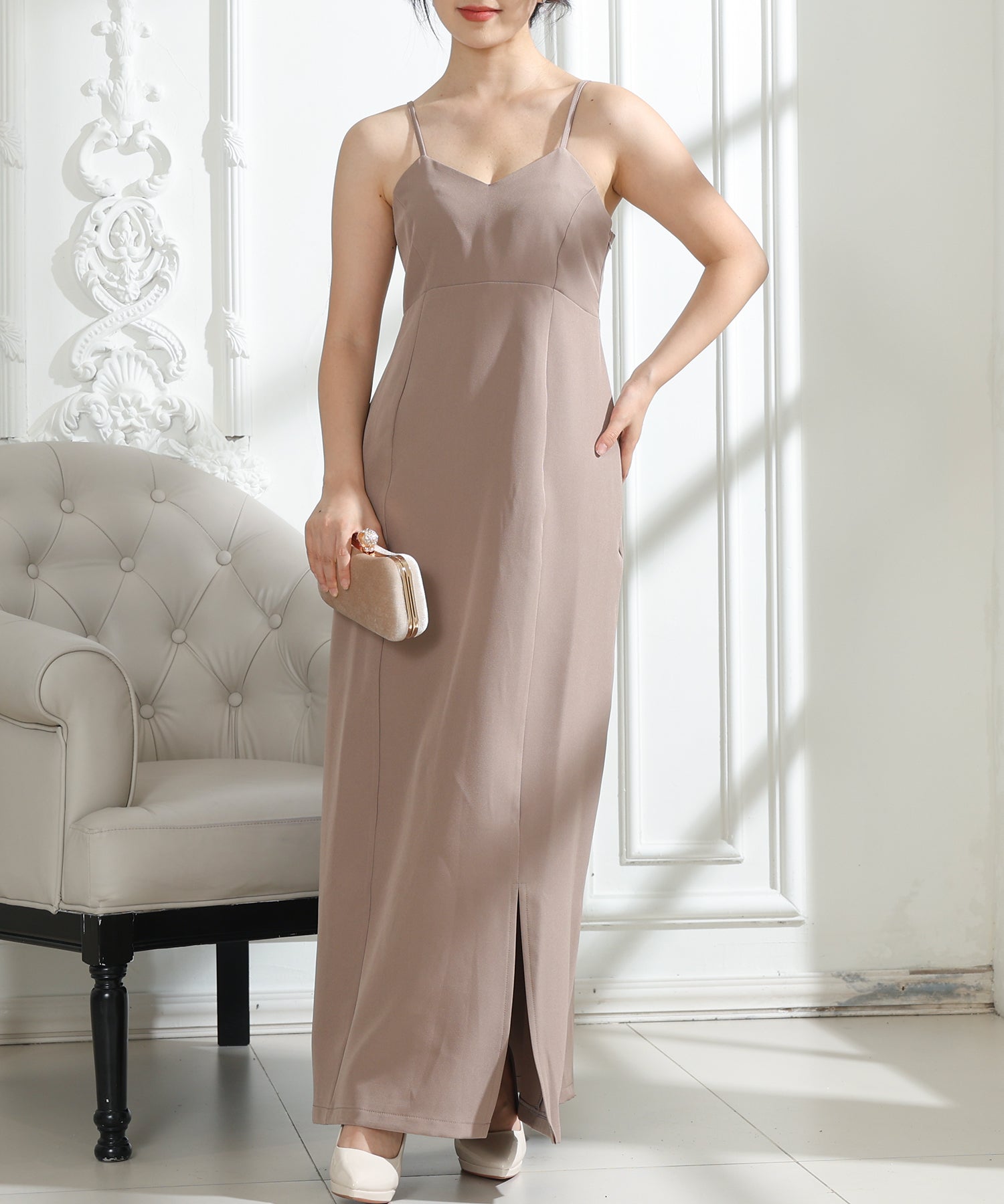 縦長シルエットが美しい、エレガントなパーティードレス。