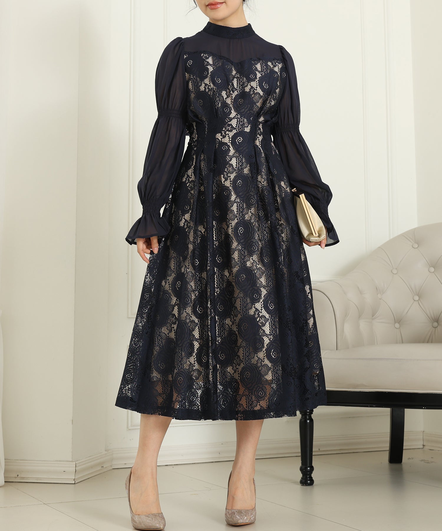 フラワーレースが大人のエレガンスを叶えるパーティードレス。