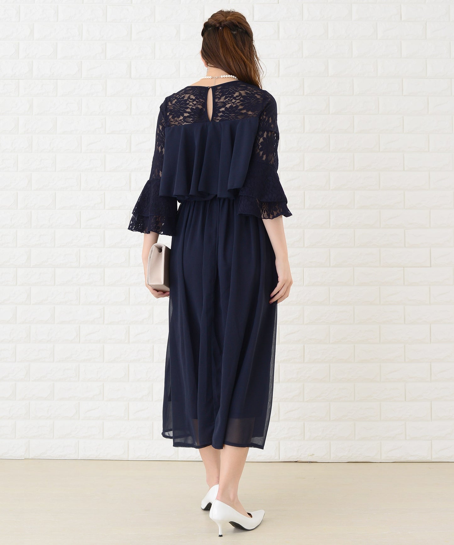 総レースの袖が華やかな印象を与えます