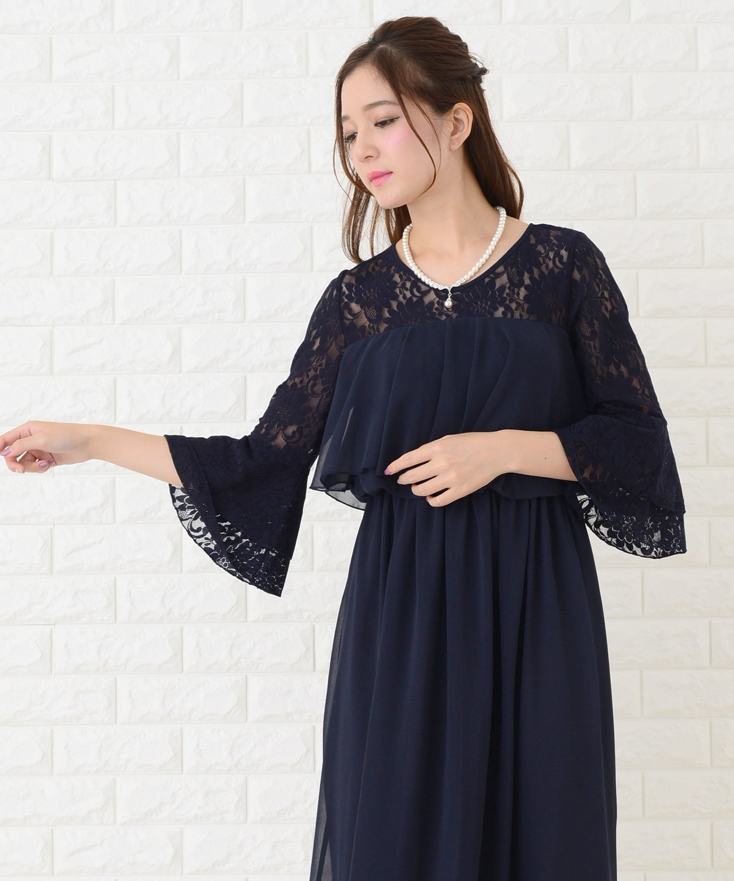 七分丈レース袖でキレイに二の腕カバー