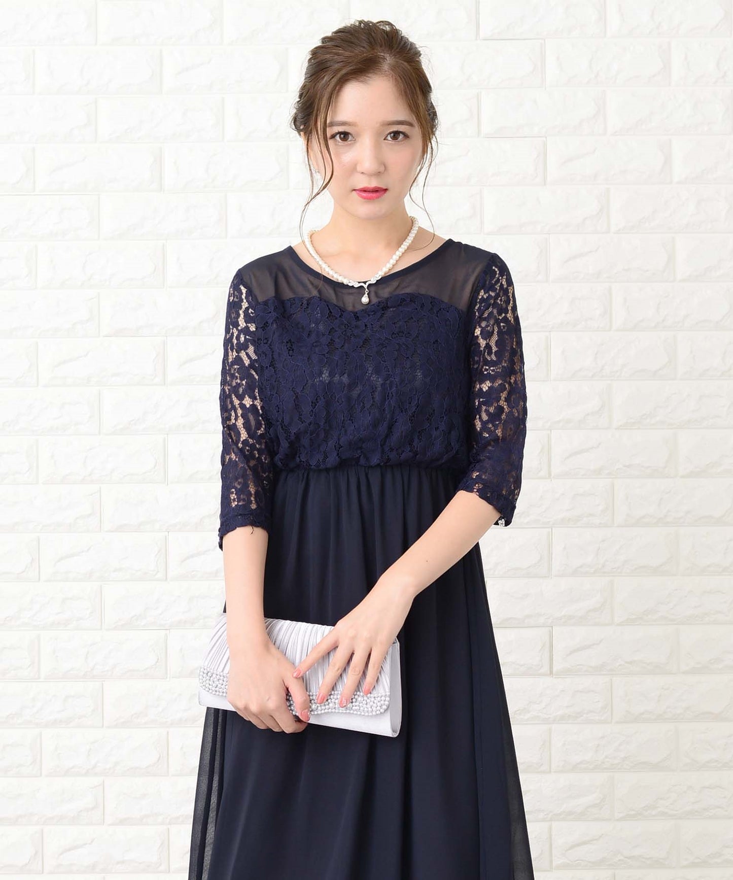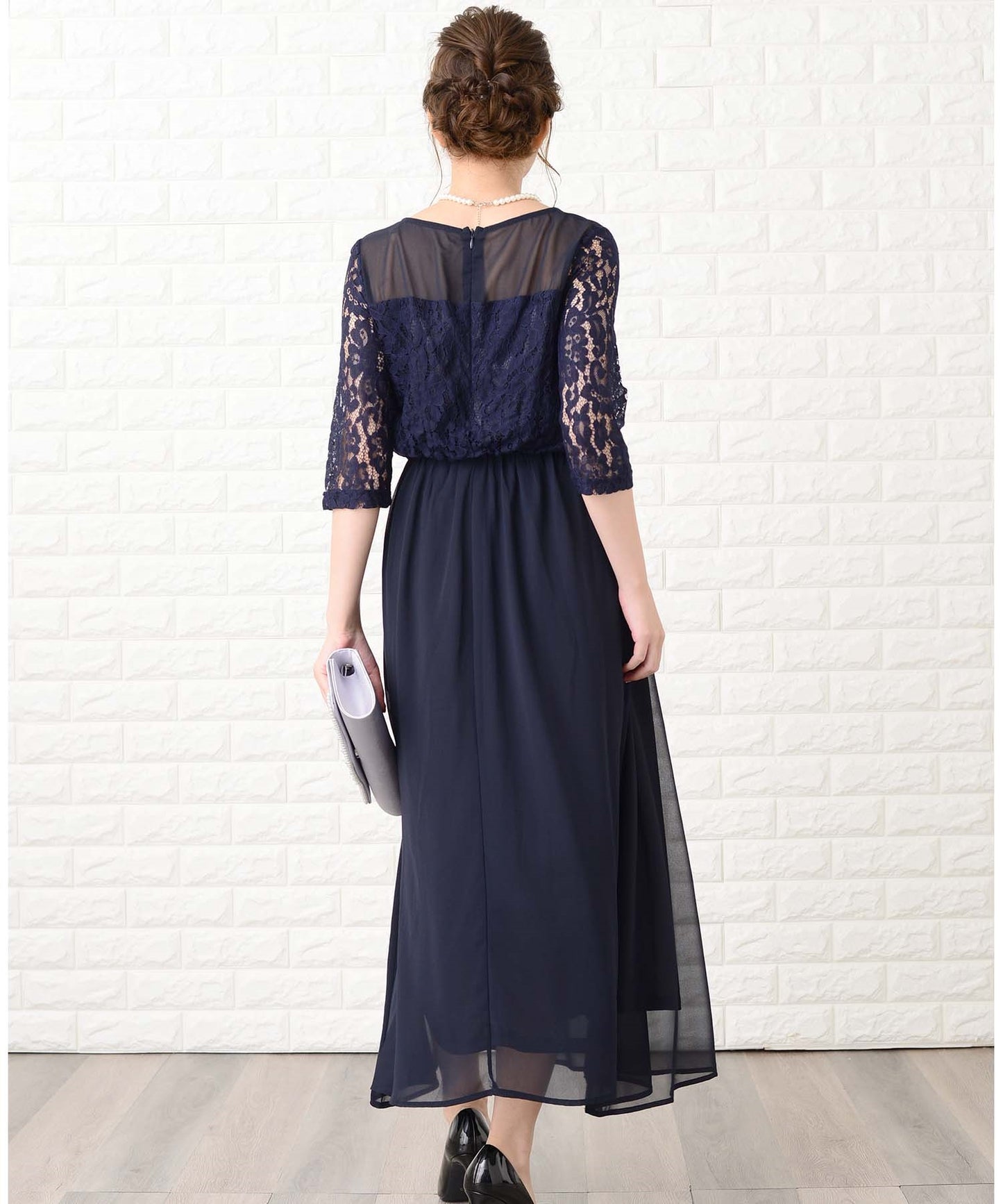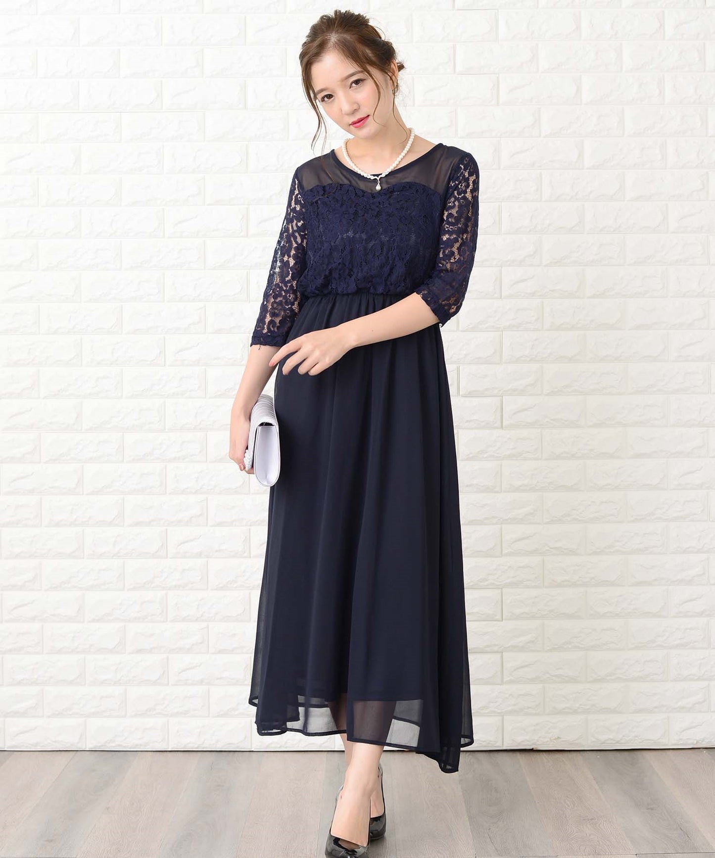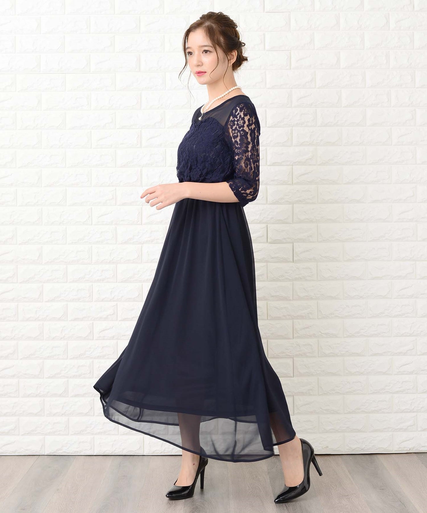 レース切り替え七分袖フォーマルワンピース・ドレス