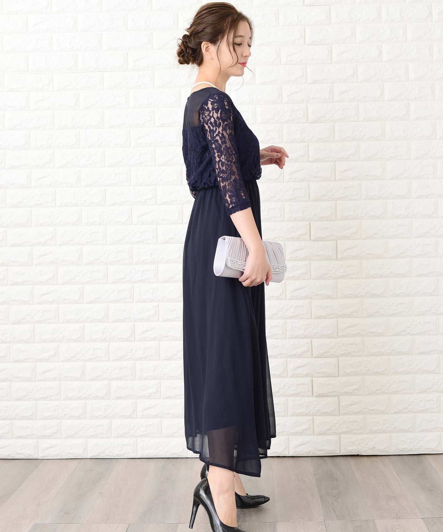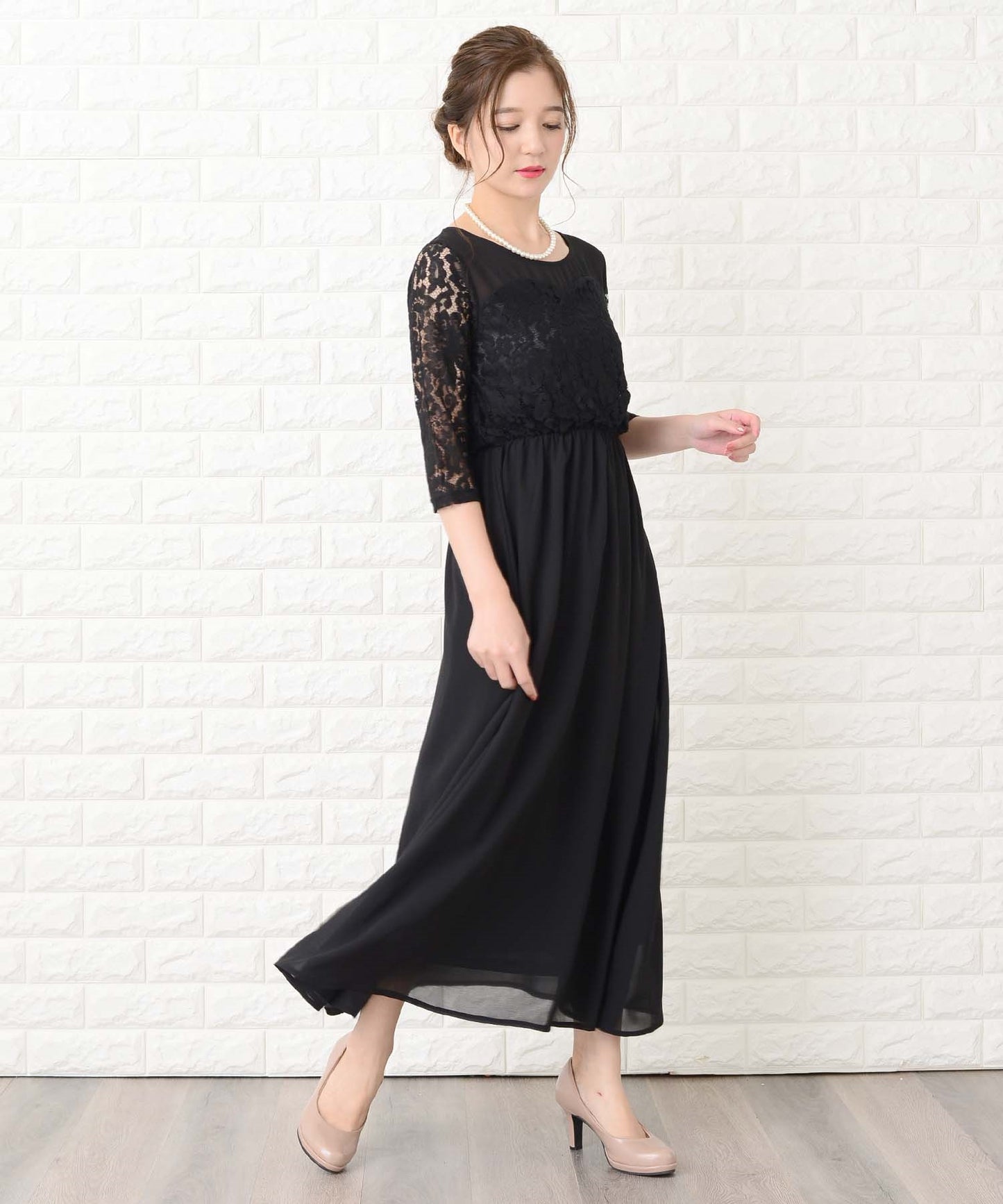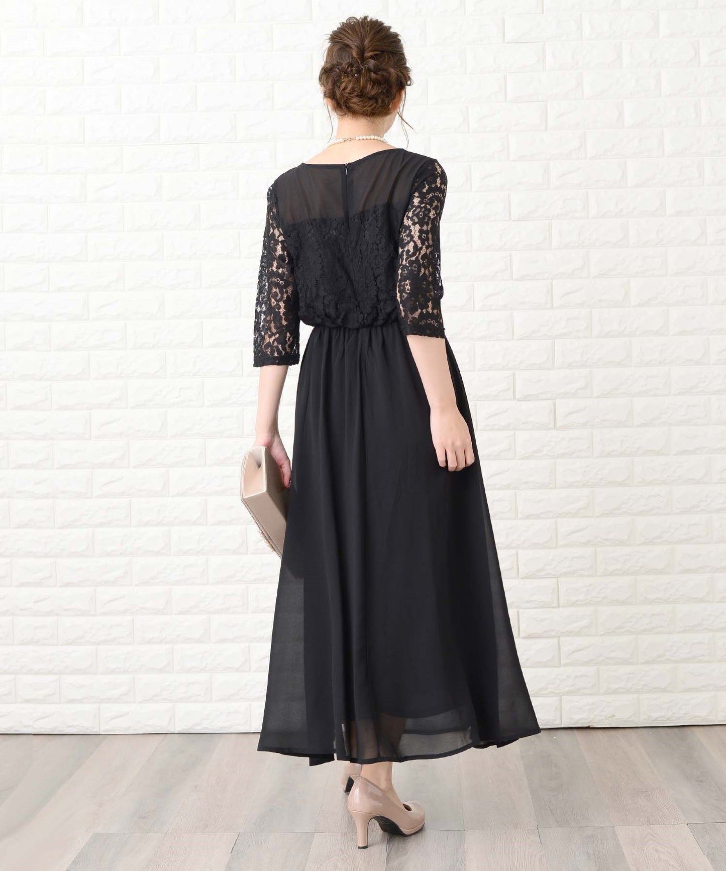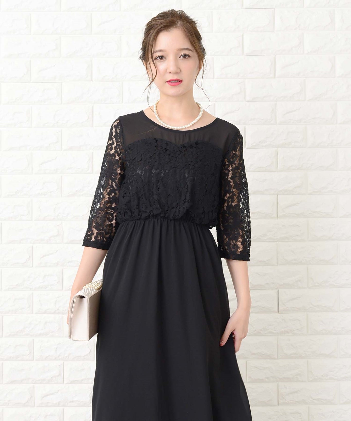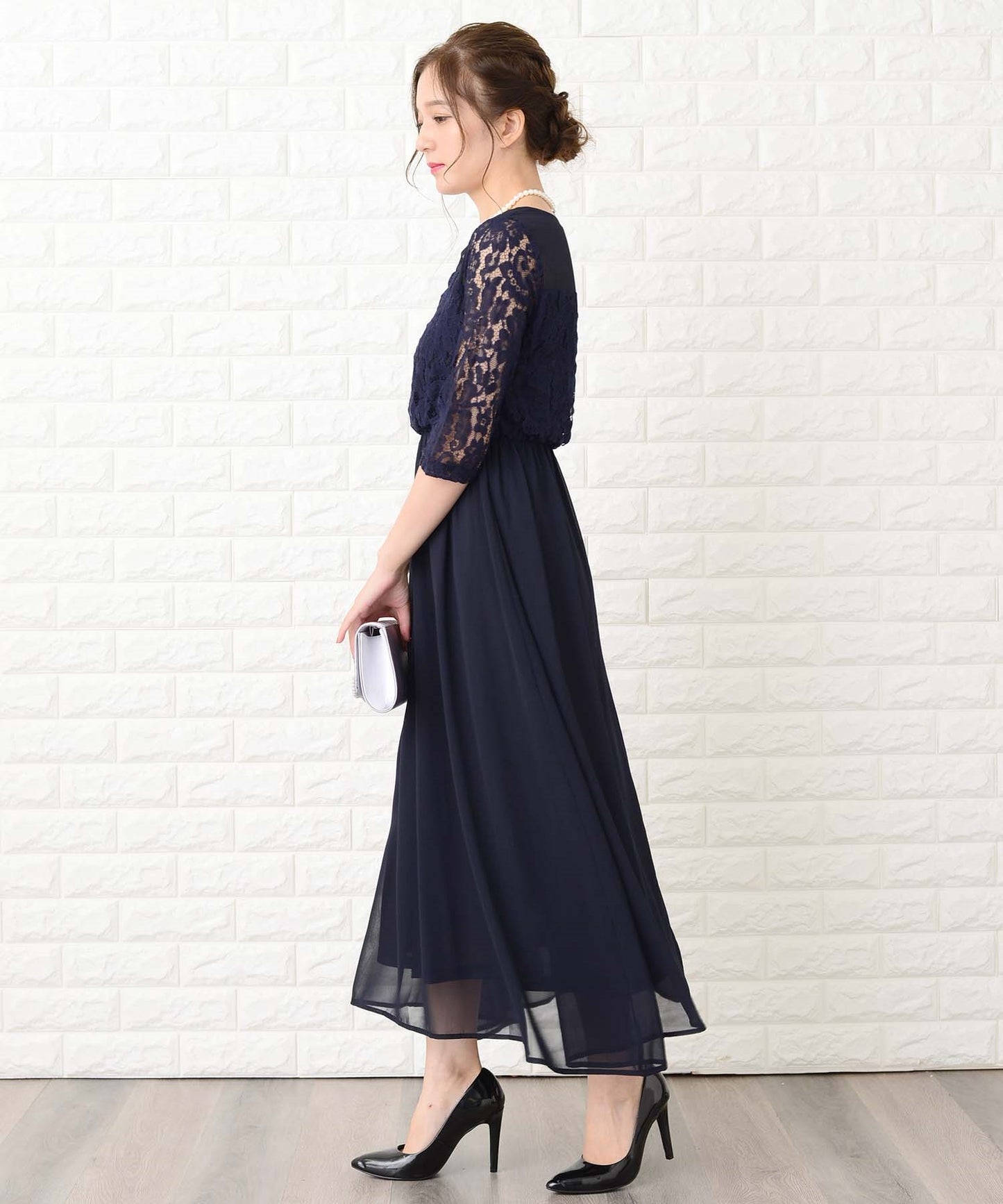 レース切り替え七分袖フォーマルワンピース・ドレス