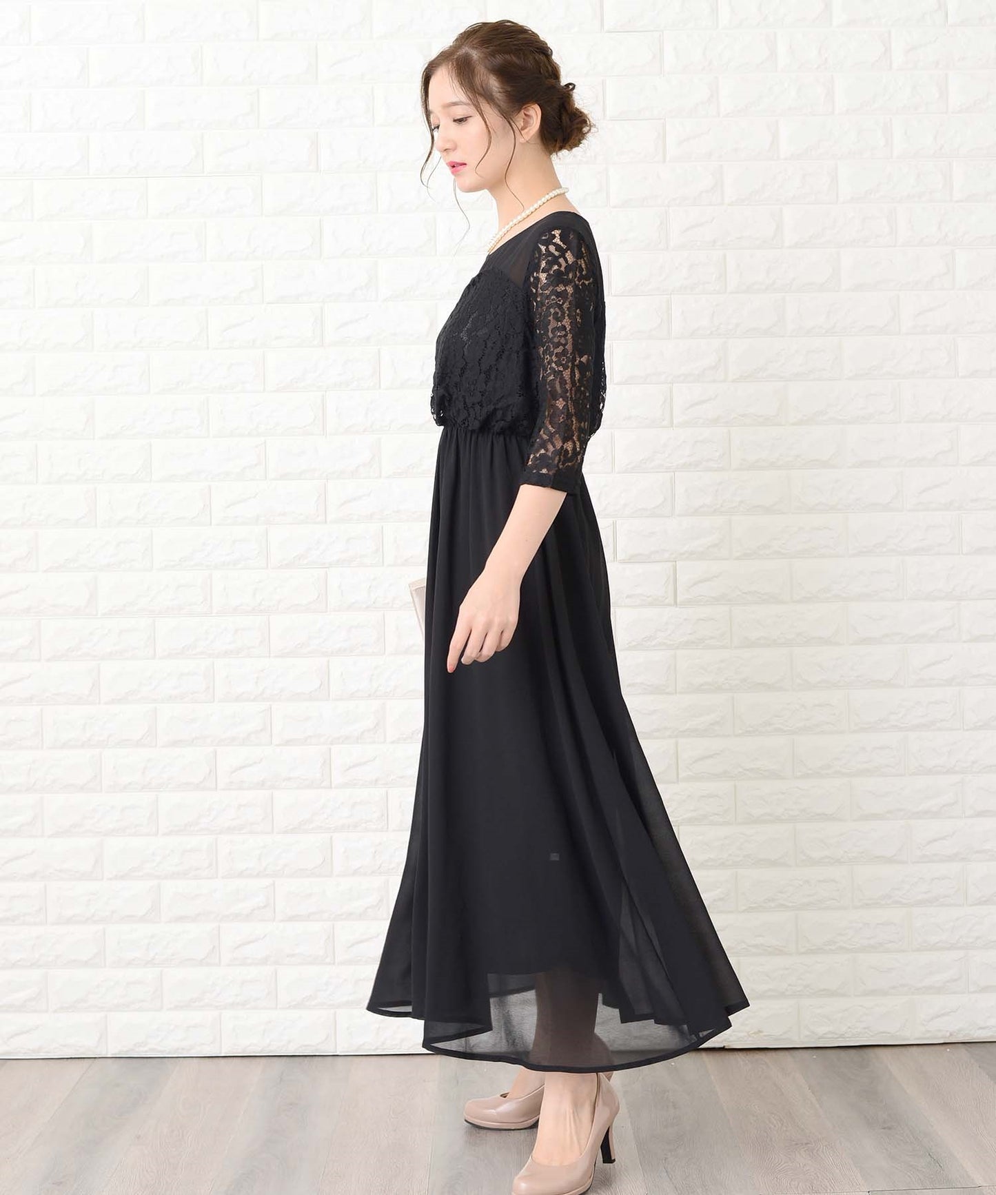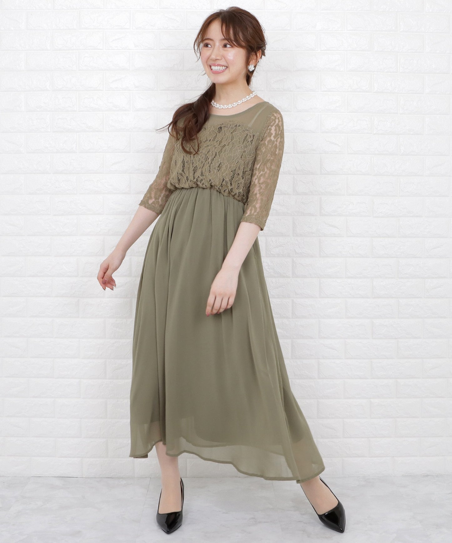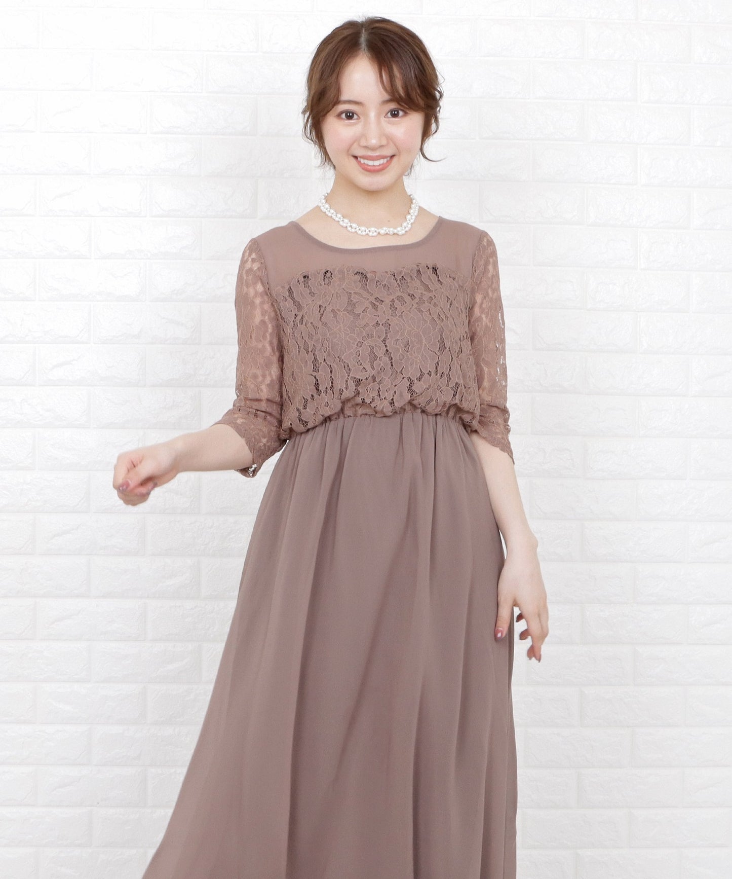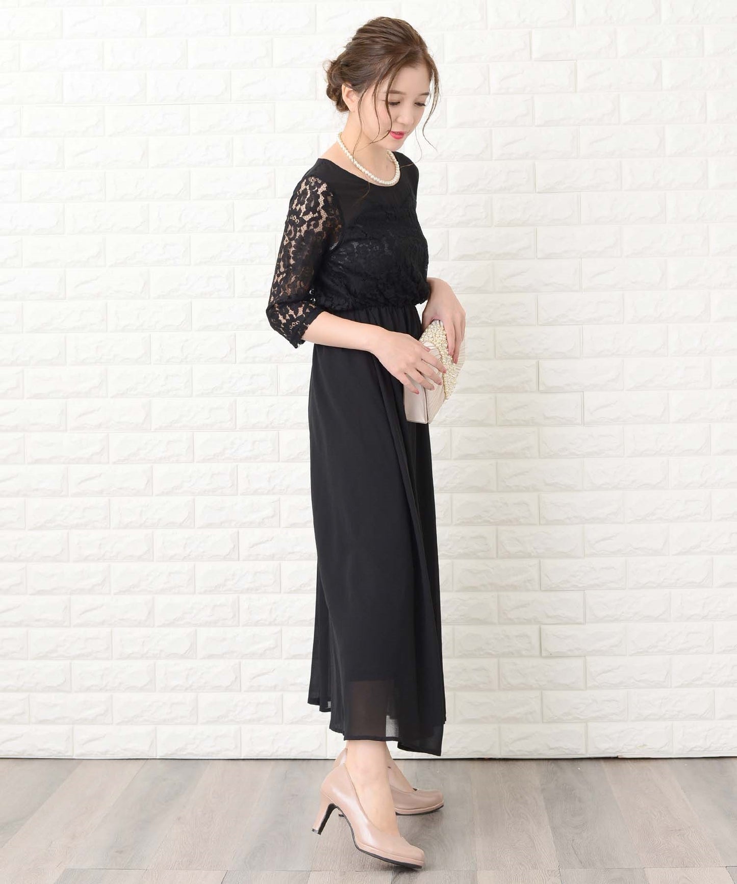 レース切り替え七分袖フォーマルワンピース・ドレス