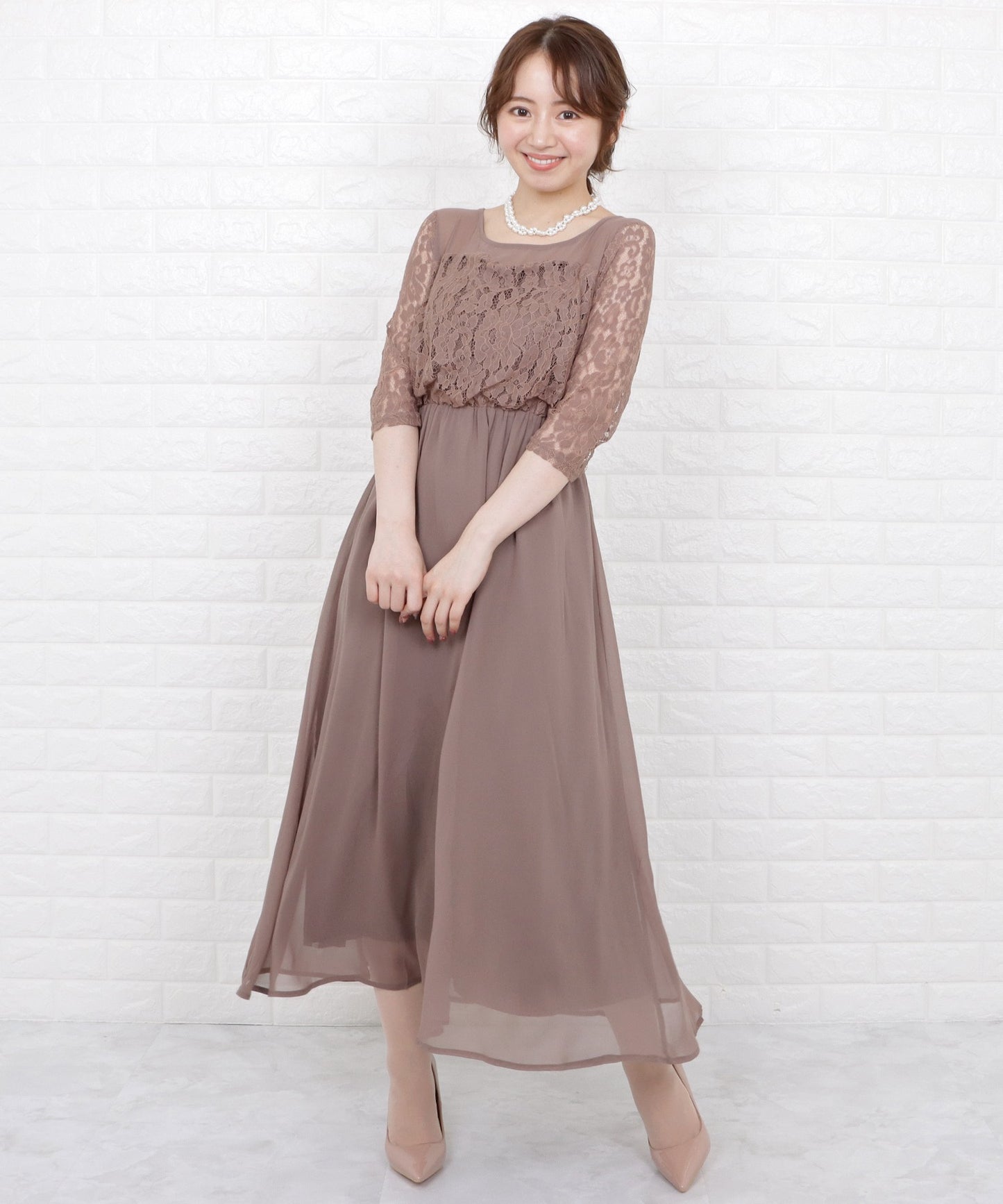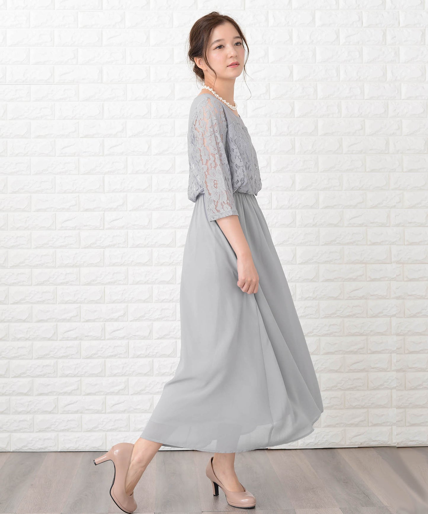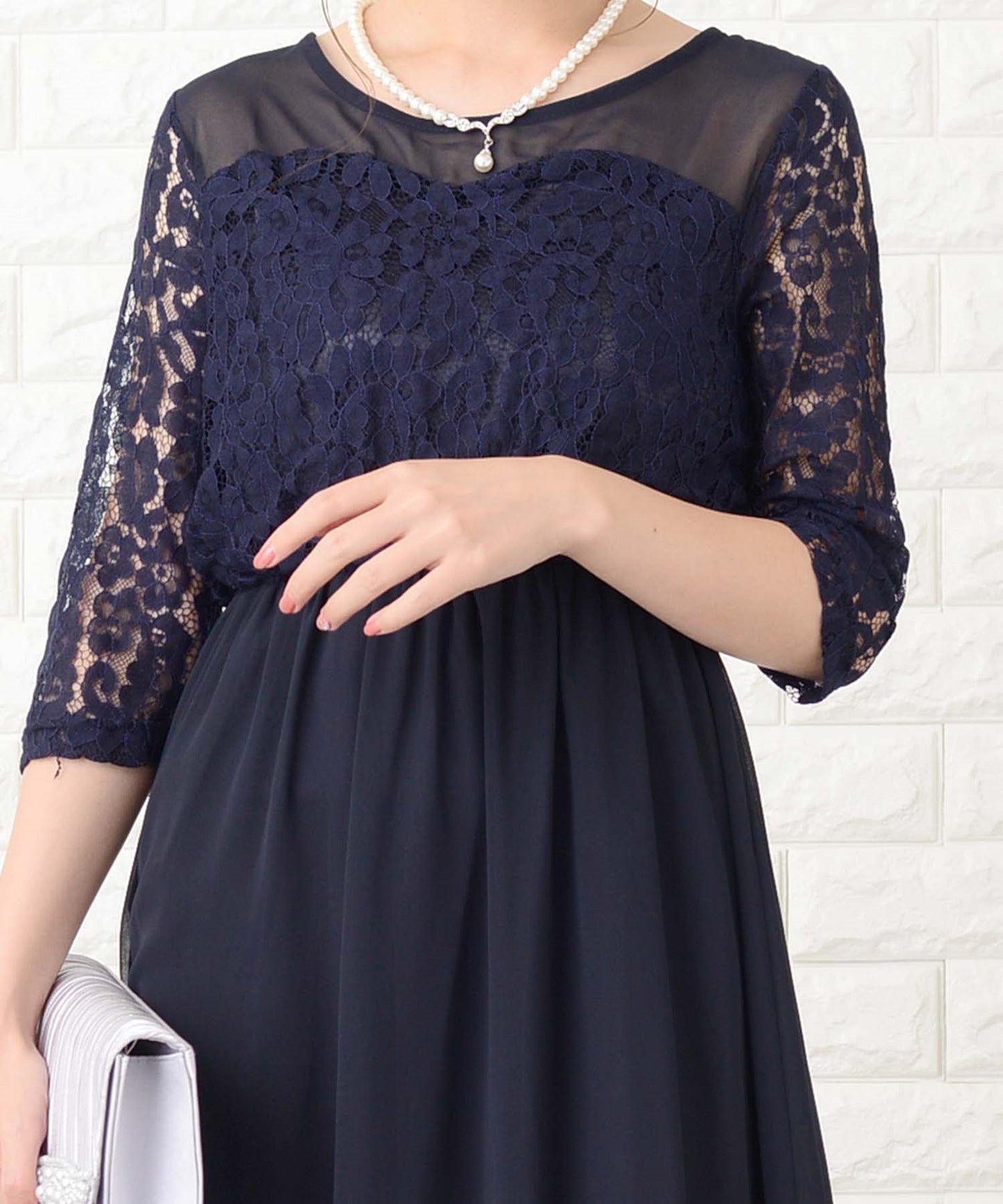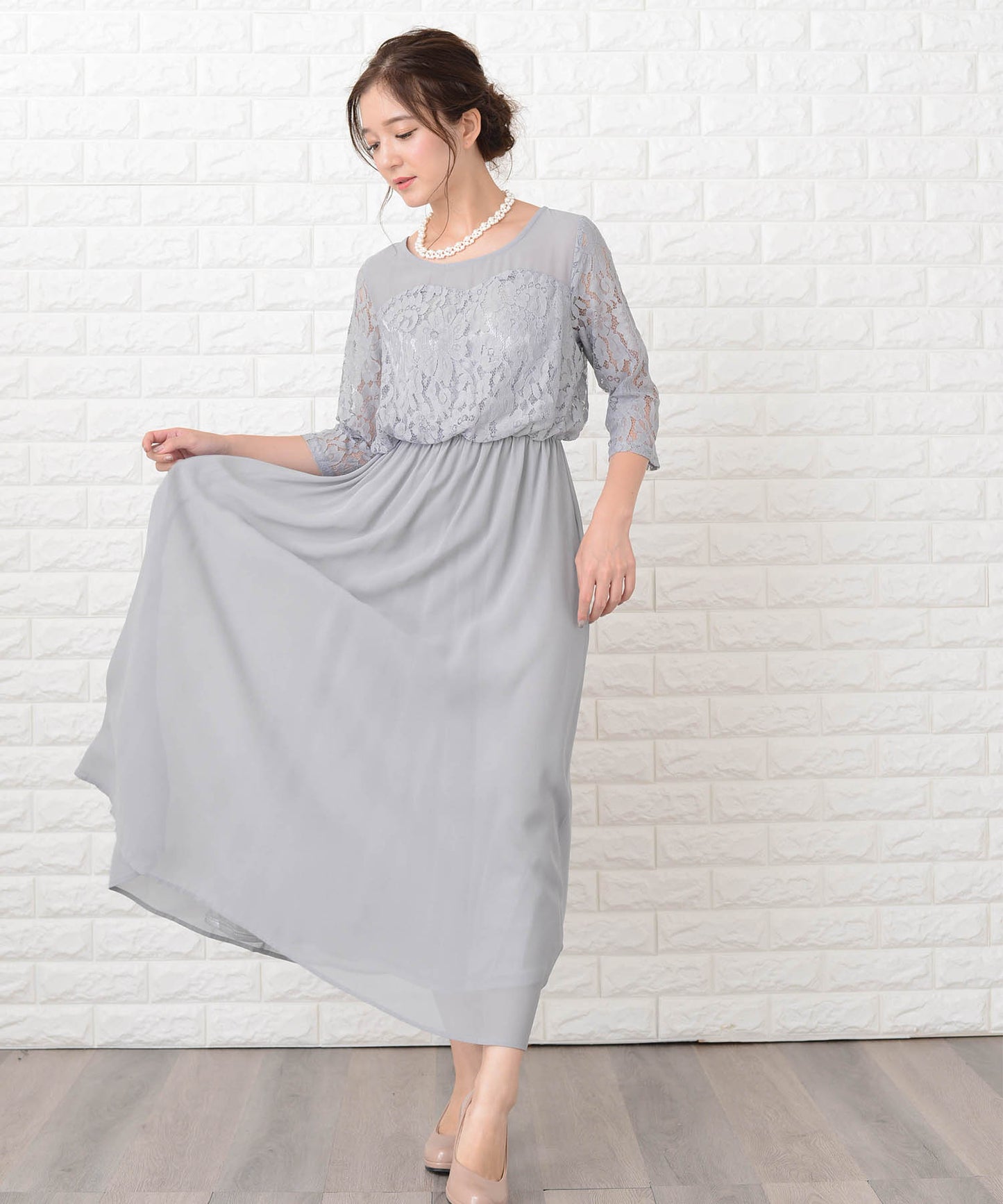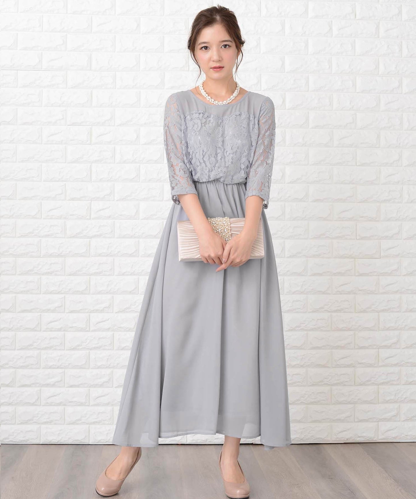 レース切り替え七分袖フォーマルワンピース・ドレス