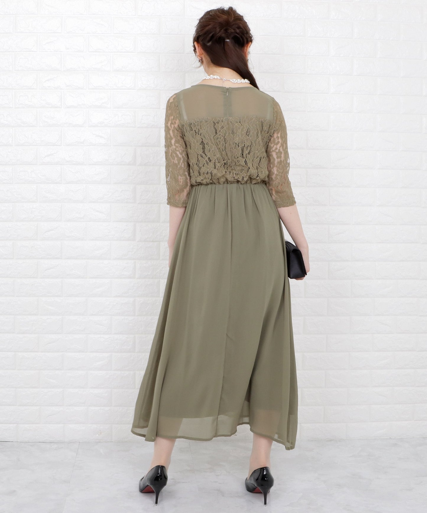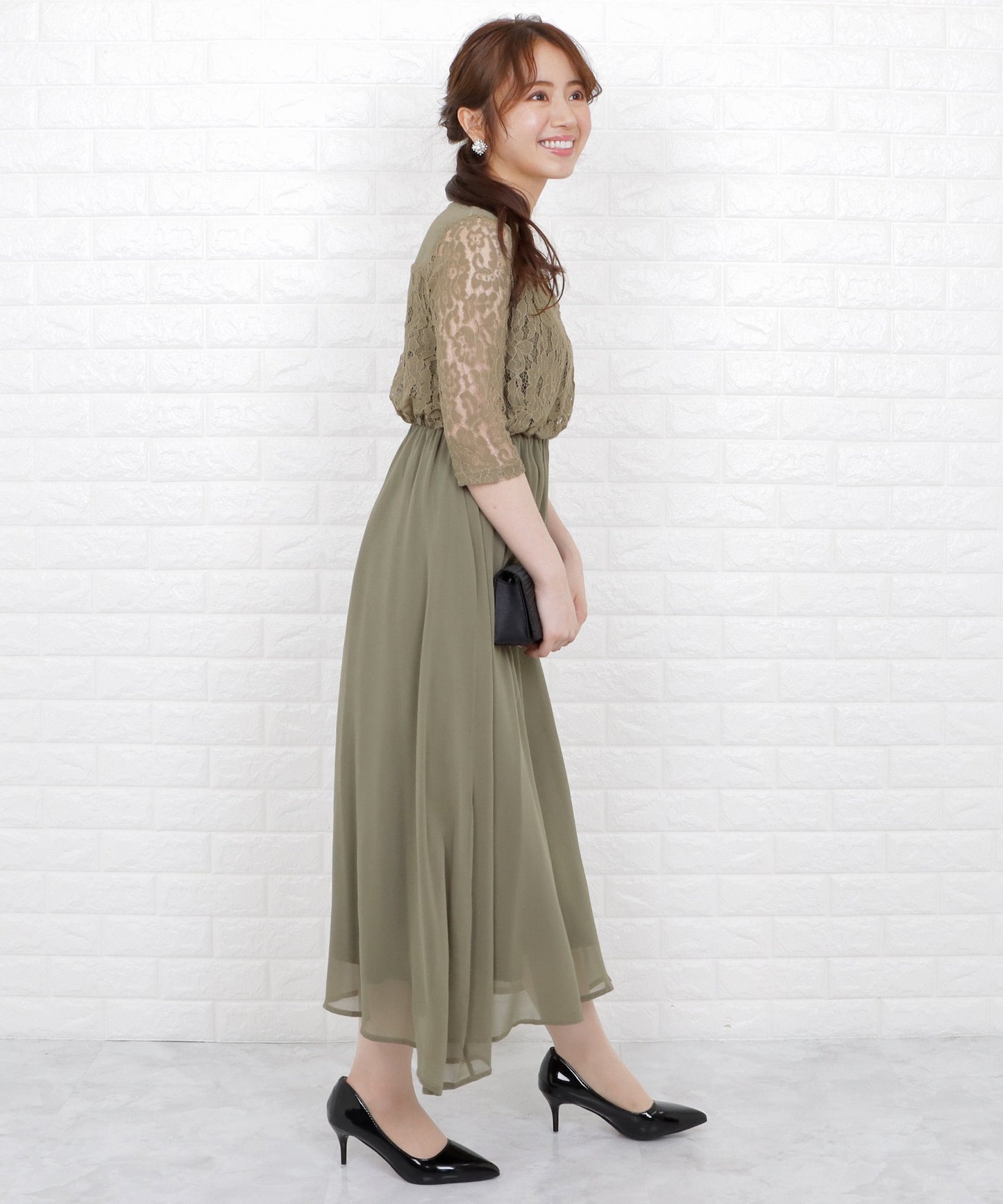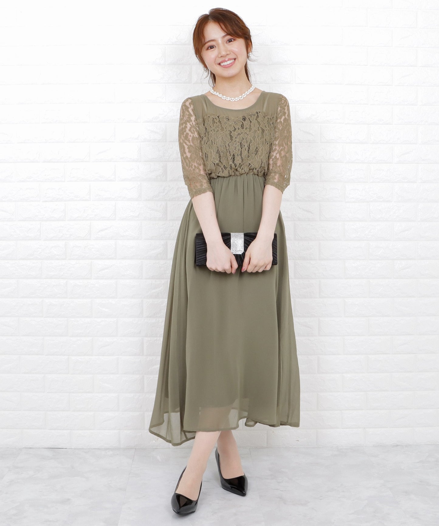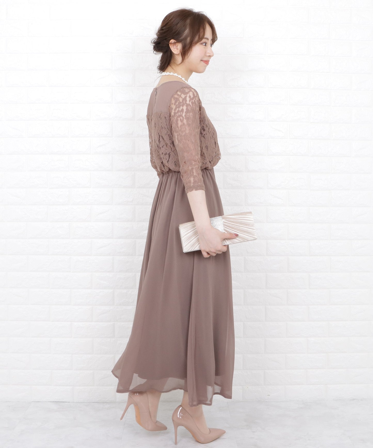 レース切り替え七分袖フォーマルワンピース・ドレス