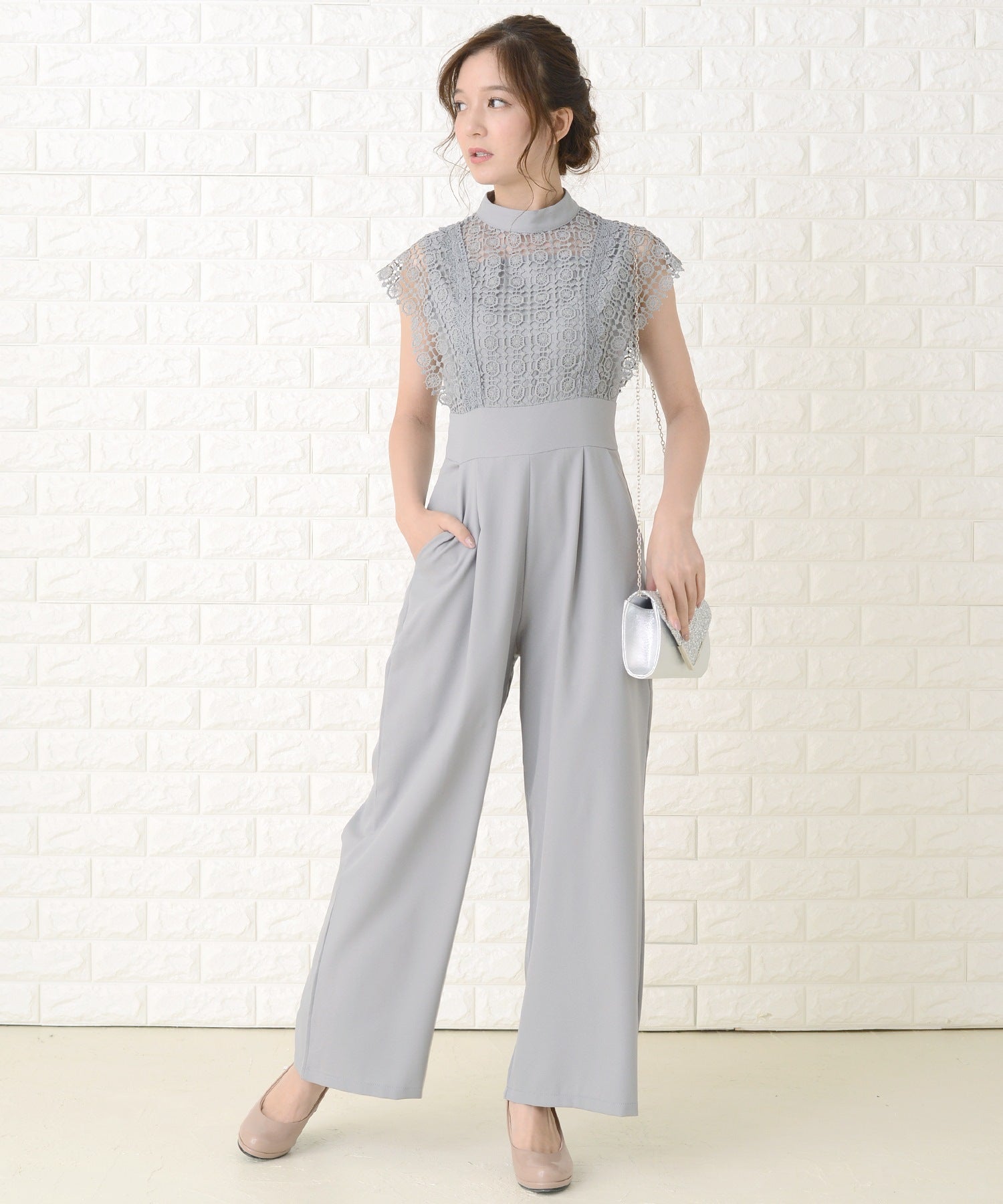 ハイウエストレース切り替えパンツドレス・オールインワン