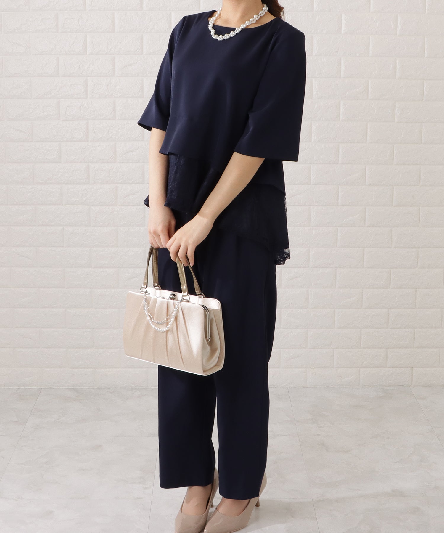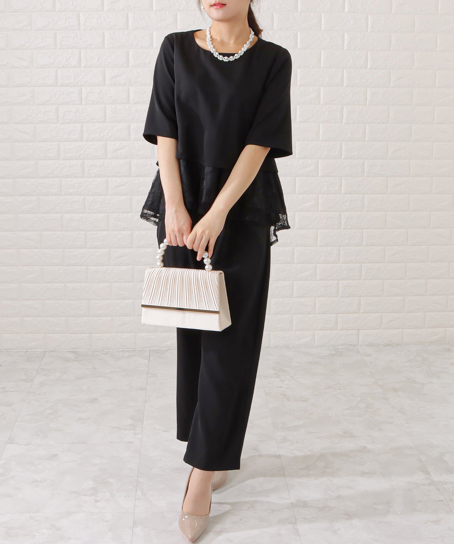 ペプラムレースセレモニーセットアップ パンツドレス2点セット