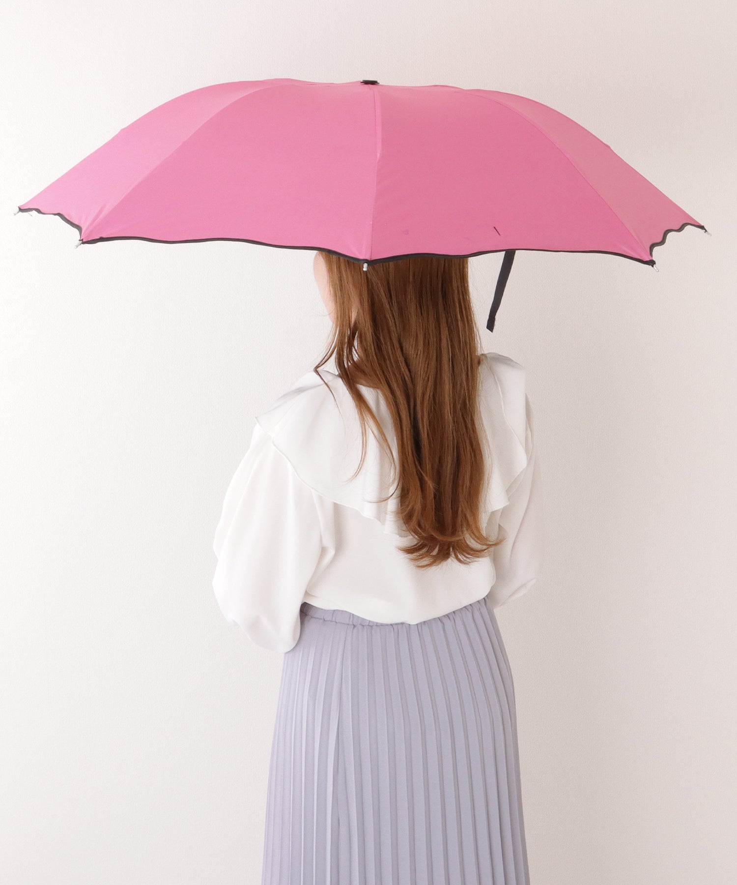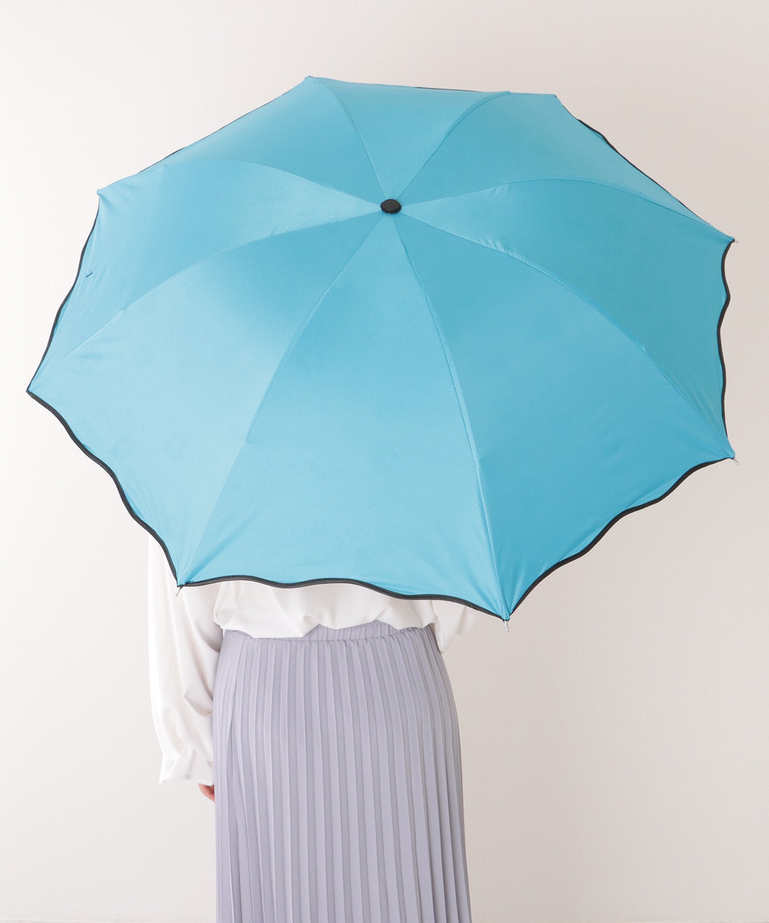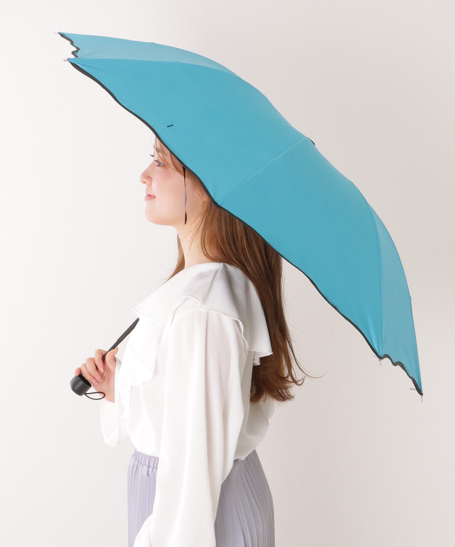 晴雨兼用 ソリッドカラー シンプル フリル 折りたたみ傘