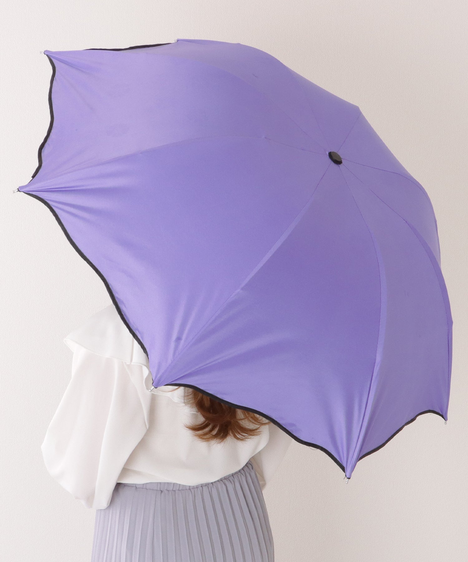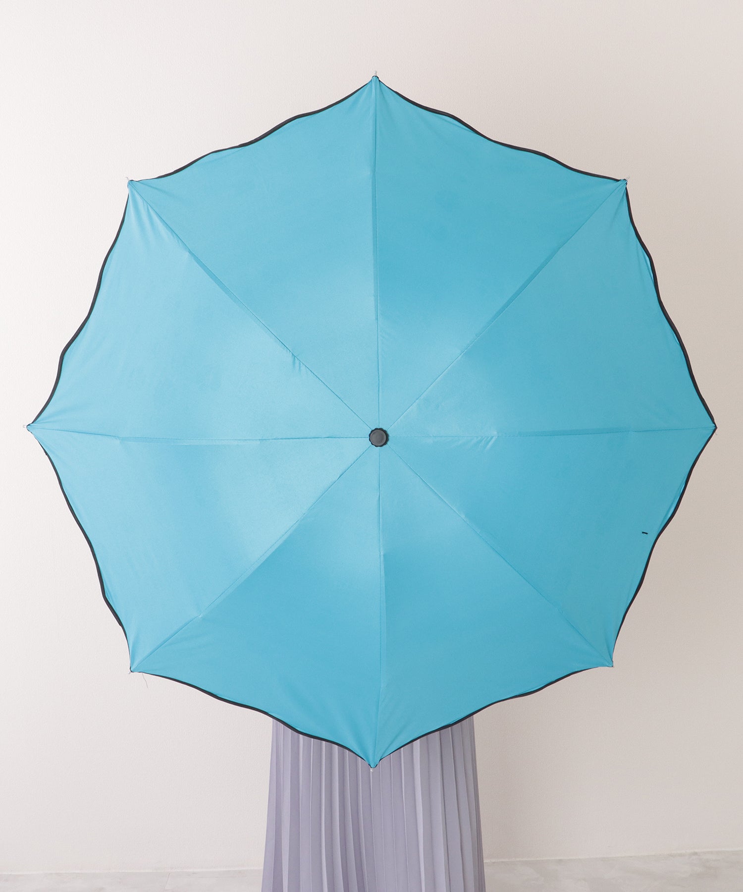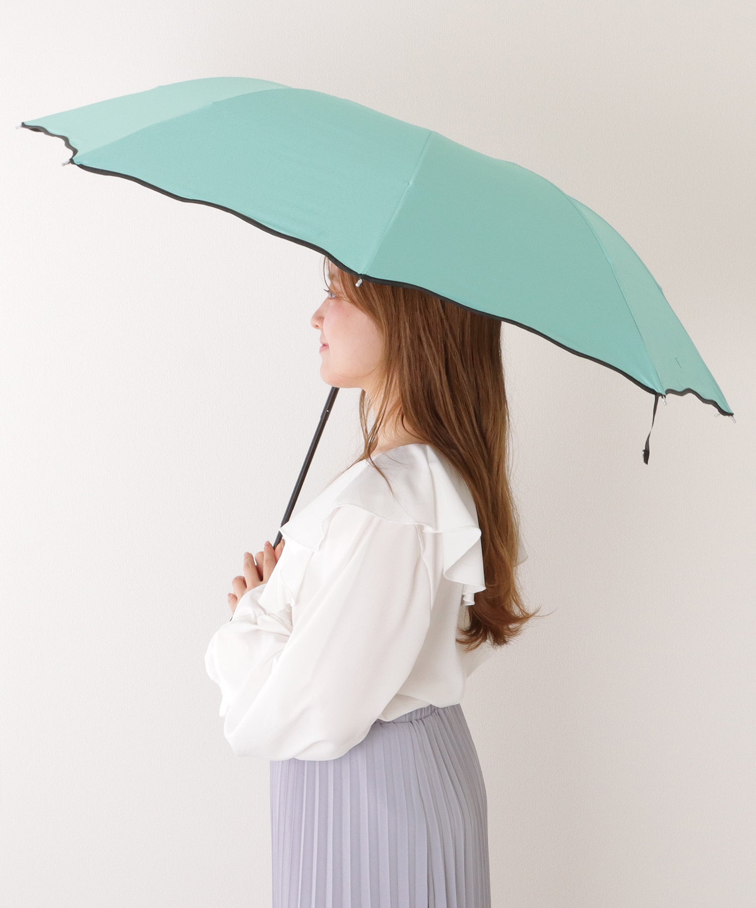 晴雨兼用 ソリッドカラー シンプル フリル 折りたたみ傘