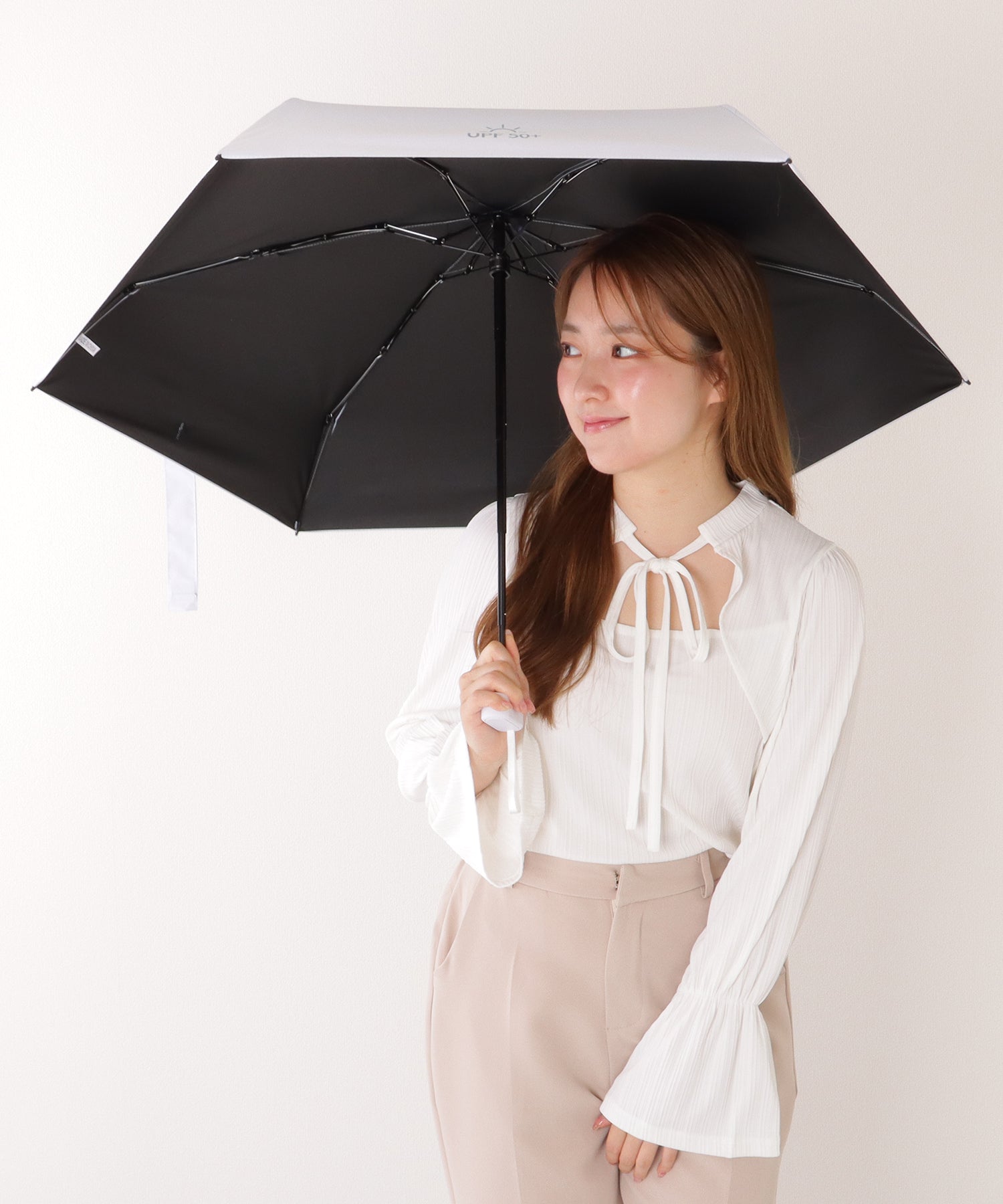 晴雨兼用 配色 リボン フレーム 折りたたみ傘