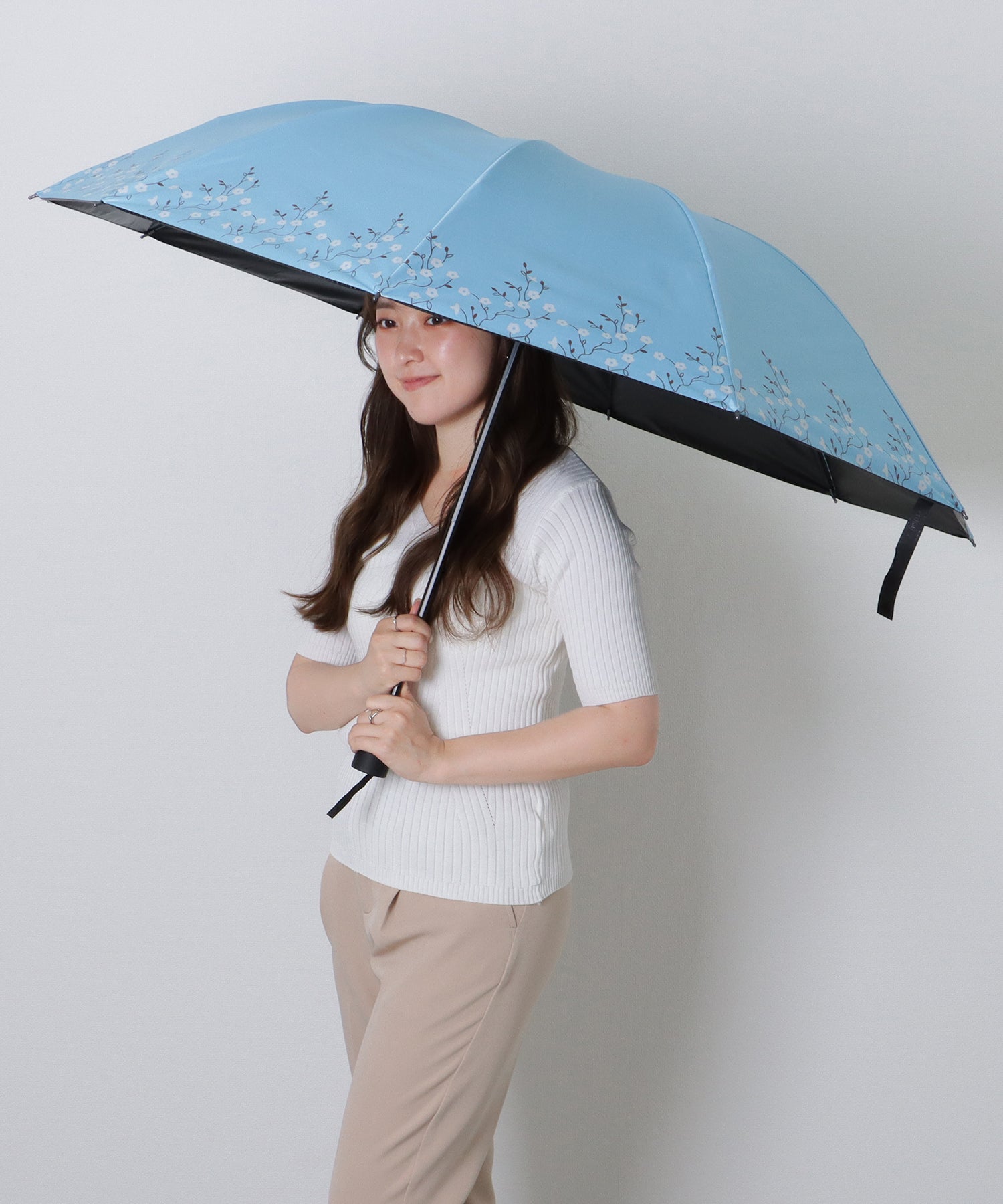 晴雨兼用 配色 フラワー 遮光 折りたたみ傘