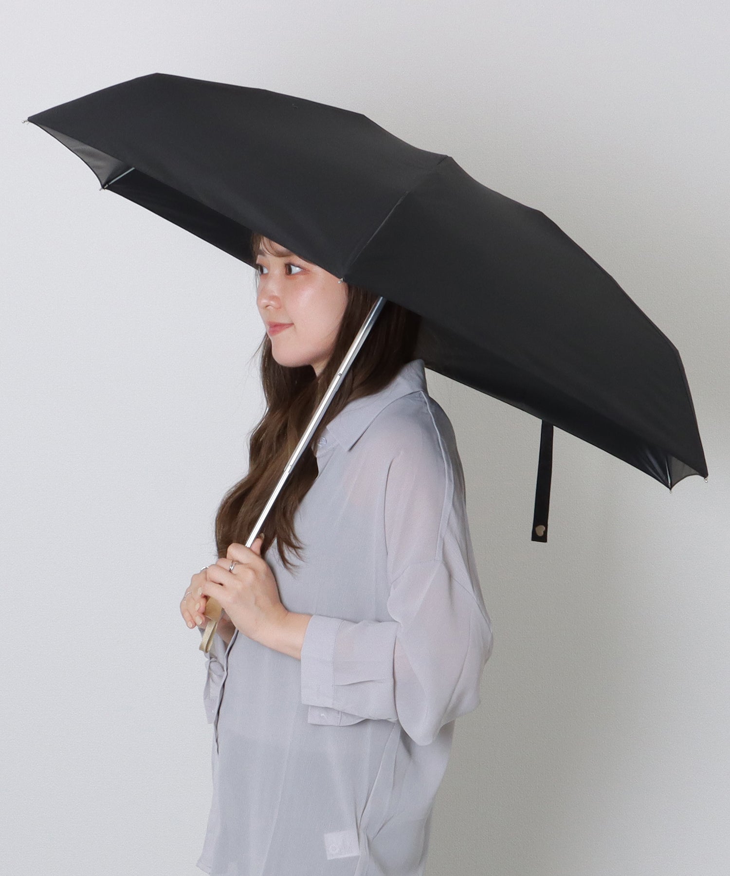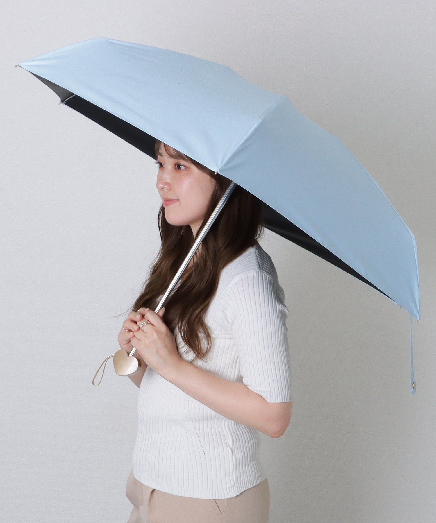 単色×無地のシンプルなデザインでおつくりした、折りたたみ傘。