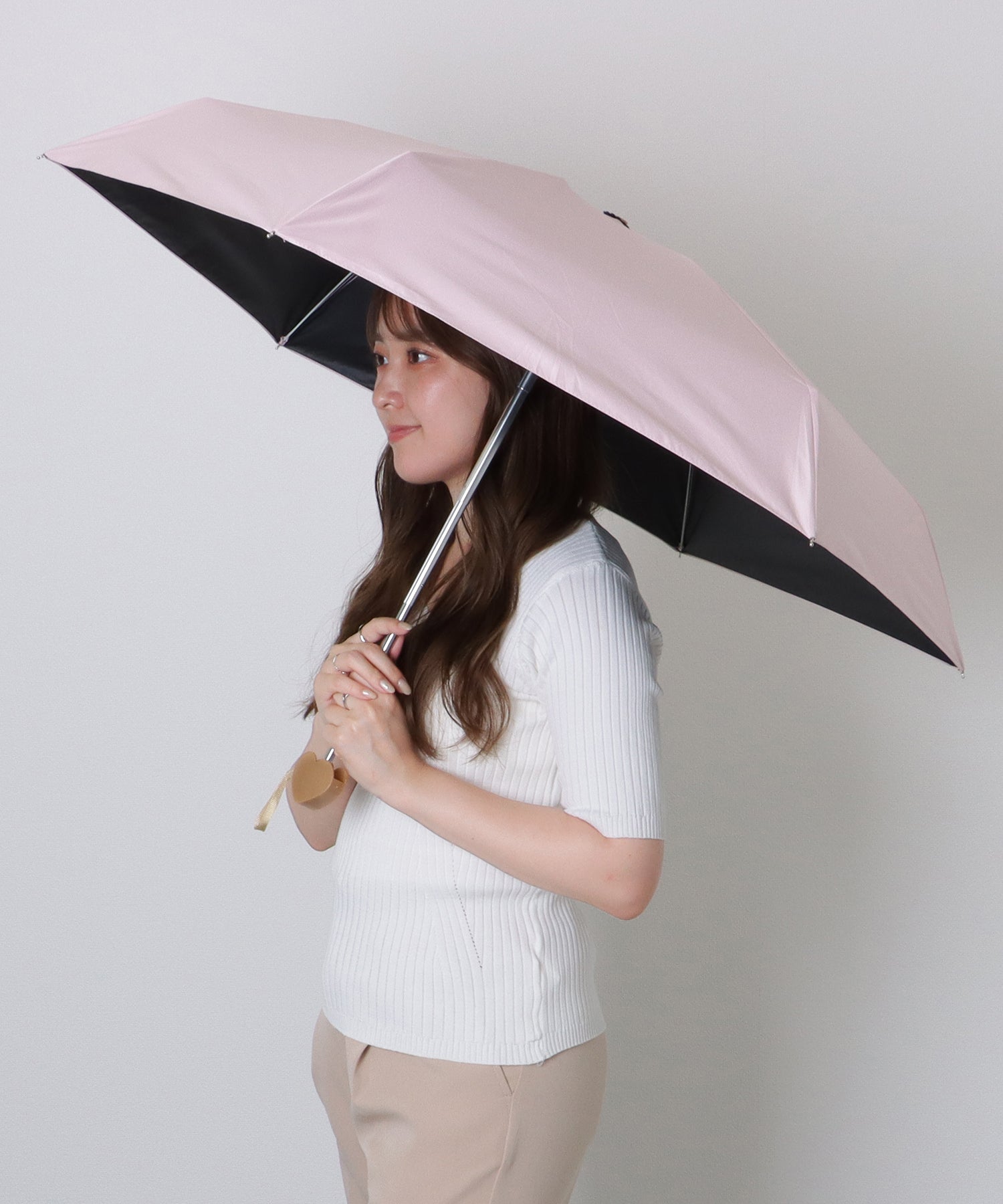 ソリッドカラー ハート ハンドル 晴雨兼用 折りたたみ傘