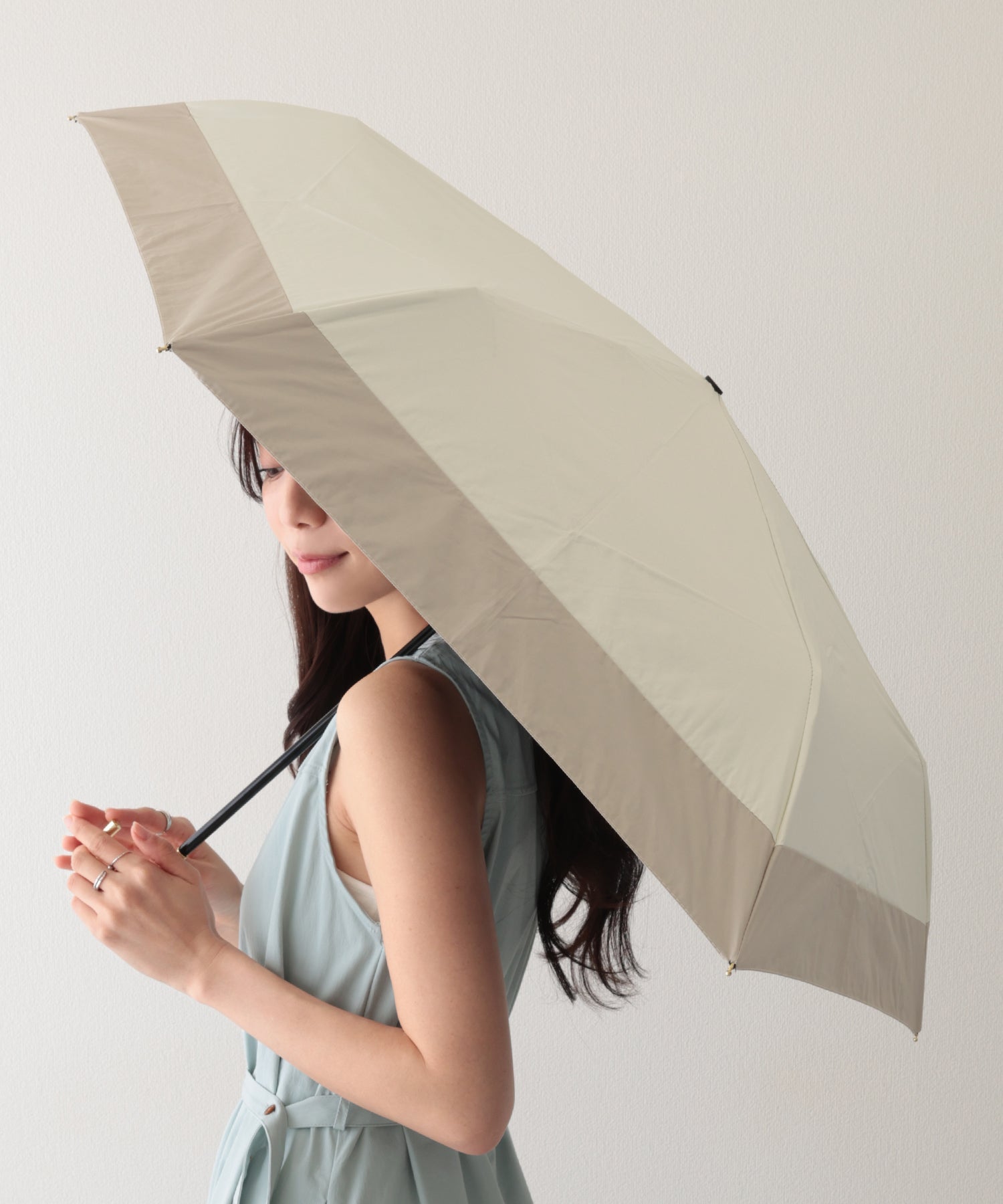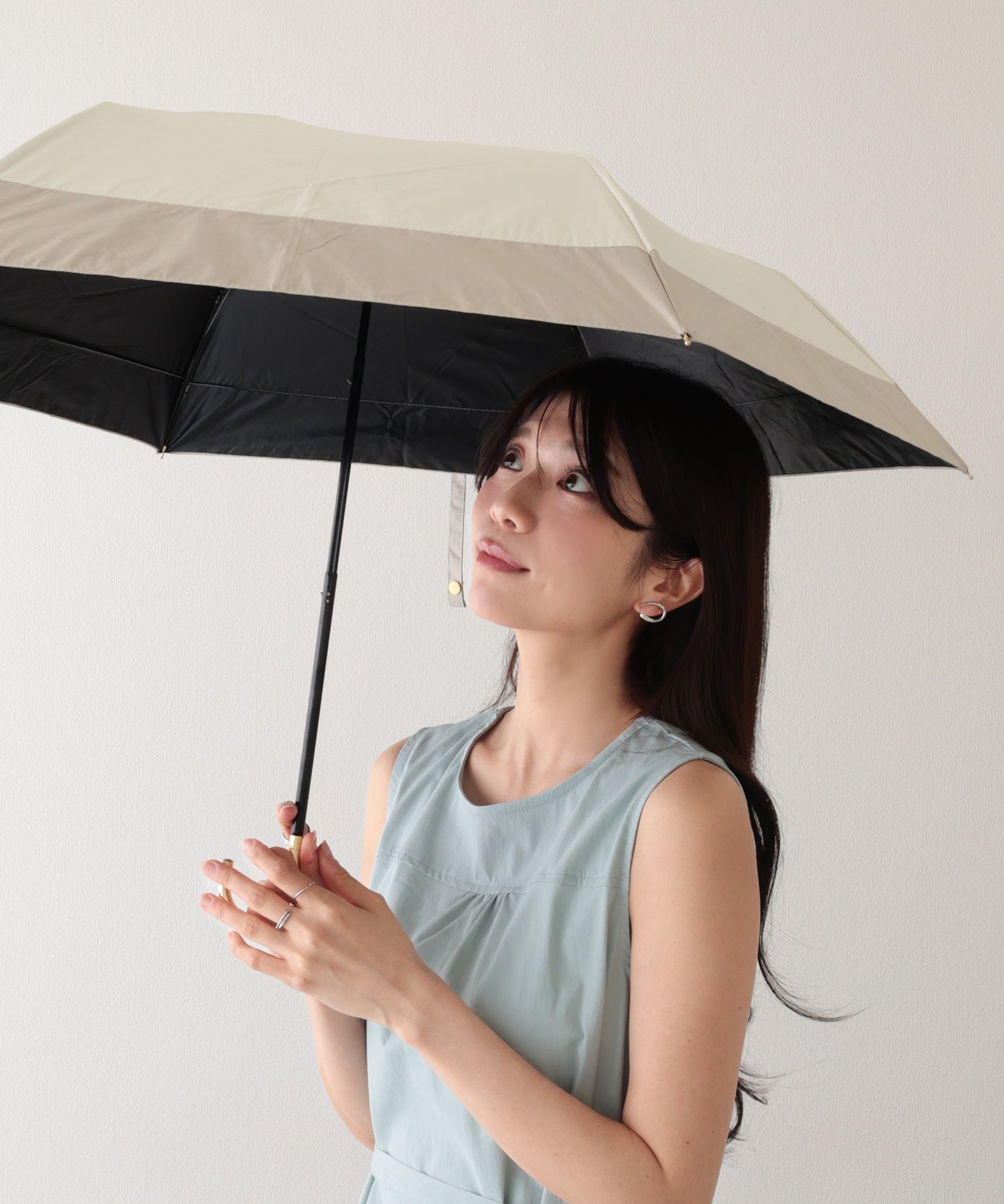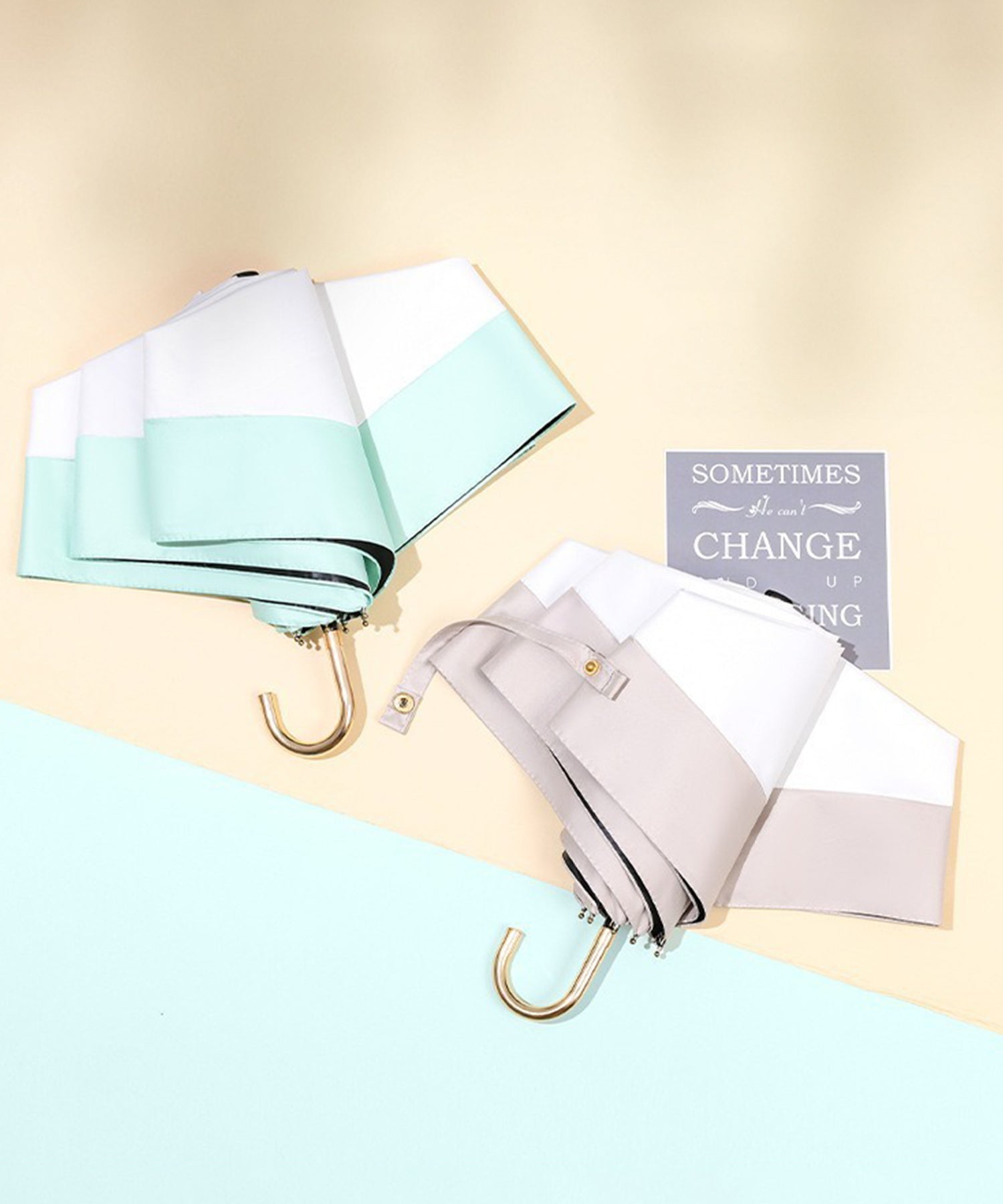 晴雨兼用 配色 ライン ハンドル付き 折りたたみ傘