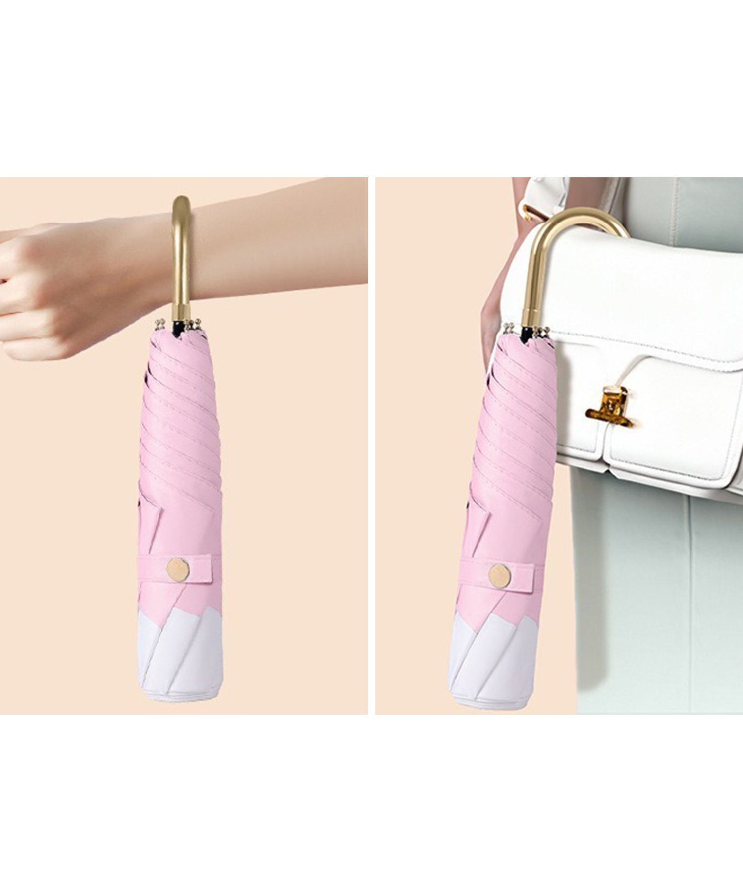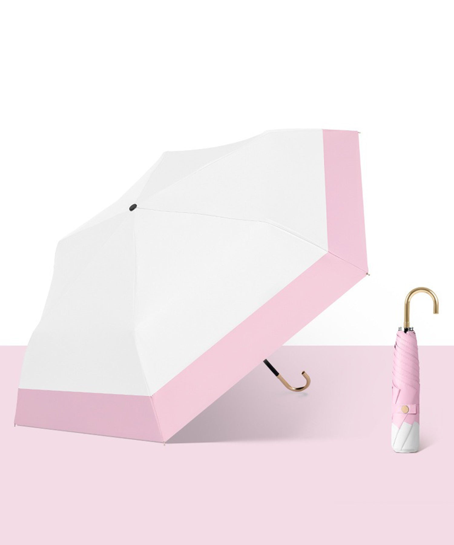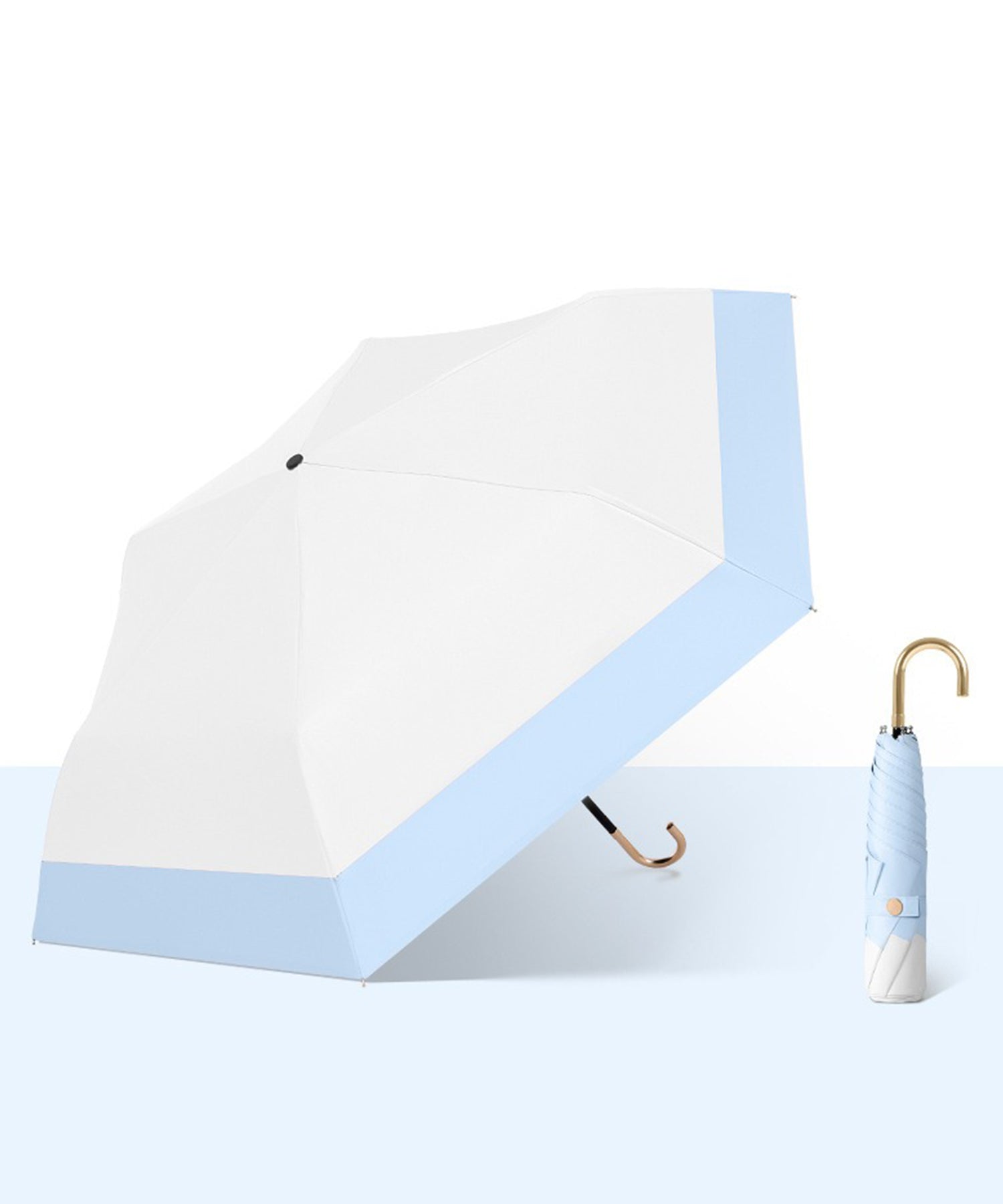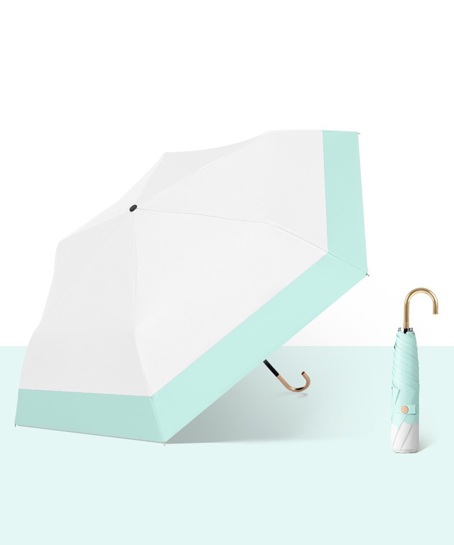 晴雨兼用 配色 ライン ハンドル付き 折りたたみ傘