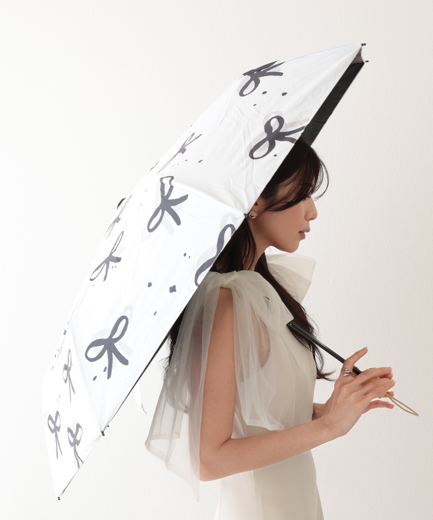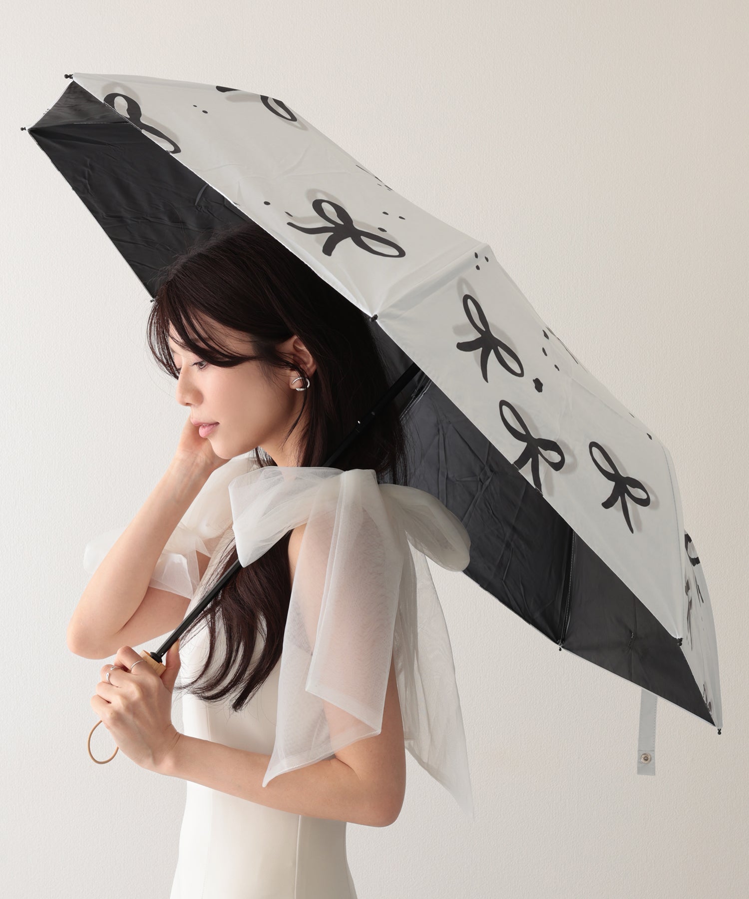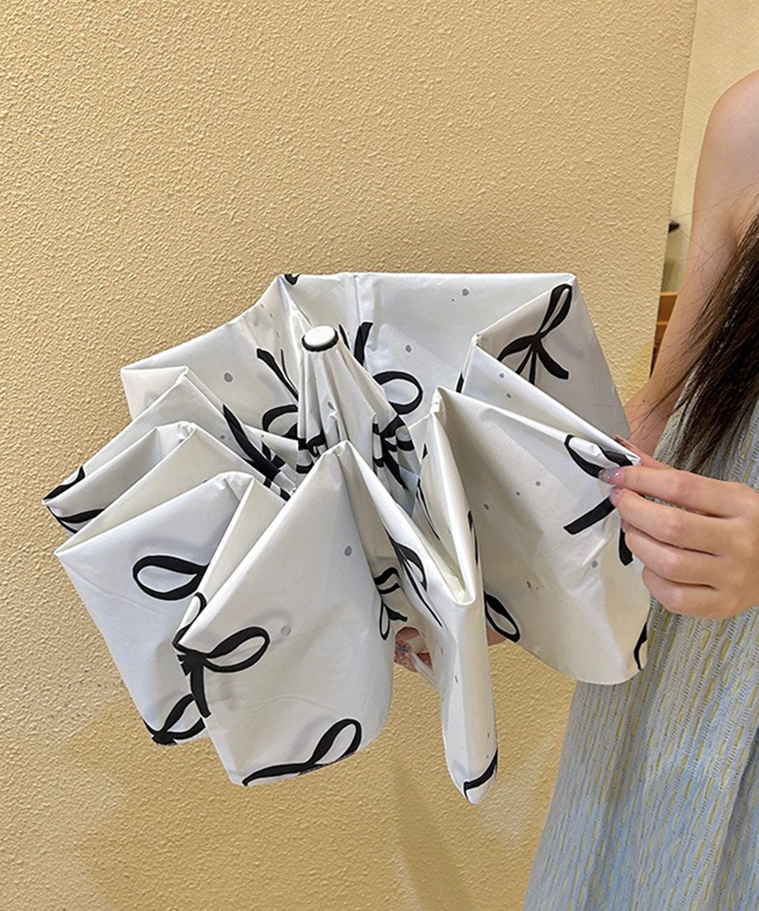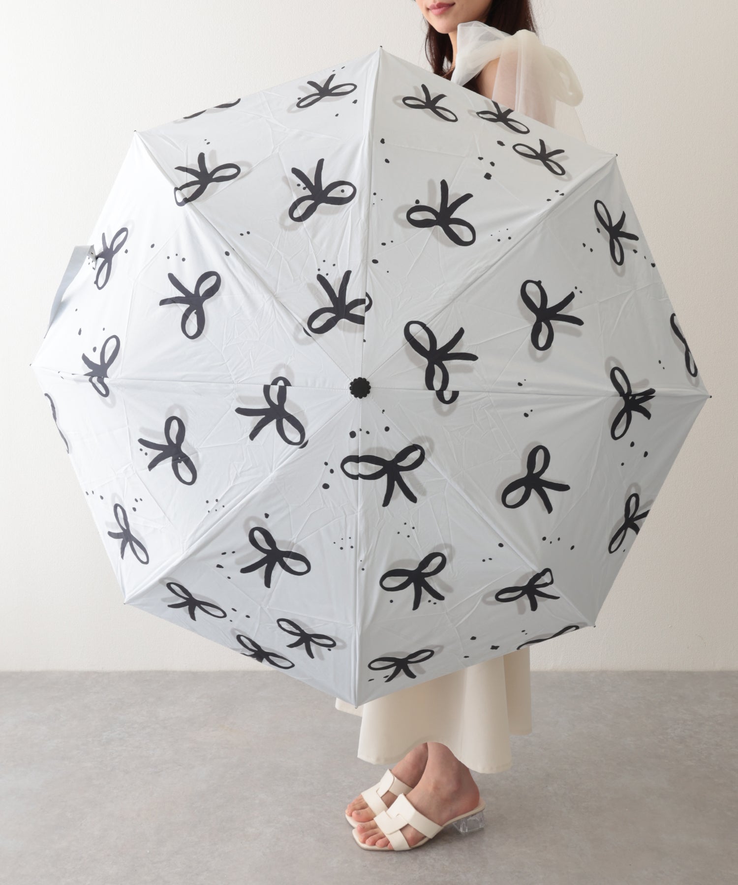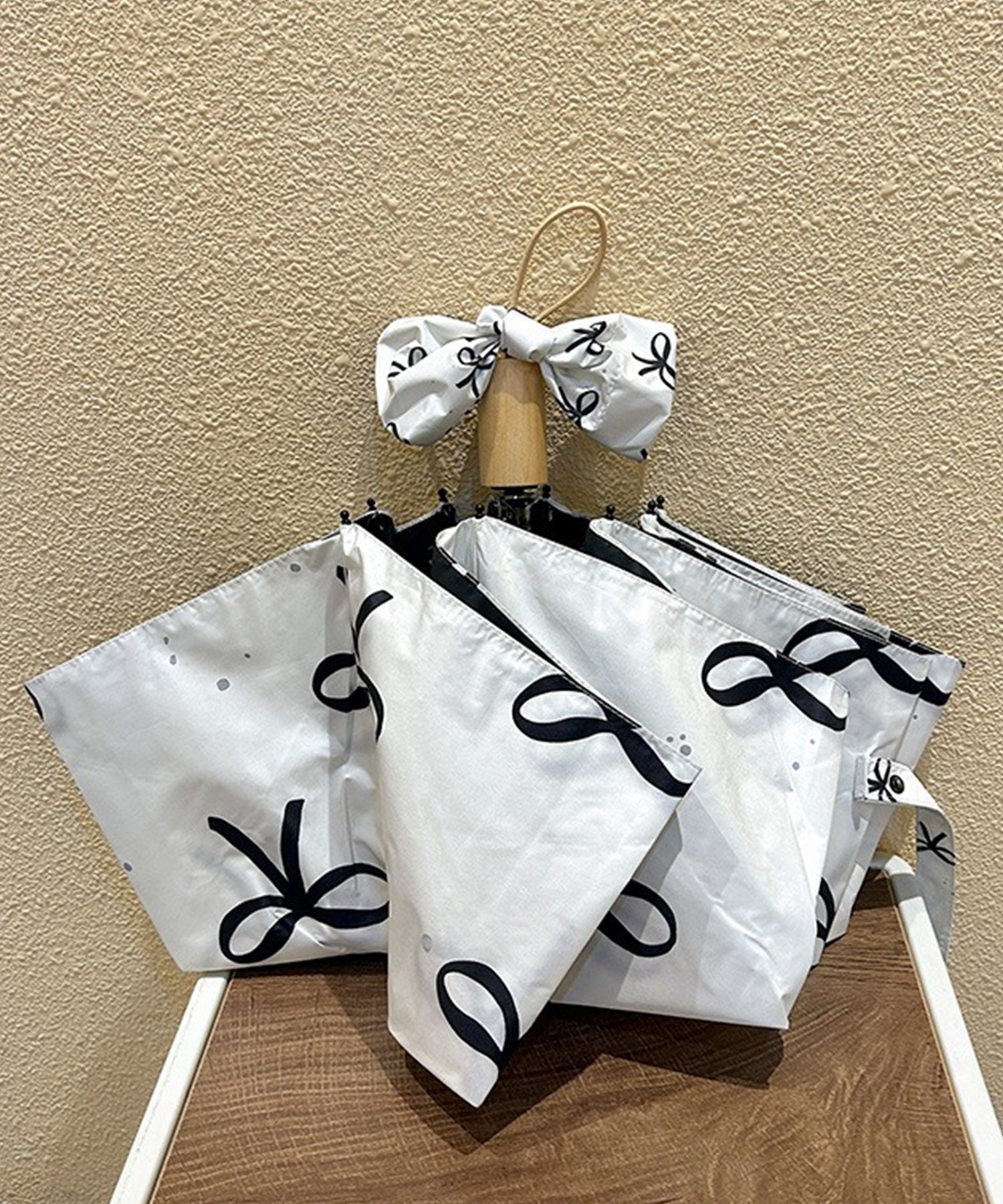 キュートなリボン柄の折りたたみ傘。