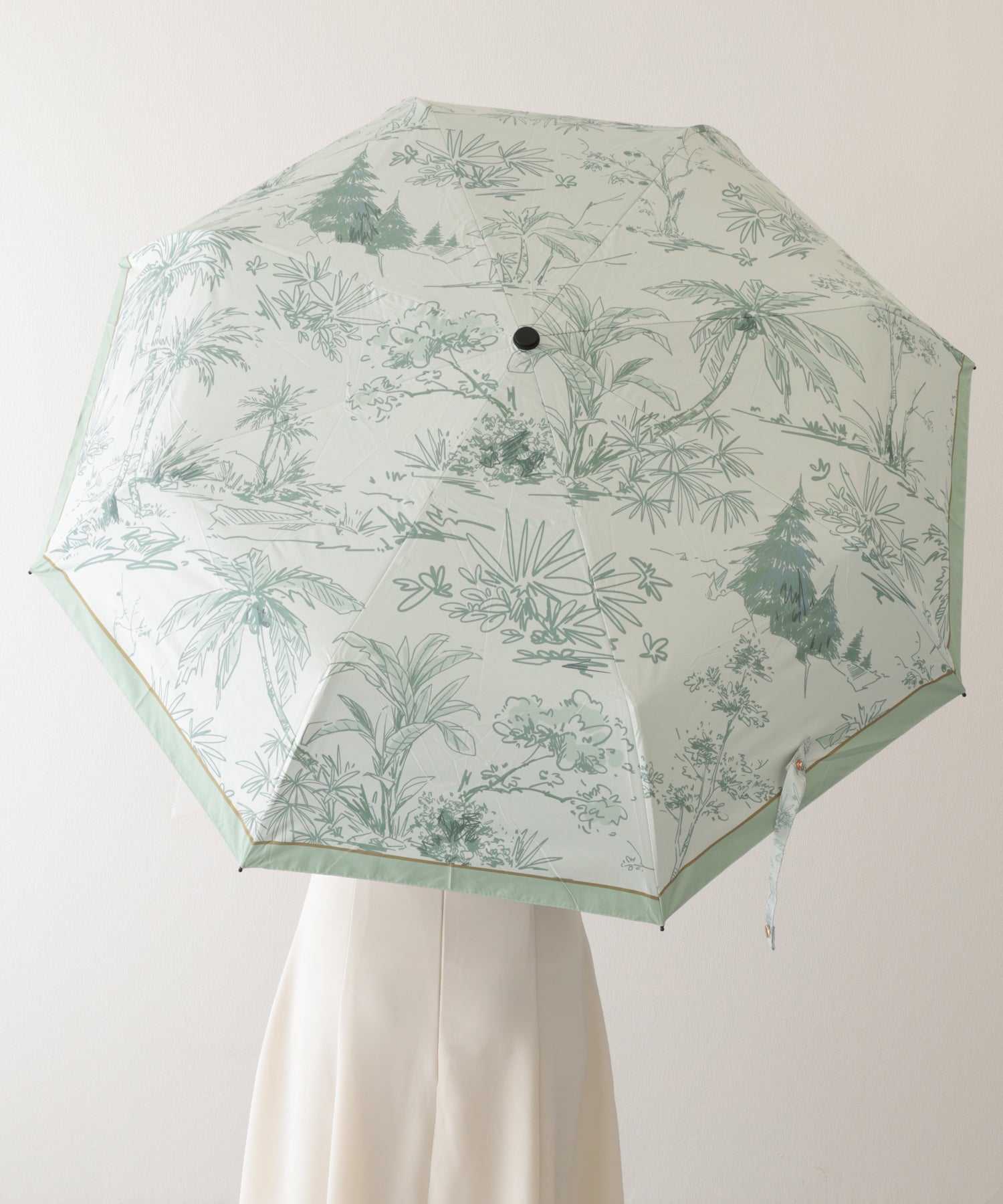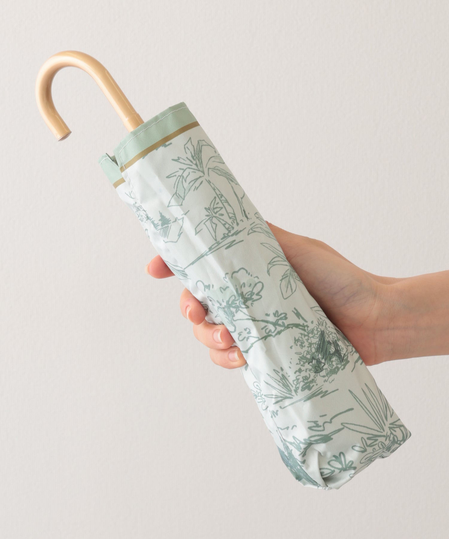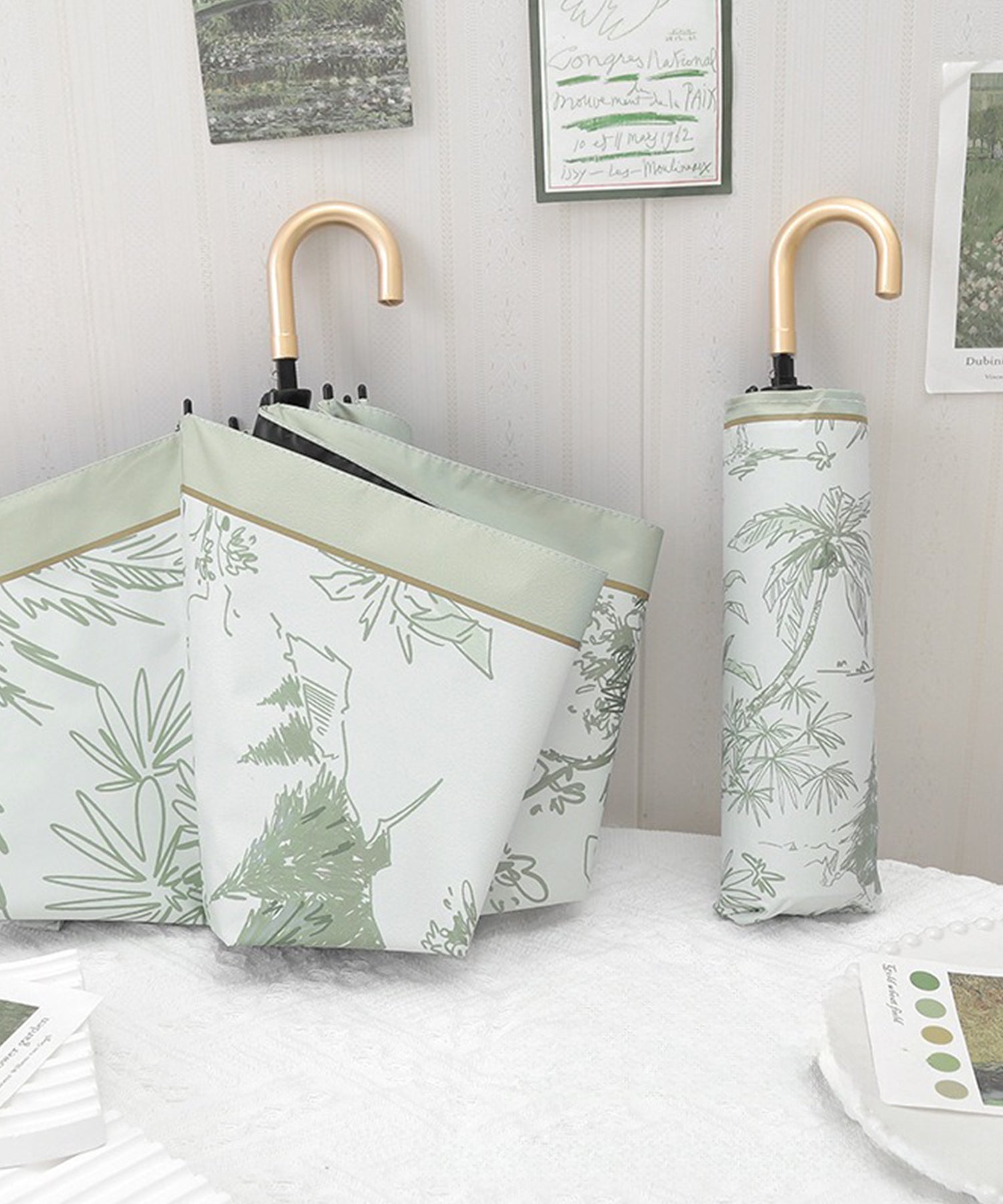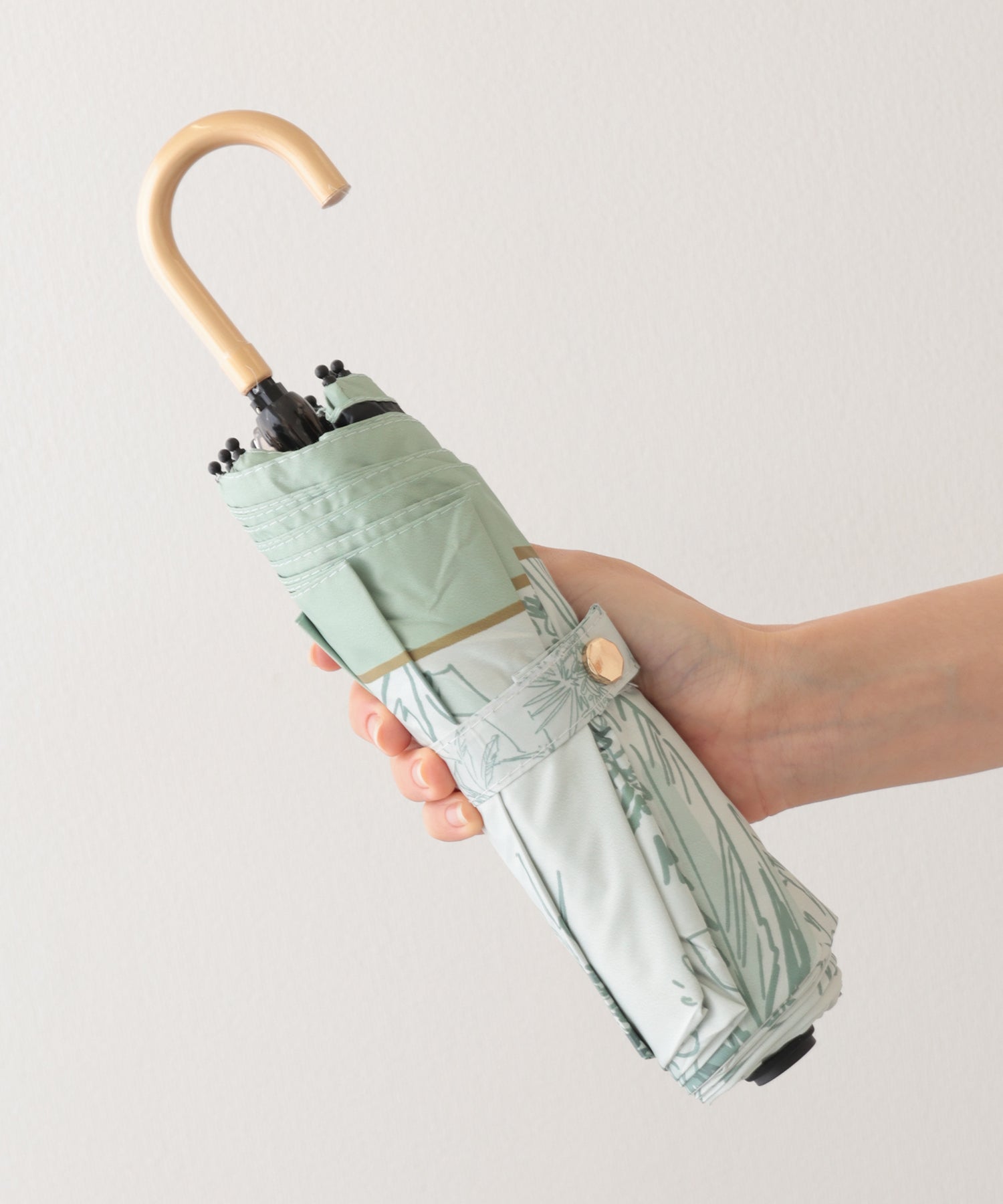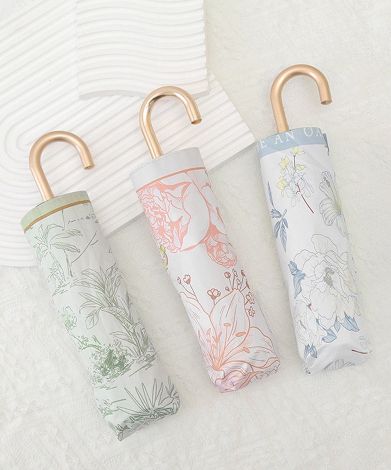 晴雨兼用 ボタニカル柄 メタリック ハンドル 折りたたみ傘